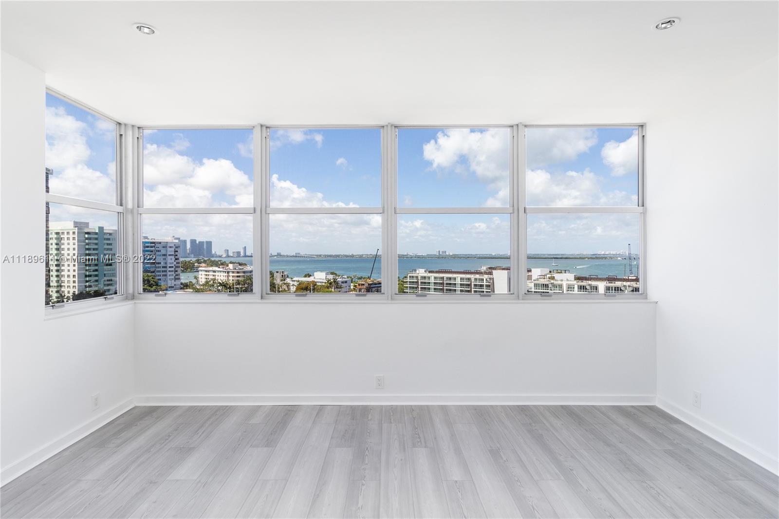 Bright and spacious corner unit with laminate and wood floors. Lots of closet space and built-in cabinets. New impact window and balcony sliding door. Master bathroom with double sink. Kitchen with stainless steel appliances and granite countertops. Open balcony with wood deck. High ceilings and lots of light with an open view of the north bay and Belle Isle Park. See-through and black-out shades. Excellent location in trendy Belle Isle. Easy to show.