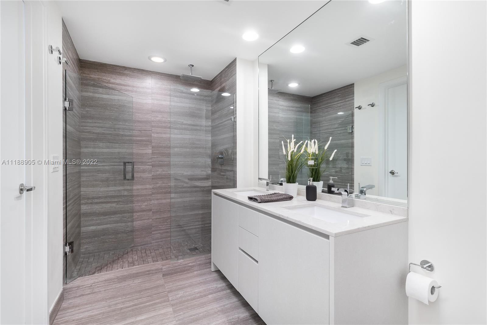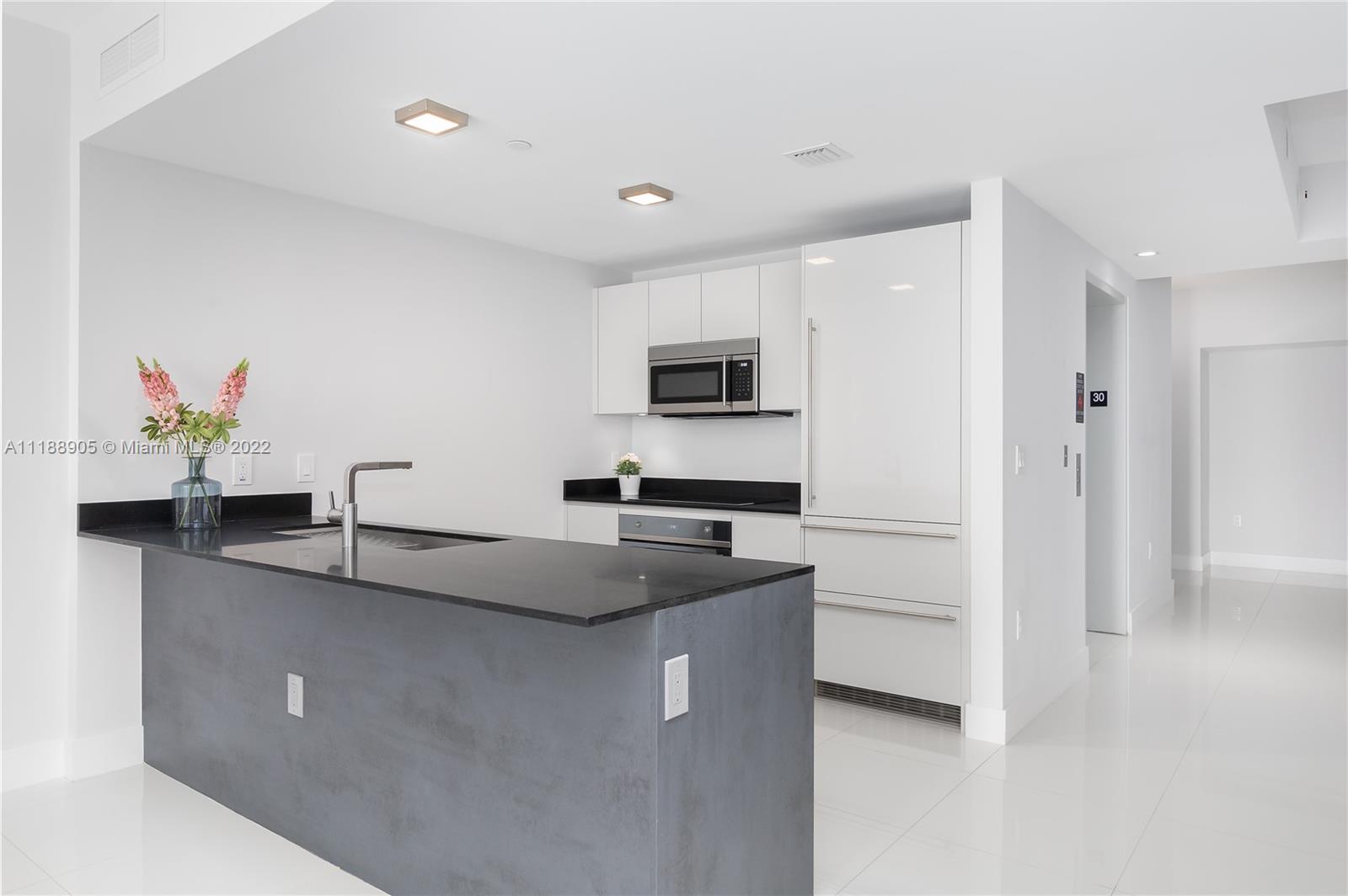 Premium high-floor unit with stunning bay and skyline views from walls of windows. Private balcony runs entire length of this skyhome with access from all rooms. Private elevator opens directly into this 2 Bedroom + enclosed den. This den includes a full bathroom so it is ideal for guests, nanny or extra bedroom. Work from Home or walk to the finance and tech offices outside your doorman lobby. Fast close welcome - tenant exits May 15, 2022. 1010 Brickell delivers resort-quality amenities including rooftop pool, children's room, running track, spa and haman, indoor basketball court, outdoor running track, club house, game room, on-site management and self-park garage.