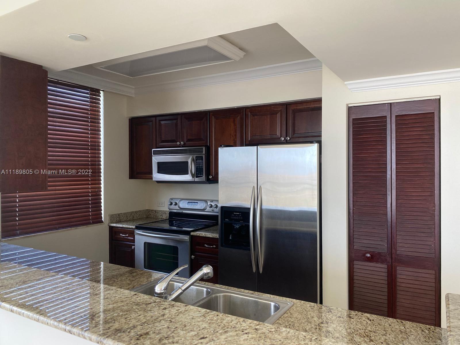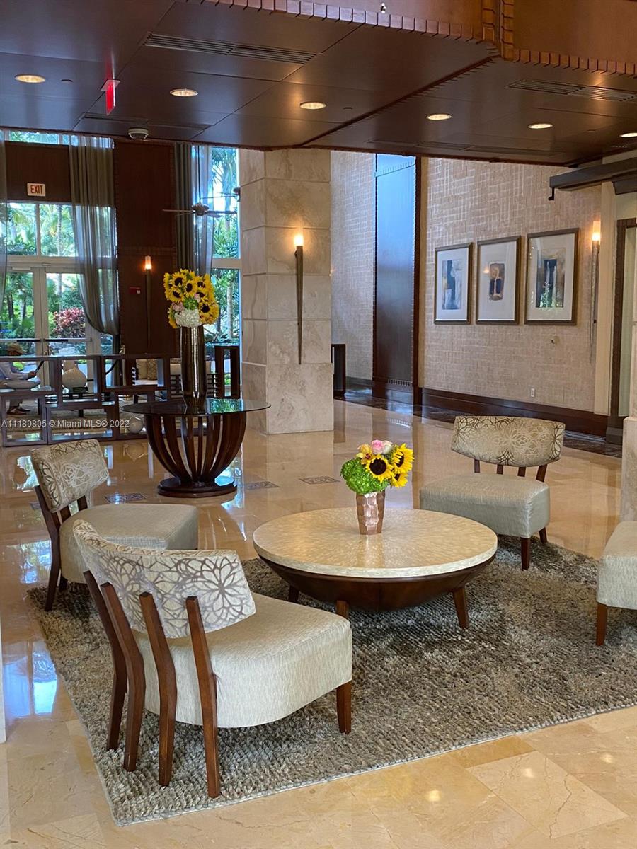Great location, corner unit with panoramic golf course and water views. Relax watching the sunshine and sunset, only available in this line 14 of the building. Open kitchen with custom cherry cabinets, granite countertops, marble floor and wood in bedrooms. Washer & Dryer in the unit. On the Turnberry Golf Course, across the street from Aventura Mall. 24/7 front desk, security and valet parking. Top of line amenities: fitness center, conference room, business center, game room, pool, kids playground and BBQ. Courtesy bus. Short ride to Sunny Isles Beach, parks and restaurants.
