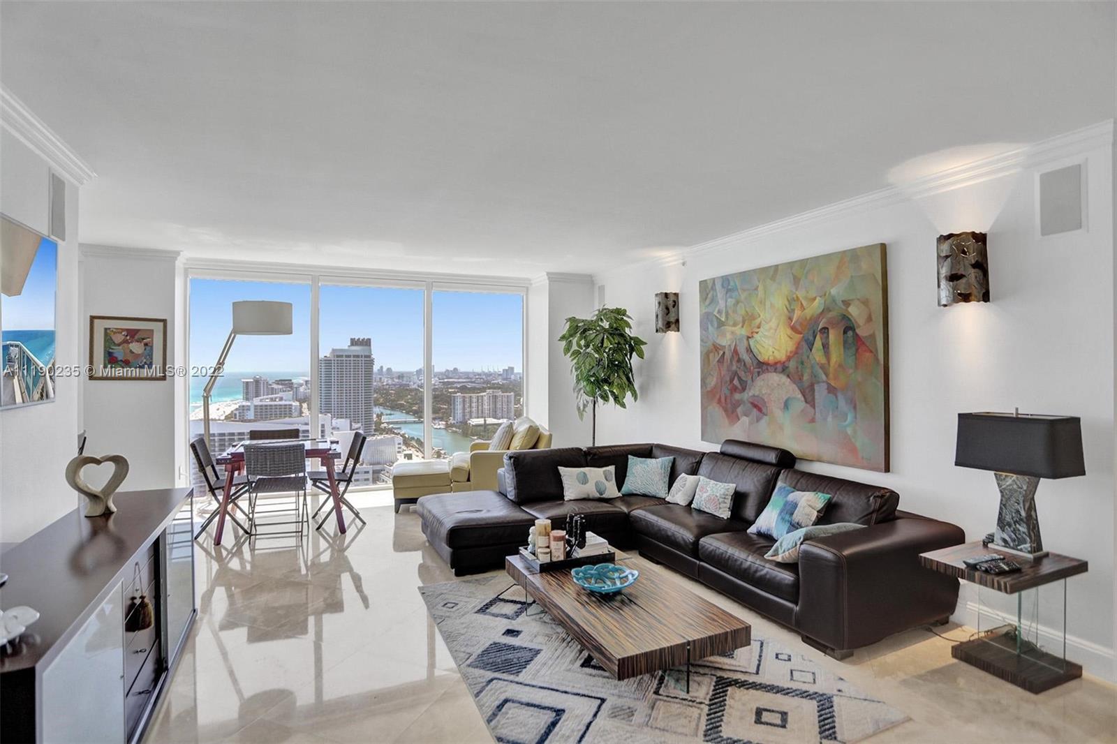 Enjoy direct ocean, city and bay views from this gorgeous 3/3 SW corner unit at the Blue Diamond. This residence is fully furnished and offers: floor to ceiling glass windows, open eat-in kitchen, beautiful wraparound balcony, dining room, living room, walk-in closets, spacious bathrooms with marble floors, split floor plan, washer/dryer and more. Two assigned parking space are included. Building offers 1st class amenities: 24hr security, valet, concierge, tennis court, pool/hot tubs, café/market w/ room service, 16,000 sf clubhouse/spa, gym, personal trainers, party room, children’s play room, billiards, business center, beach attendant and more.