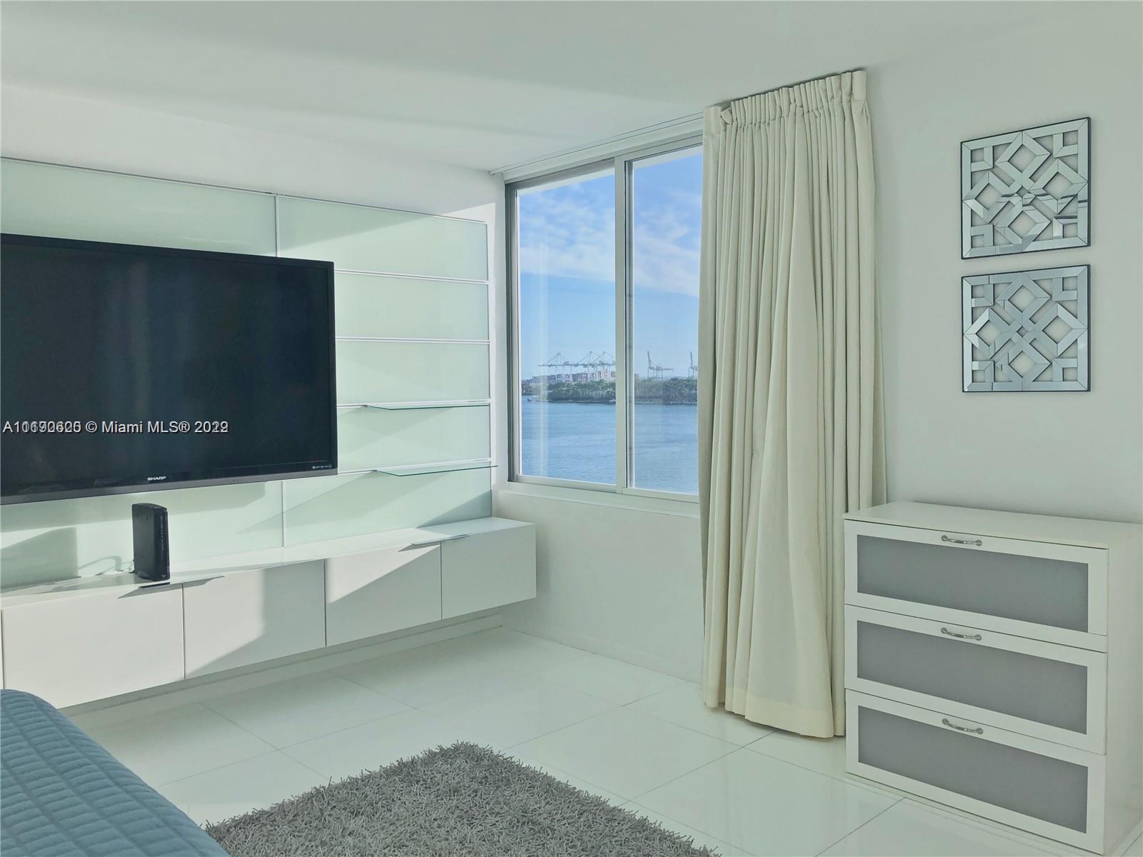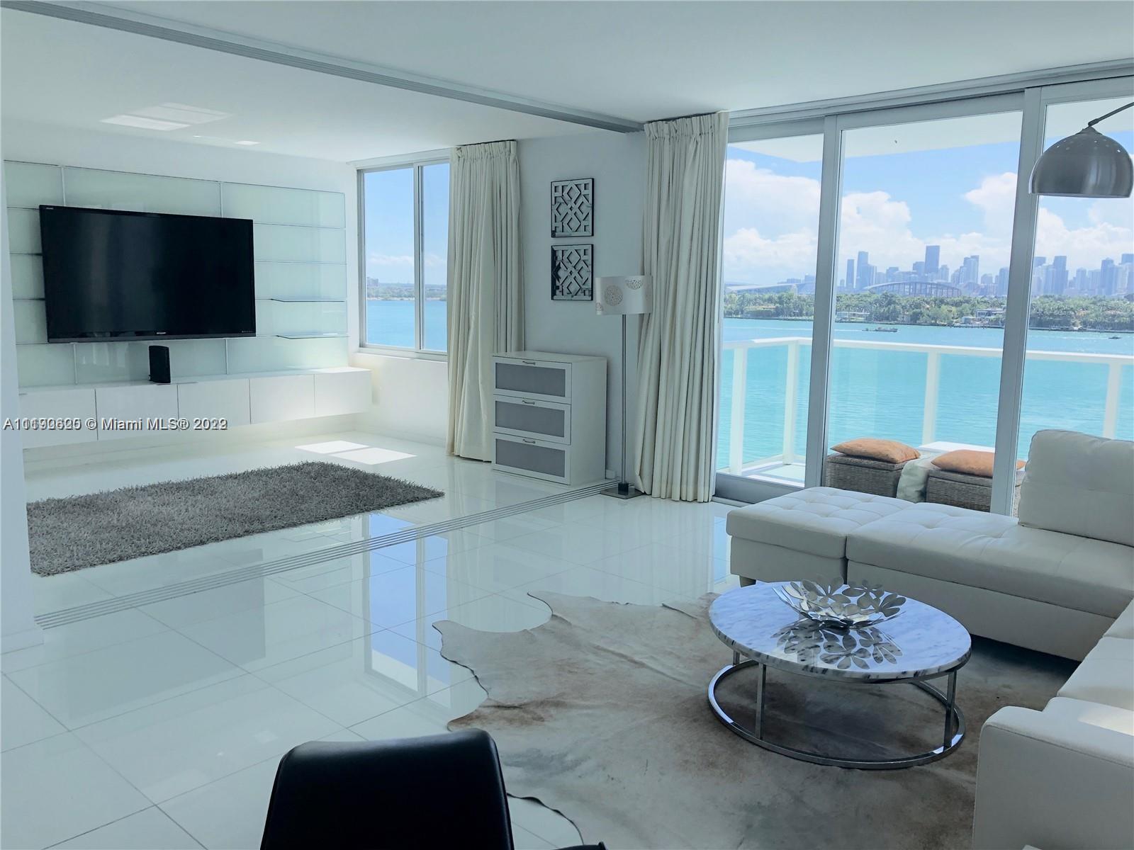 DESIGNER CORNER UNIT W/ DIRECT WATER VIEW - Fully furnished and renovated 2BR/2BTH w/ glass balcony & large High Impact sliding windows system - panoramic Bay & Downtown Miami skyline views from ALL rooms. . Italian porcelain white glass floor throughout, custom lighting & closets. Spacious balcony right over the water. Enjoy al fresco cocktails & dining while enjoying magnificent sunset views. Amenities include a Bayfront heated pool with poolside cabanas, a Jacuzzi, 24-hour valet parking service, a 5,000-square-foot fitness center, sauna, 24-hour security, full-service concierge, 250Gb Fiber Optic internet, HD cable TV. On-site convenience store, and beauty salon and steps away from Wholefoods, Publix, Trader Joe's, coffee shops, Lincoln Road Mall, and Iconic beach "Limmus Park".