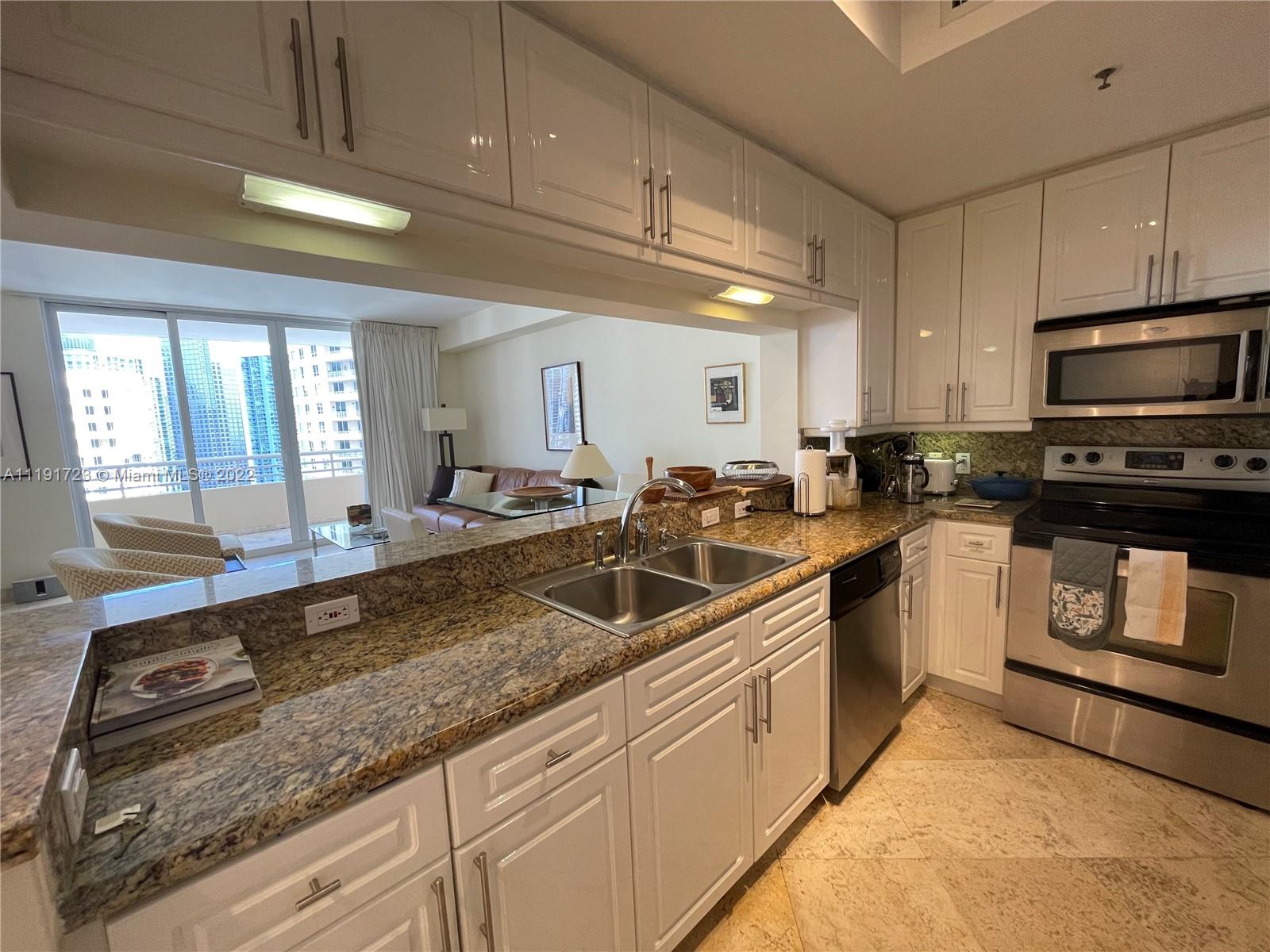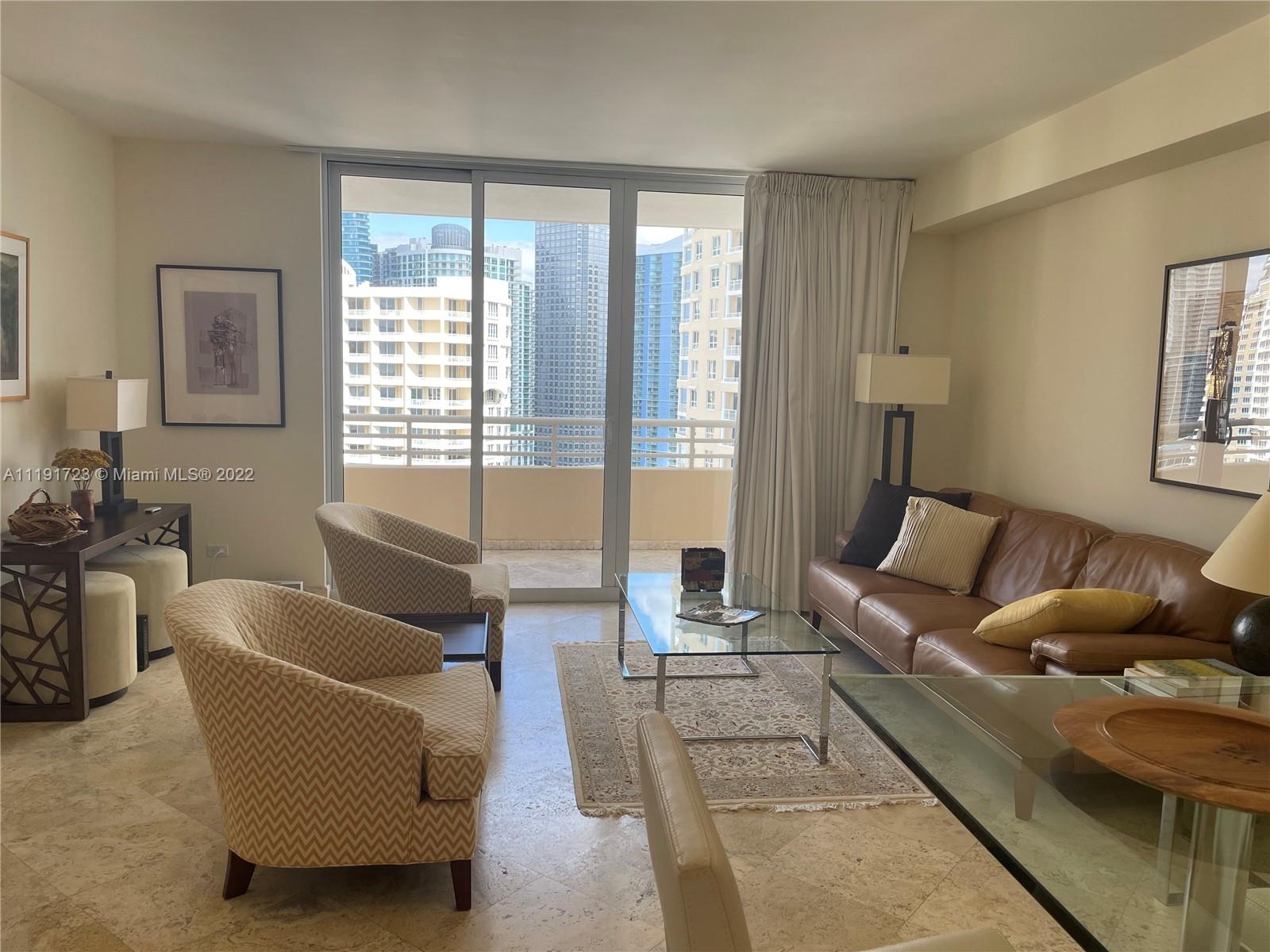 Beautiful and spacious 1 bedroom and 1.5 bath, 907 sq ft with amazing views of the bay and city. Marble floors in the living area, granite counter tops, stainless steel appliances, and much more. Unit at the prestigious Two Tequesta at Brickell Key, building have top amenities, with 2 floor gym, pool and barbecue area. Must See