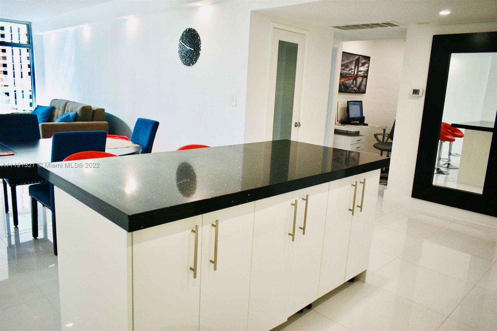 Stunning/Renovated one-bedroom PLUS OFFICE facing intercostal. All new porcelain floors through-out. Updated Kitchen with Quartz counters/backsplash. New Stainless Steel Appliances. Remodeled Bathroom. Two walk-in closets. Spacious balcony. Beautiful views of the waterway. Apt Central A/C & Internet/Cable, Water, Trash, Master Insurance included in H.O.A. - Building with 24hr. Concierge/Security services. Valet Parking. Updated Lobby. Building equipped with outdoor pool & modern fitness center. Clubhouse with activities. Common Tennis Court. One Garage Parking. Cafeteria/Mini-market in the building. Walking distance to the beach. Close to malls , restaurants , hospital , banks, supermarkets. Apartment doesn’t have any assessment and has plenty of storage spaces .