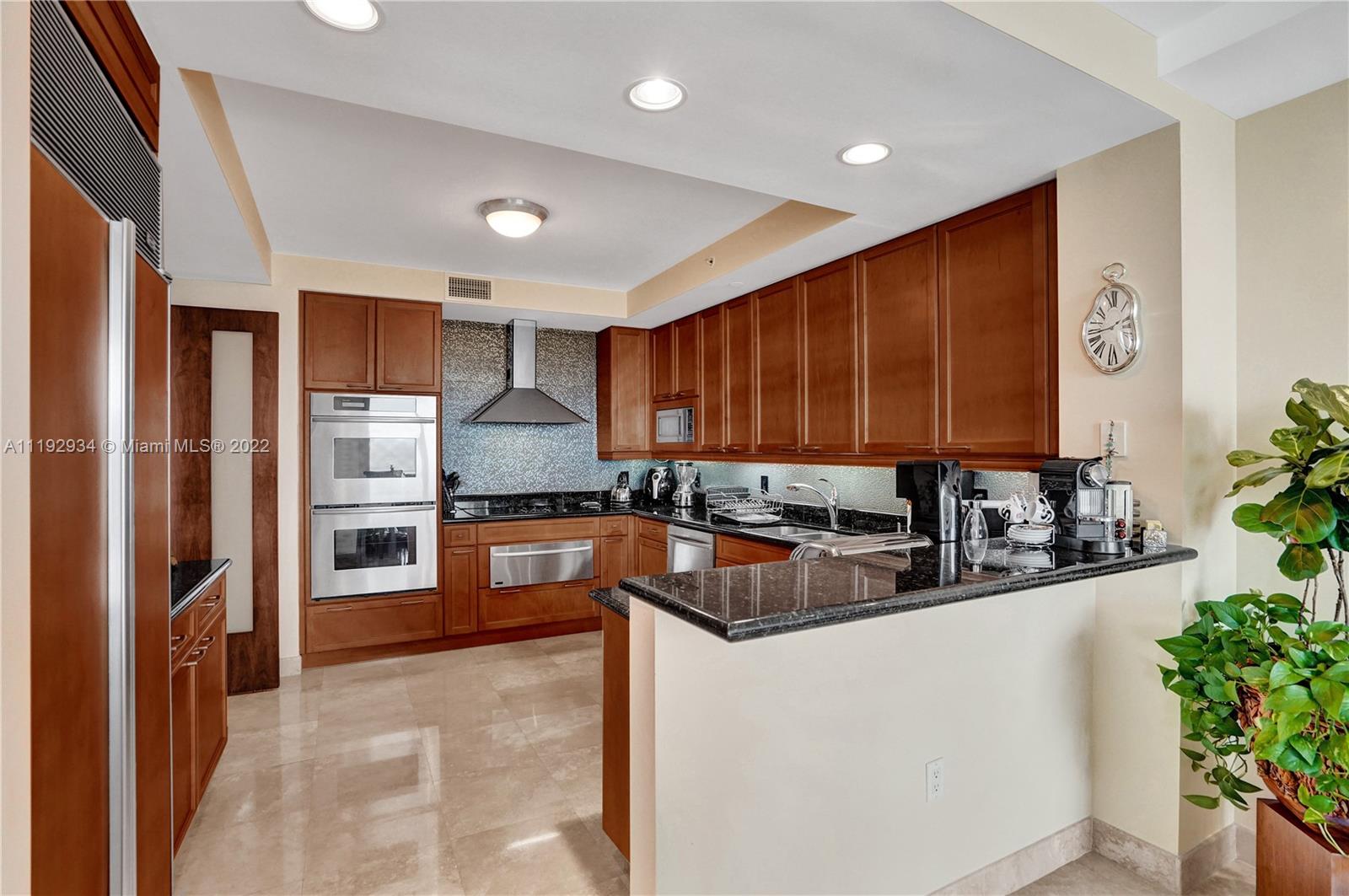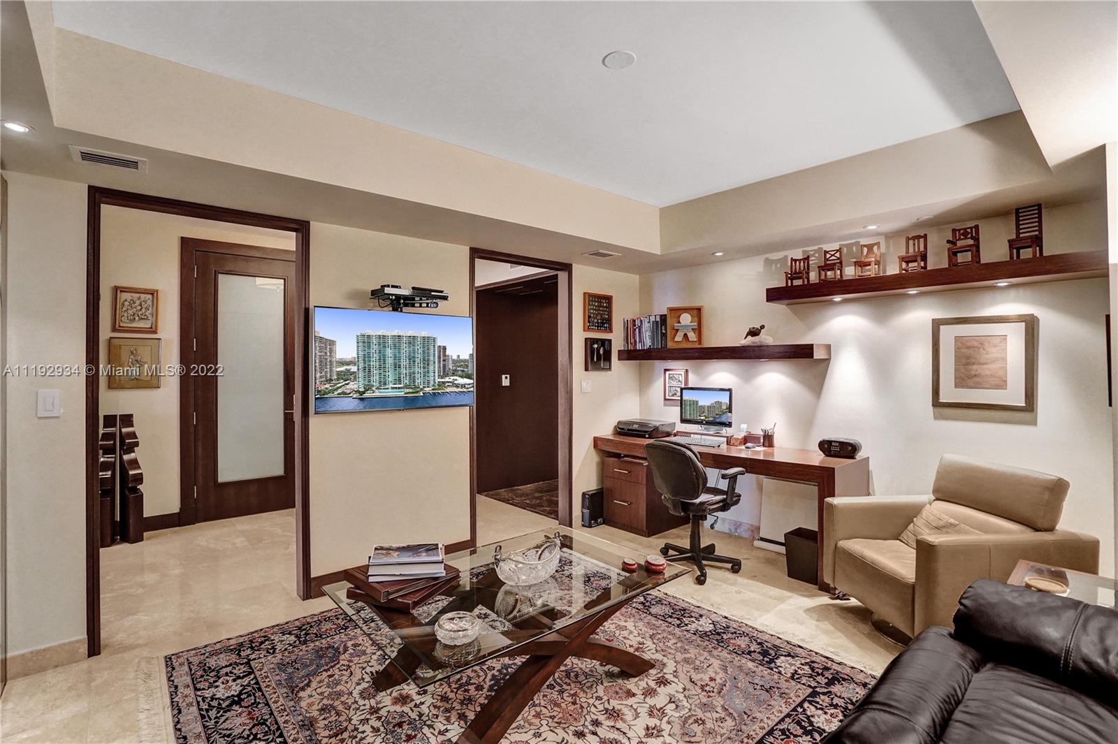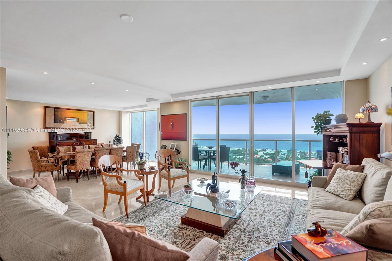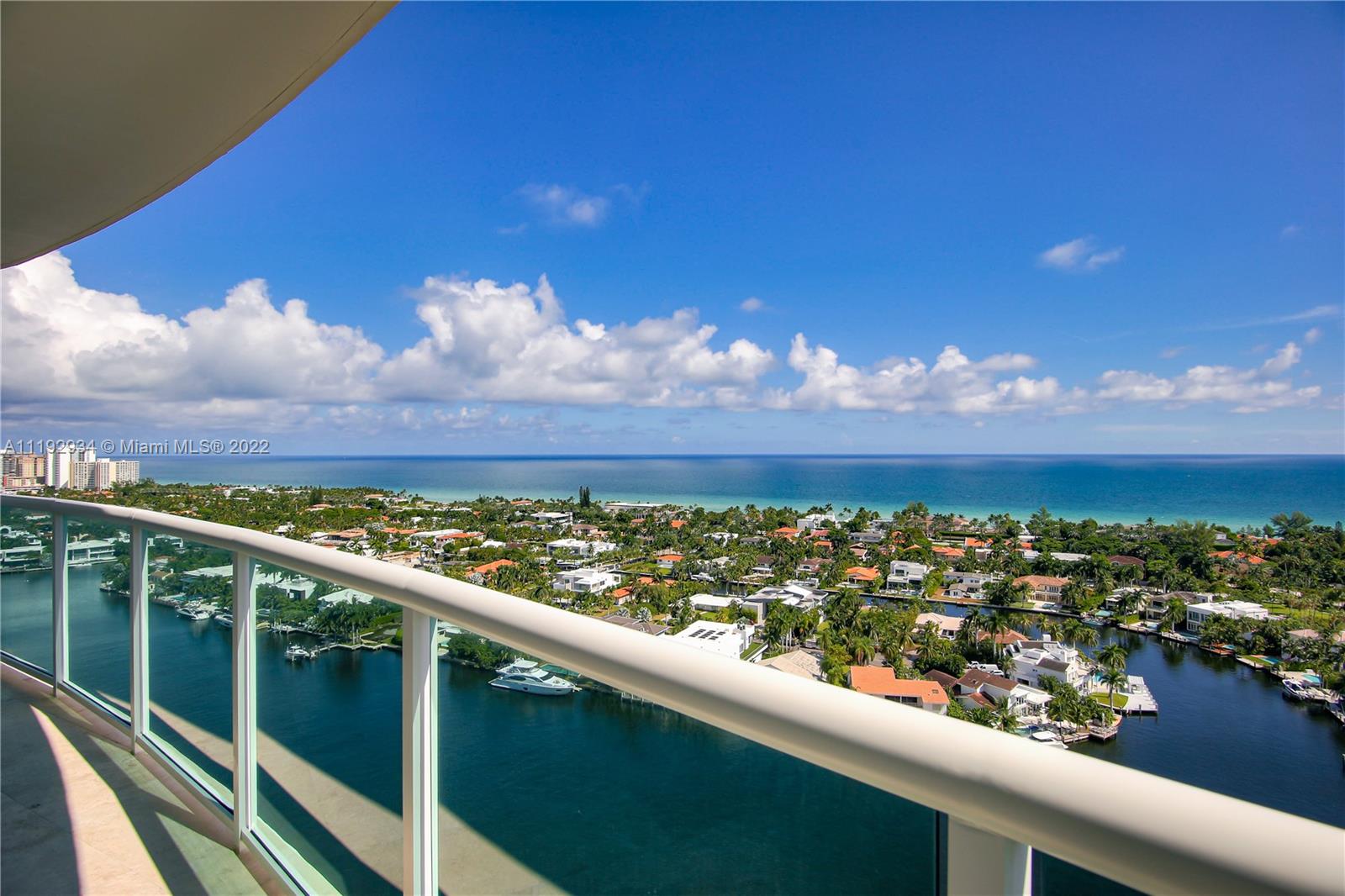 Luxury living, totally unobstructed views! The views of this unit are spectacular. Ocean and intracoastal in the front golf course lake and city in the back. This 2 bedroom + den/TV room, 2.5 bathrooms has beautiful woodwork. Built in bar with extra storage, huge walk-in closets and a separate workshop room. Marble and wood floors and a huge laundry room. Private elevator. Infinity pool, movie theater with 100 seats, BBQ area, tennis courts, internet café, kids room. On site exclusive restaurant. Only 5 minutes to the beach. 3.5 mile bike and walking path across from the property.