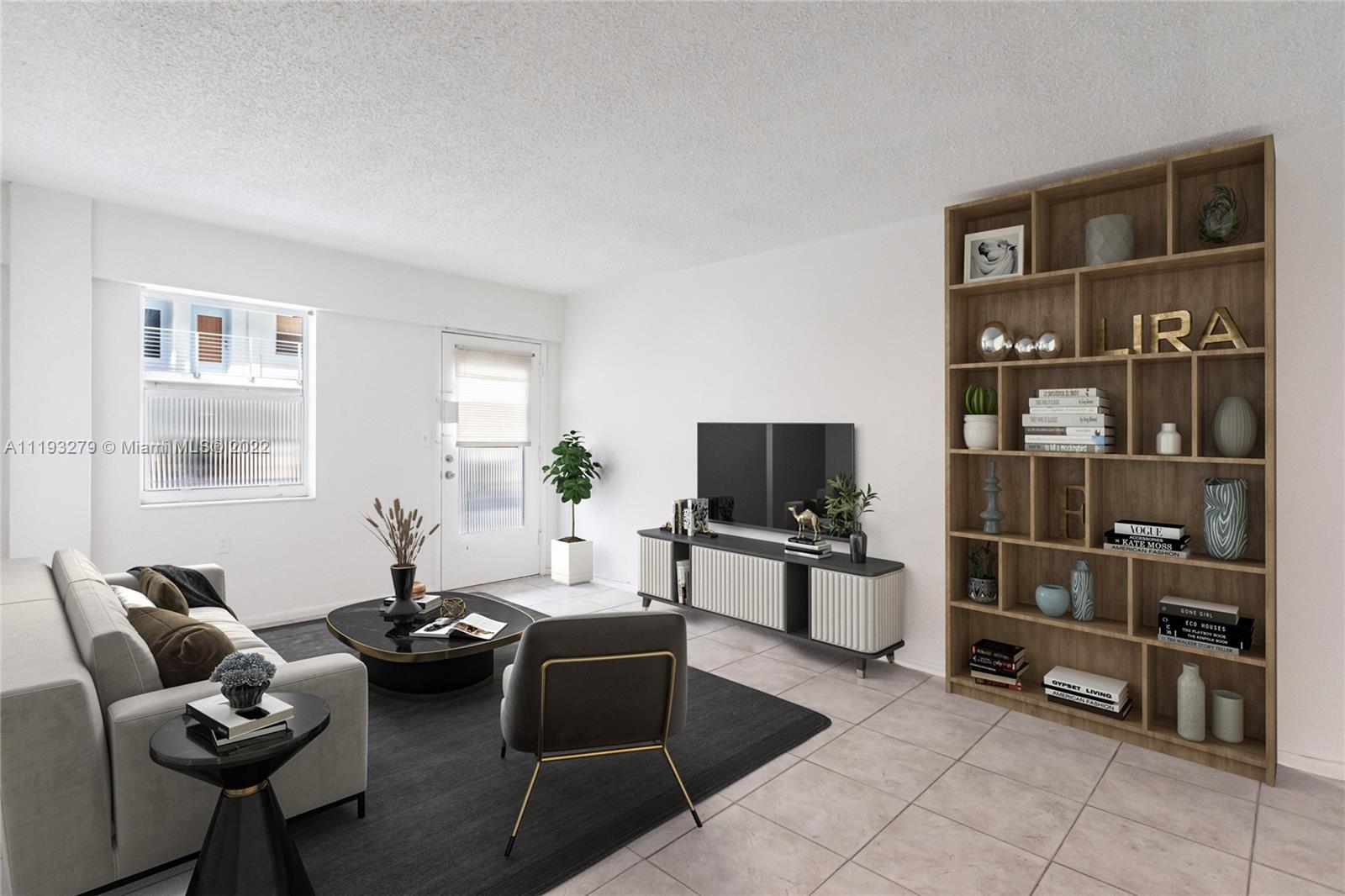 Great building in the Flamingo Park/Lincoln Road neighborhood. Large one bedroom apartment with one full and one half bath, private balcony, pool, and covered gated parking with visitor parking. Well managed financially healthy building with good reserves and passed its 40 yr recertification. Apartment well maintained, move right in or renovate to make it your own. Walk to the beach, tennis in the park, dinner on Lincoln Road. Photos with furniture are virtually staged.
