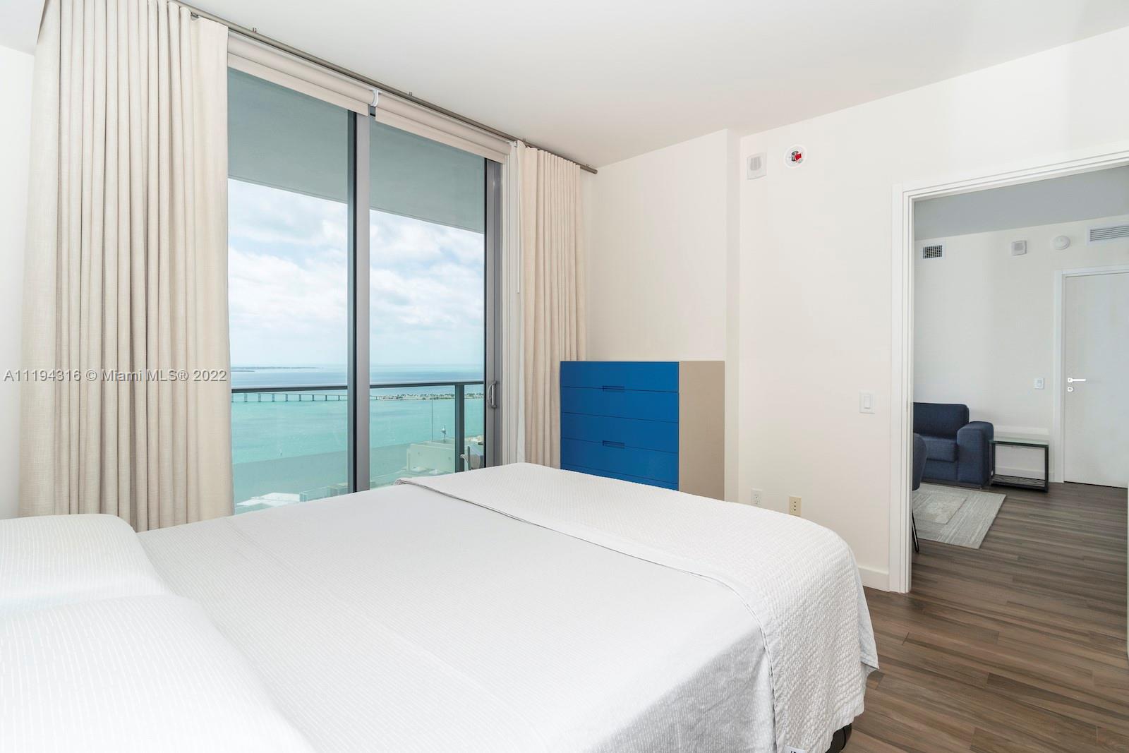 Hurry this amazing unit won't last! Wake up to the relaxing Biscayne Bay view! This High Floor 2 Bedroom + Den 2 Bathroom unit is fully furnished and has full build-out closets. The building has a rooftop pool, exercise room, movie theater, kids room, BBQ Area, etc. Amazing investment opportunity.