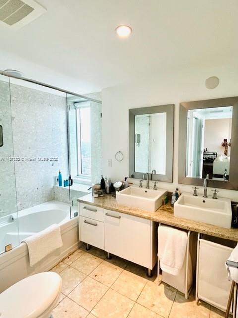 Beautiful 2 bed - 2.5 baths, corner apartment in the heart of Brickell. Split plan. Stainless steel appliances, granite countertops, beautiful tile flooring throughout. Floor to ceiling windows and 9 feet ceilings. The unit has amazing views of the River of Miami and the city. Amenities include a heated pool, 2 floors of state-of-the-art fitness, and men's & women's sauna facilities. Lushly landscaped pool deck & meditation gardens are a great place to relax after a long day. The Grand Party Room has catering services available for your guests. The lobby has been fully renovated. Concierge services and valet for owners and guests. Management is on-site. No special assessments. Building is being painted. Balconies undergoing maintenance.