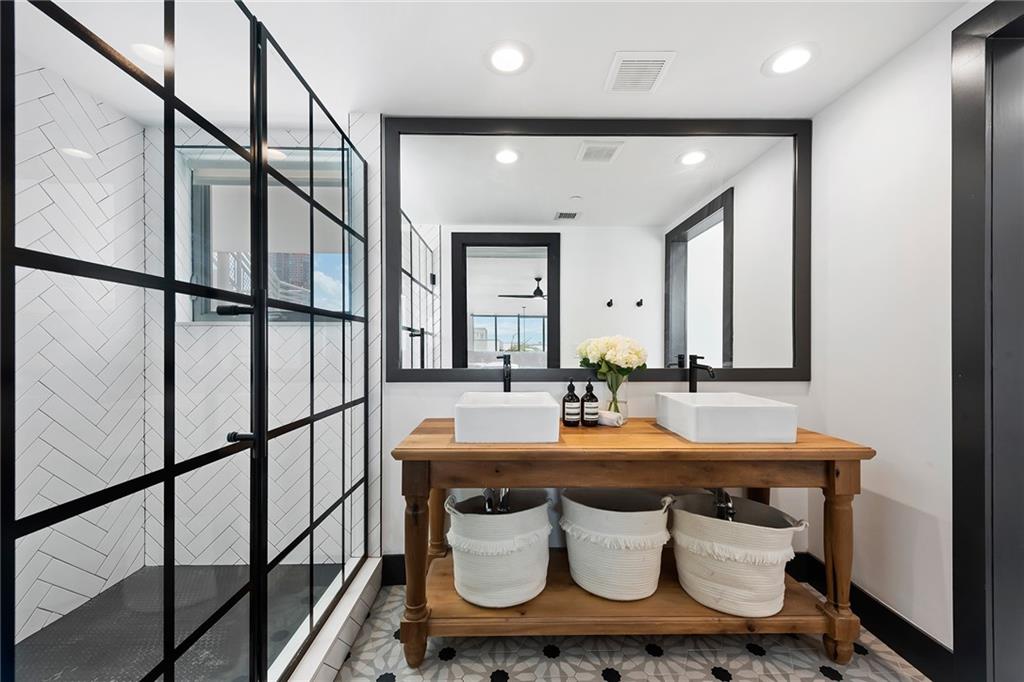 Stunning & Bright 2 Story Penthouse in the heart of South of Fifth, Miami beach's most sought after neighborhood. This 2/2 1444 sq ft penthouse with 18 ft ceilings was tastefully remodeled with high end finishes and features a fully updated custom kitchen, custom milled bathroom vanities, custom doors, and more. The kitchen is as functional as it is alluring with a Fisher Paykel dishdrawer, induction cooktop, smart oven, reverse osmosis water filter, custom reclaimed wood shelves, quartz counters and handmade Moroccan tile backsplash. Large master bedroom, closet and bath located on the second floor. Private rooftop with water, electric, artificial turf and 360 degree views of Miami Beach. Absolut Lofts is a boutique, Kobi Karp fantastic building with fully funded reserves. Furniture Avail