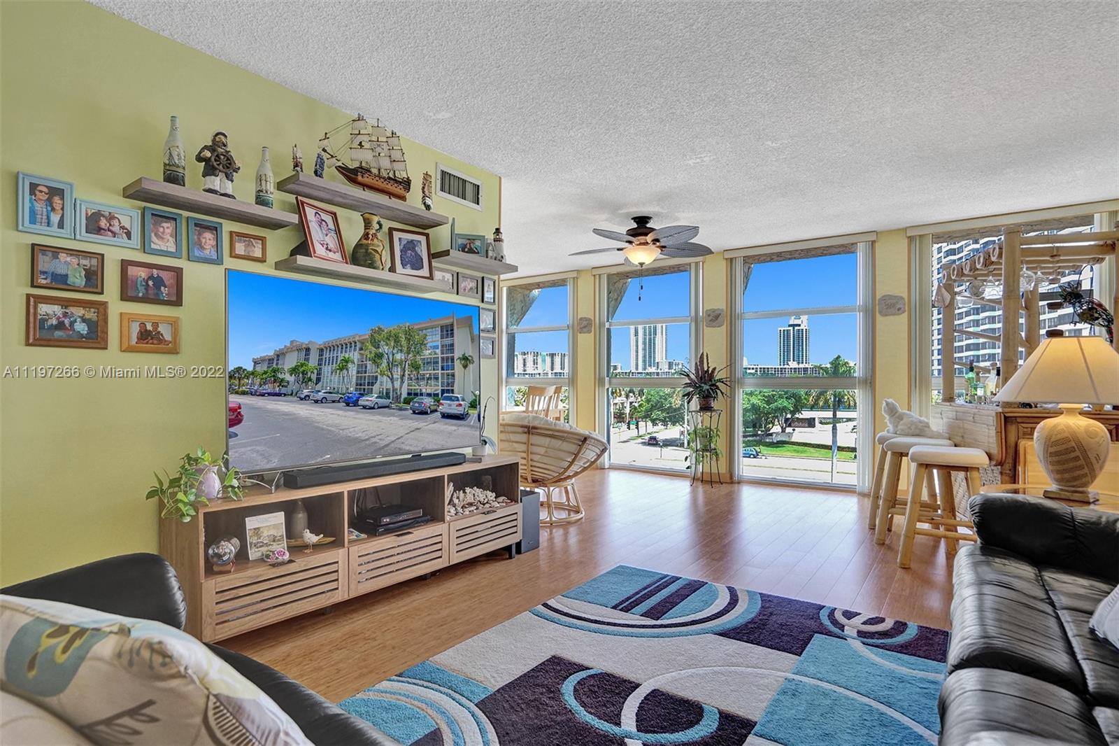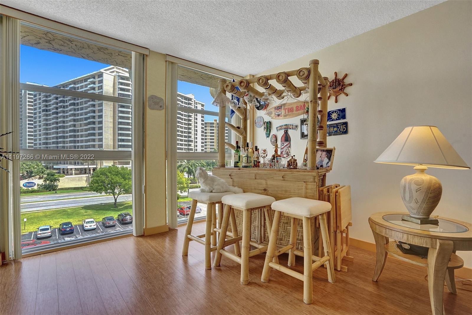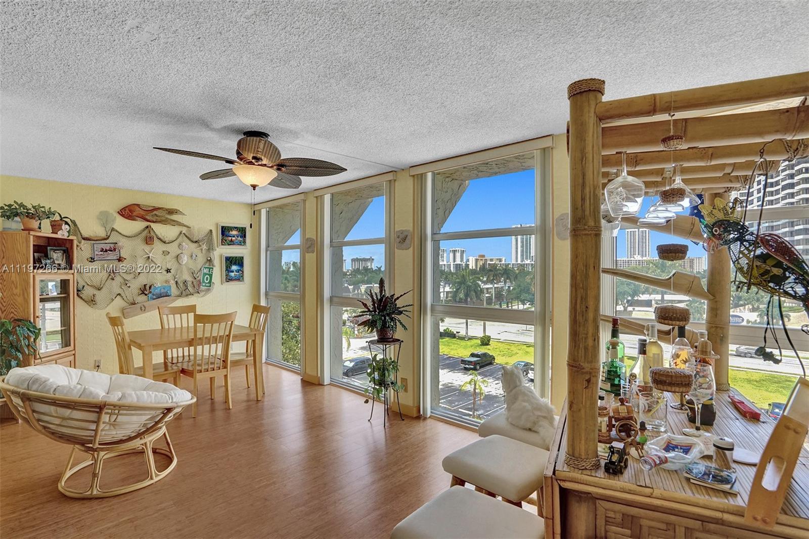 Amazing 2 bedrooms 1.5 bathrooms in the Three Islands Community is ready for new owners! Features HIGH IMAPACT WINDOWS from ceiling to floor, HIGH-END bamboo floors throughout, updated primary bathrooms and A VIEW OWNERS PAY MILLIONS FOR!! LOCATION: 10 mins walk to the park, beach, shops, restaurants and the beautiful Gulfstream Casino.(2 bicycles for purchase so 5mins). Amenities: 2 tennis courts, pool, Club-House, Bike Storage, shuffle board, internet, cable. 40 YEARS CERTIFICATION COMPLETED. How about fishing in your back yard, yours!