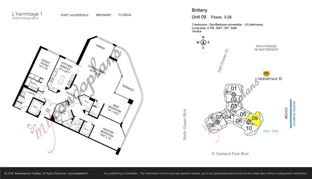 DIRECT EAST, SOUTH & NORTH WIDE OCEAN VIEWS. NO OBSTRUCTIONS. A PRIVATE ELEVATOR TAKES YOU TO YOUR ENTRY FOYER (NO NEIGHBOR). OPEN THE DOOR TO YOUR APPROX 2762 SQ. FT. PALACE. MODERN KITCHEN/SUB ZERO FRIDGE, SS APPLICANCES, ISLAND W/STORAGE, & TABLE FOR 4, TONS OF CABINET SPACE. HUGE CUSTOM MASTER BATH WITH STEP UP JACUZZI TUB AND SEPARATE STEAM SHOWER. THIS UNIT WAS DESIGNED FOR ENTERTAINING AND OWNER COMFORT. SEPARATE WINDOWED BAR AREA, LOTS OF SHELVES AND CABINETS THROUGHOUT. THIS ONE OF A KIND CREATURE COMFORT AND ENTERTAINING FRIENDLY APT WILL PLEASE THE MOST DESCRIMINITING BUYER. LARGE GUEST BR ON OTHER SIDE OF APT. BEDROOM 3 IS SET UP FOR GUESTS AND/OR OFFICE. 2 SEPARATE INDOOR GARAGE SPACES, VALET PARKING. AMAZING GROUNDS, POOLS, TENNIS, CONCIERGE, CHILD PLAY ROOM & MUCH MORE.