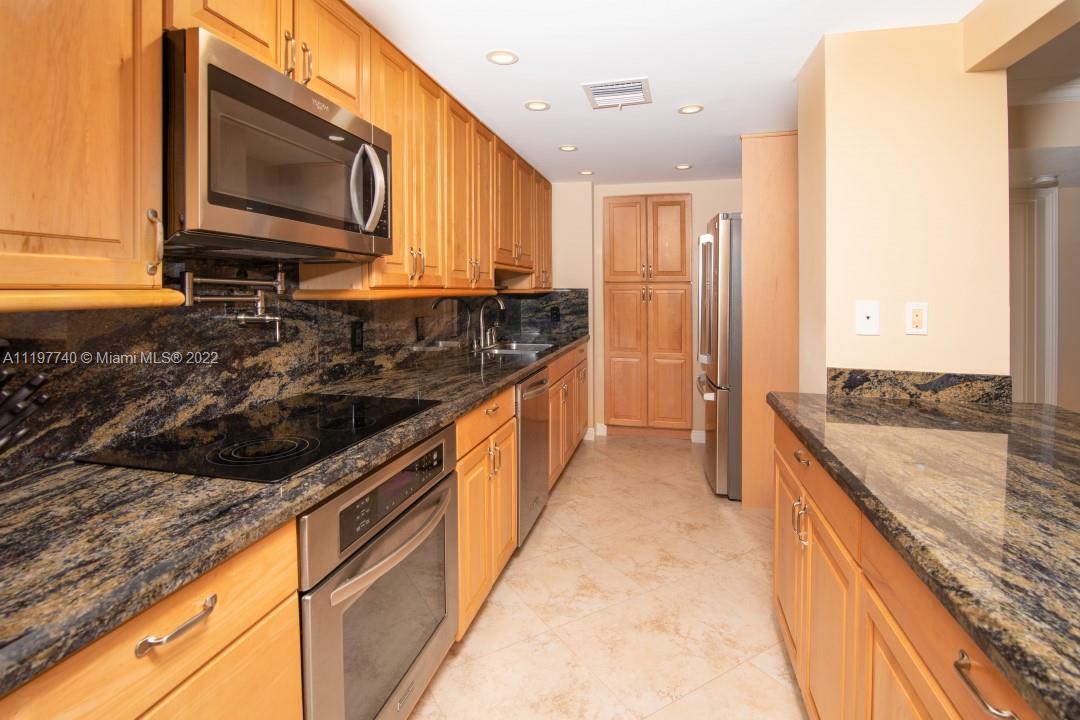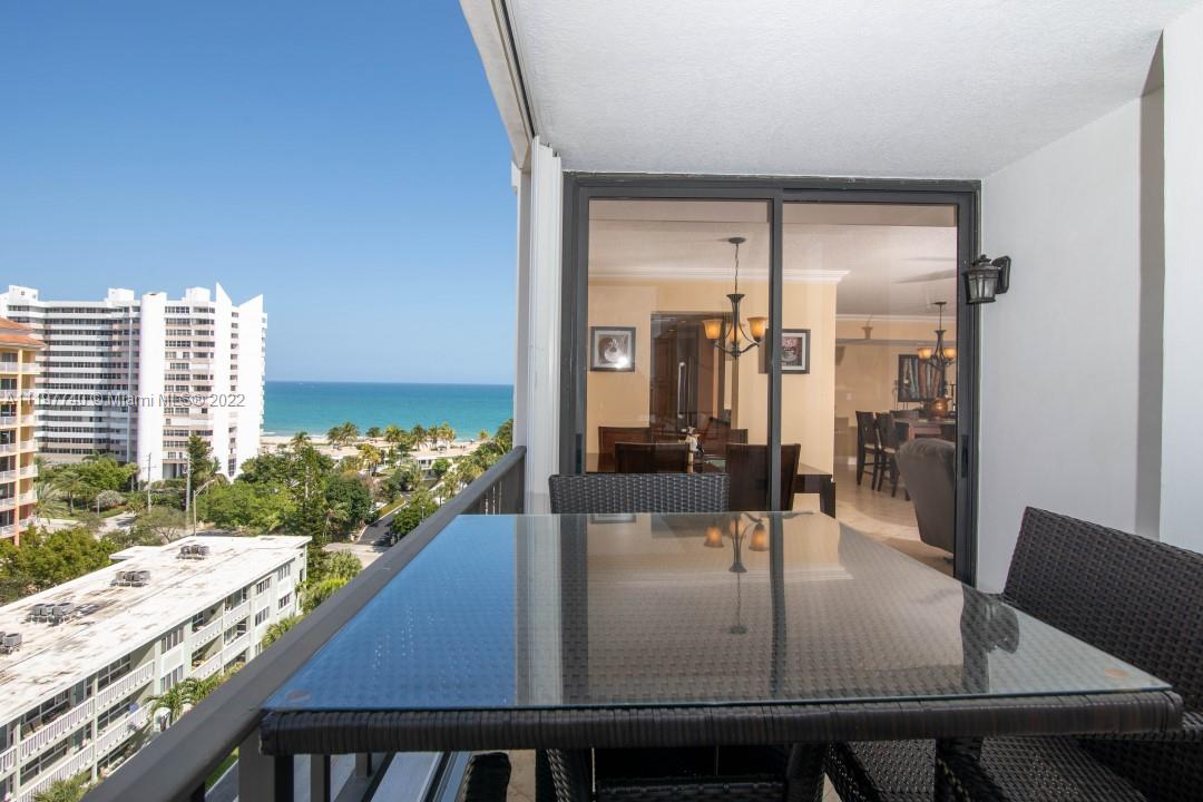 Enjoy stunning views of the intercoastal and ocean while you eat dinner and sip cocktails on your 10th floor balcony. This 3 bedroom/2 bath (3rd bedroom currently used as an office) has an open floor plan. It has been tastefully updated with stainless steel appliances, granite countertops, cabinets and tile throughout the home. An oversized washer and dryer are in the unit! The apartment is spacious with plenty of closets & not one but two pantries. The unit comes with 1 garage spot and the building has plenty of guest parking. A/C was updated in 2018. Has full surround sound system, impact windows and shutters. Feel like relaxing by the ocean? Your private gated-beach just 285 steps away. Feel like taking a stroll to a nice restaurant, Sea Watch is a short walk away.