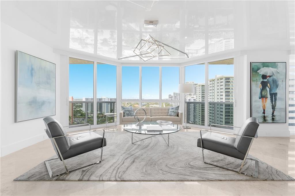 Move right in..Contemporary..furnished...RENOVATED..DOUBLE CORNER..BOTH SUNRISE AND SUNSET VIEWS with Direct OCEAN & Pool views from EAST wrap-around terrace and Direct CITY/WATERWAY/TENNIS COURT Views from WEST wrap-around terrace .Private elevator..HURRICANE IMPACT WINDOWS...Open kitchen.with Italian cabinetry...resort like complex with poolside cafe..2 (Har Tru ) clay tennis courts..valet..concierge..pet parks, 2 pets any size ok..owners can park car in the garage..valet is also available but not required