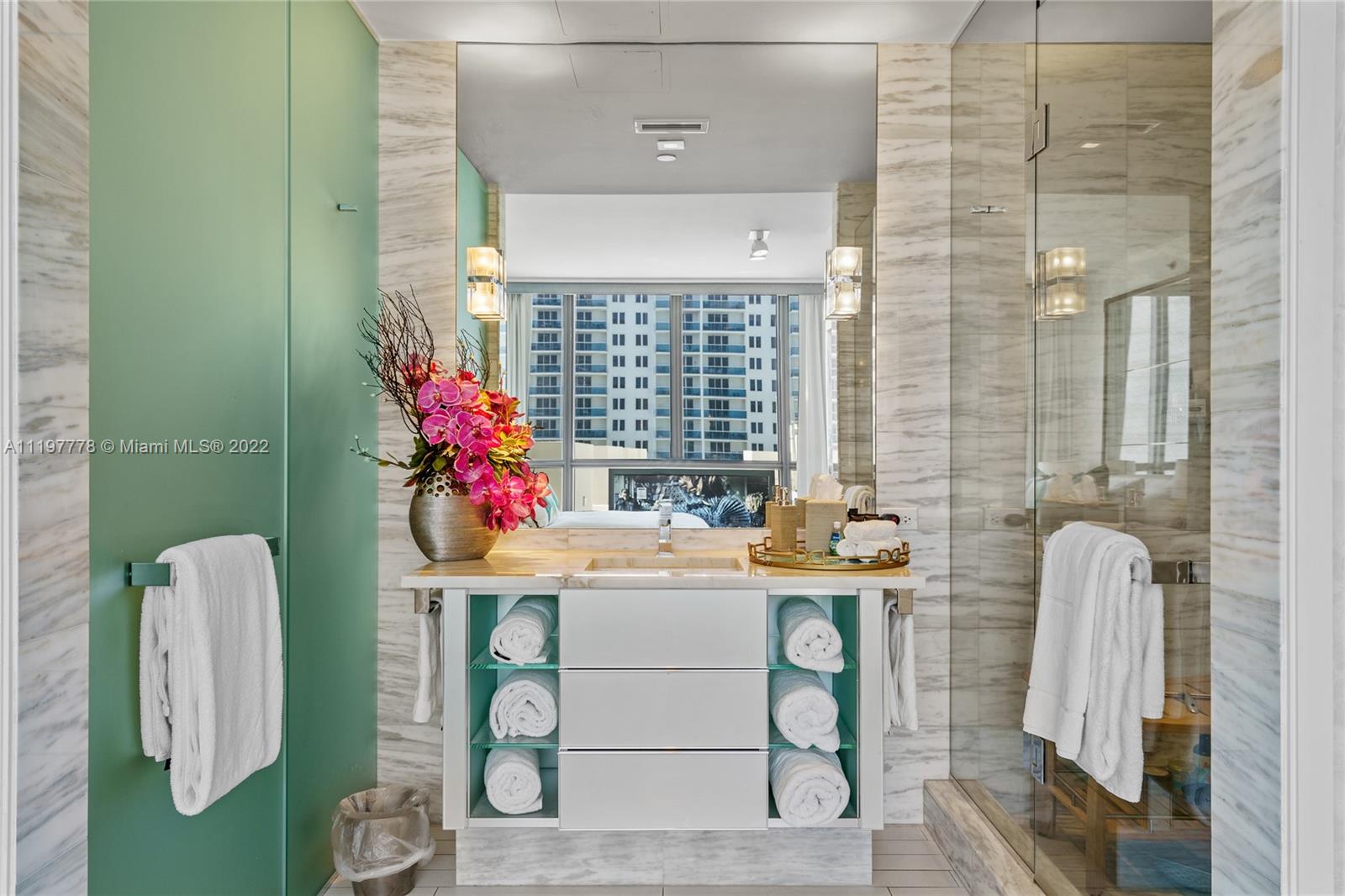 This luxury residence at the W South Beach is a 2 bedroom 2.5 bathroom suite. The master bedroom has a king bed and the second bedroom accommodates 2 more guests on a queen bed. This suite has 2.5 bathrooms, and two balconies with views of the Atlantic Ocean, and the city of Miami Beach.