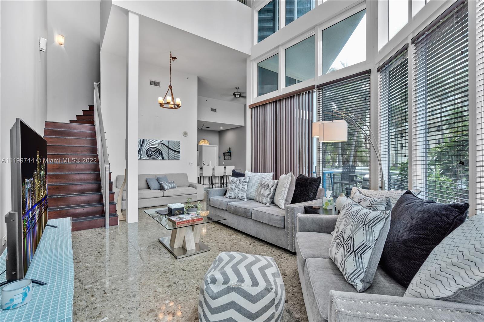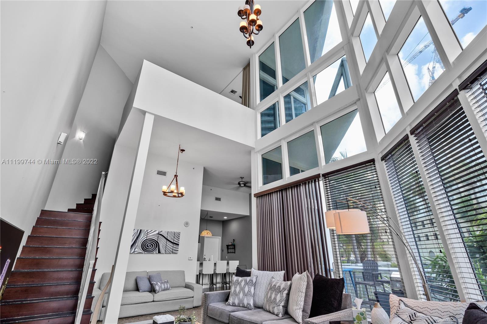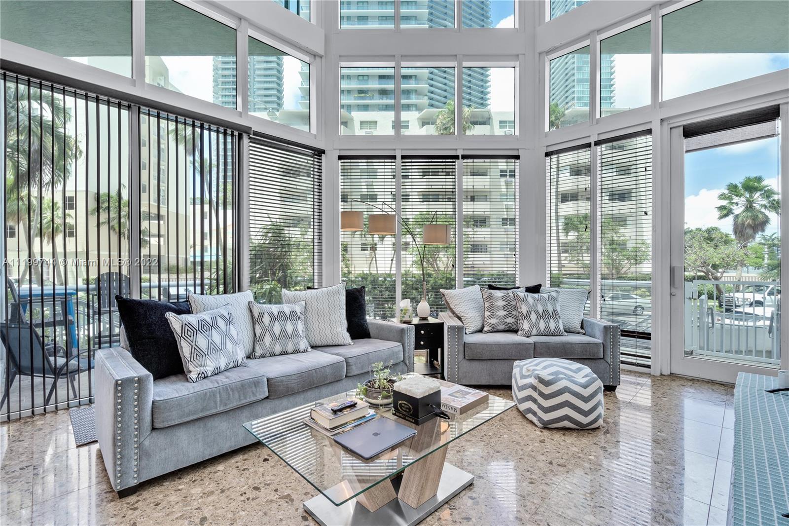 Unique opportunity to own one of only 4, two-story townhomes located in Edgewater with garden and patio just a short distance from the water! Floor to ceiling triple height windows allow the unit to be flooded with natural light. The first floor offers a spacious living area, open kitchen, full bathroom, a private yard with private entrance off the garden. The second floor features a large master suite with den and private terrace. Enjoy views of Biscayne Bay from each floors. 2 ASSIGNED PARKING SPACES in front of your unit! Newly updated amenities include fitness center, business center, party room, heated pool with cabanas and jacuzzi, steam room, sauna and 24-security. Close proximity to Wynwood, Design District & Midtown, 10 minutes to Miami Beach, Brickell and Downtown.