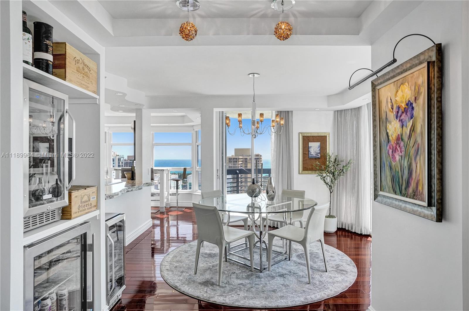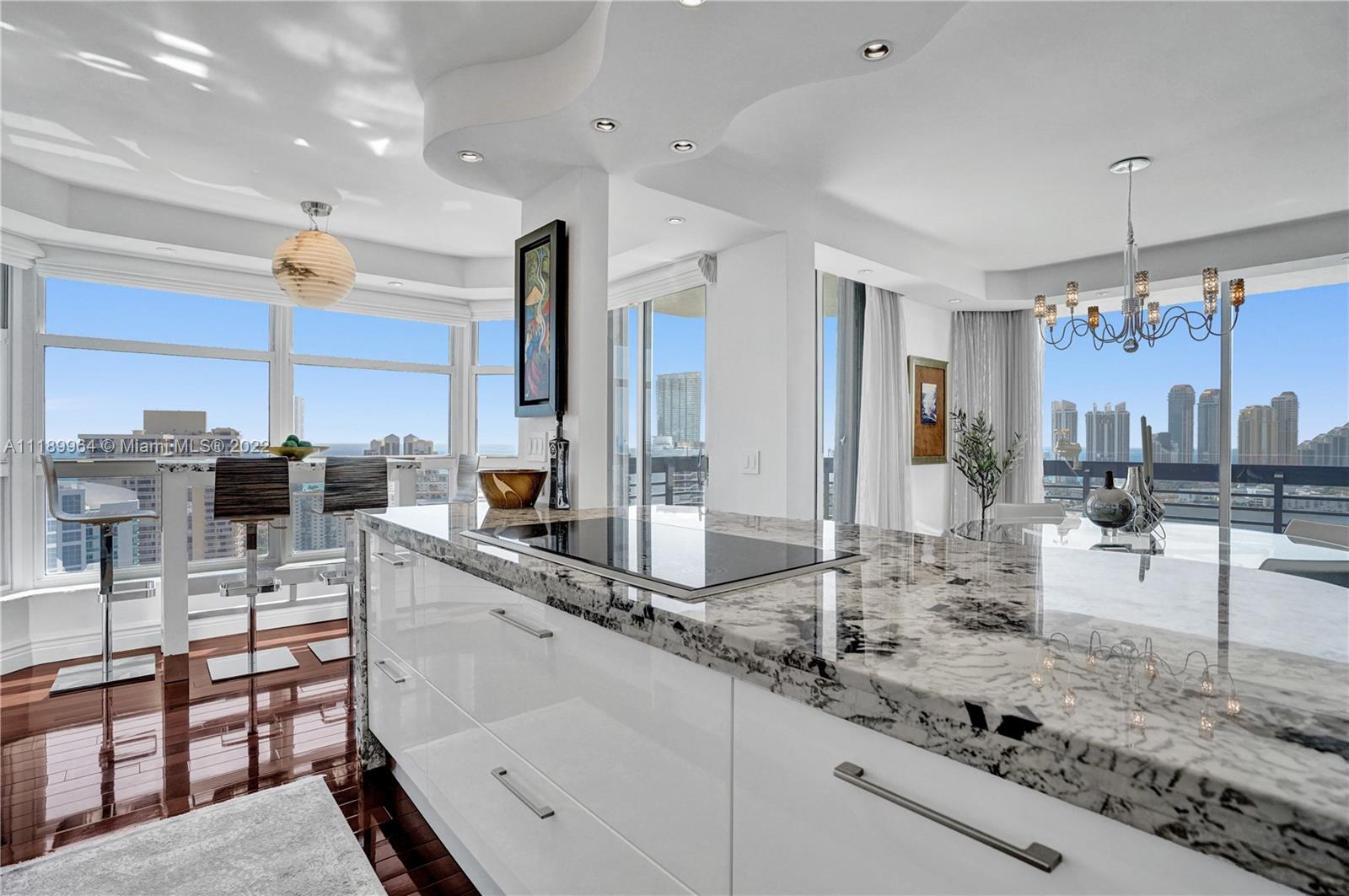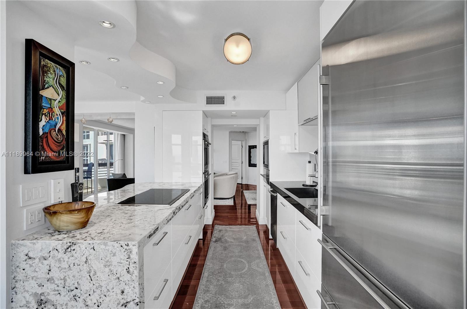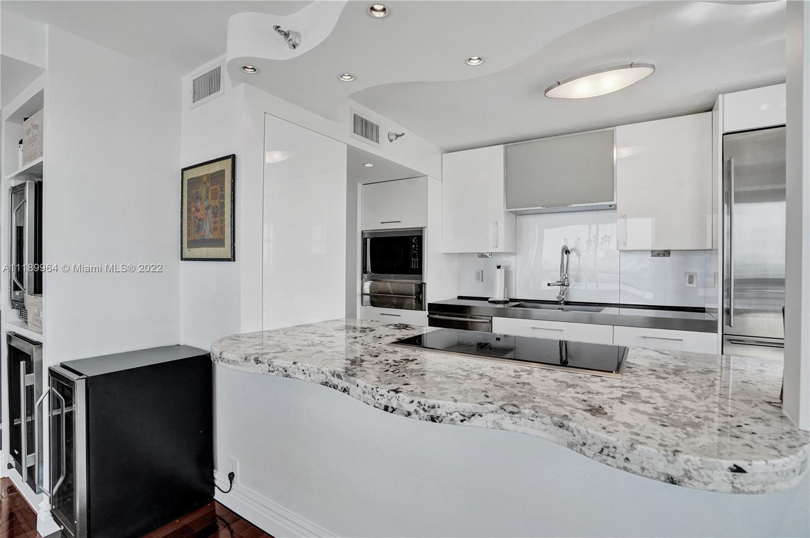 Beyond spectacular, fully renovated by Architect/Designer. Immaculate custom unit for the most discriminating buyer who aims for perfection in high demand SE Florida. Unobstructed SE & N views. Top of the line finishes from ceilings, walls, lighting, floors & artistic designer niches. Brazilian cherry wood floors. Sub-Zero combo refrigerator/wine cooler, Italian custom cabinets, Wolf warming drawer, double ovens, microwave, 2 add’l wine refrigerators, Granite waterfall counter; stainless steel counter w/integrated sink. Master bath limestone w/Sicis custom design tile, 2 lg xl deep Robern 23x40 w/8” depth, plenty of storage. 2nd bath: Sicis tile w/stone. Miele SS washer, dryer. Too many to mention. No detail has been spared. Enjoy the marina, tennis & all Mystic Pointe Island has to offer.