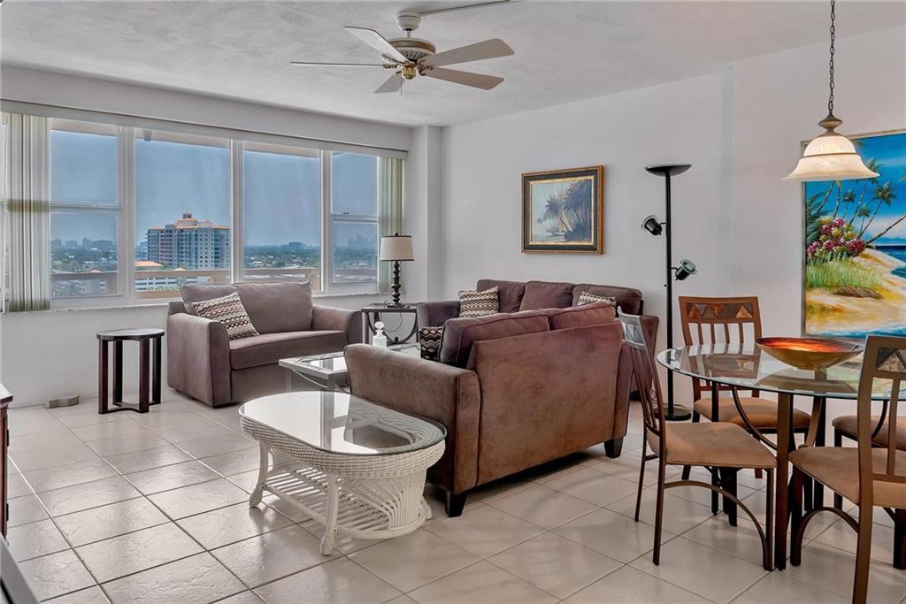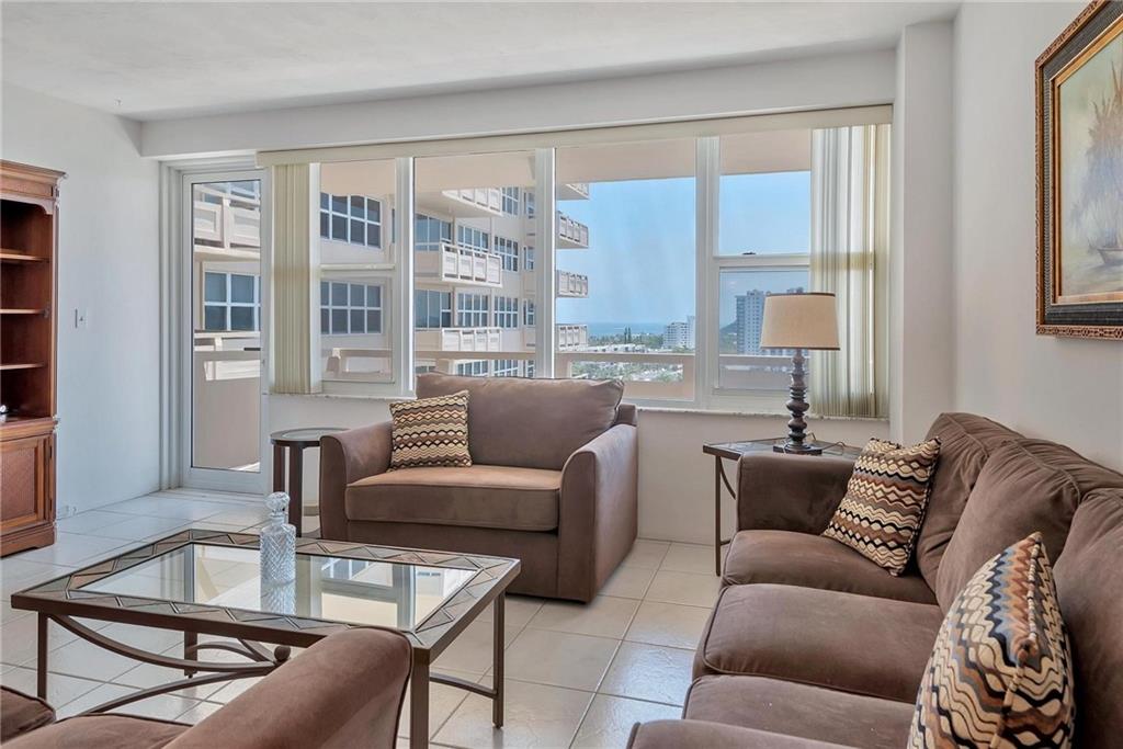 Lovely 1 bedroom, 1 bath facing east on a high floor with an ocean view. Tile floors throughout, hurricane impact windows and plenty of closet space. You are on the Galt Ocean Mile with abundant dining and shopping options. A perfect winter home or live there year round. Enjoy the heated pool and lush gardens & landscaping. Free community shuttle. 55+ community.