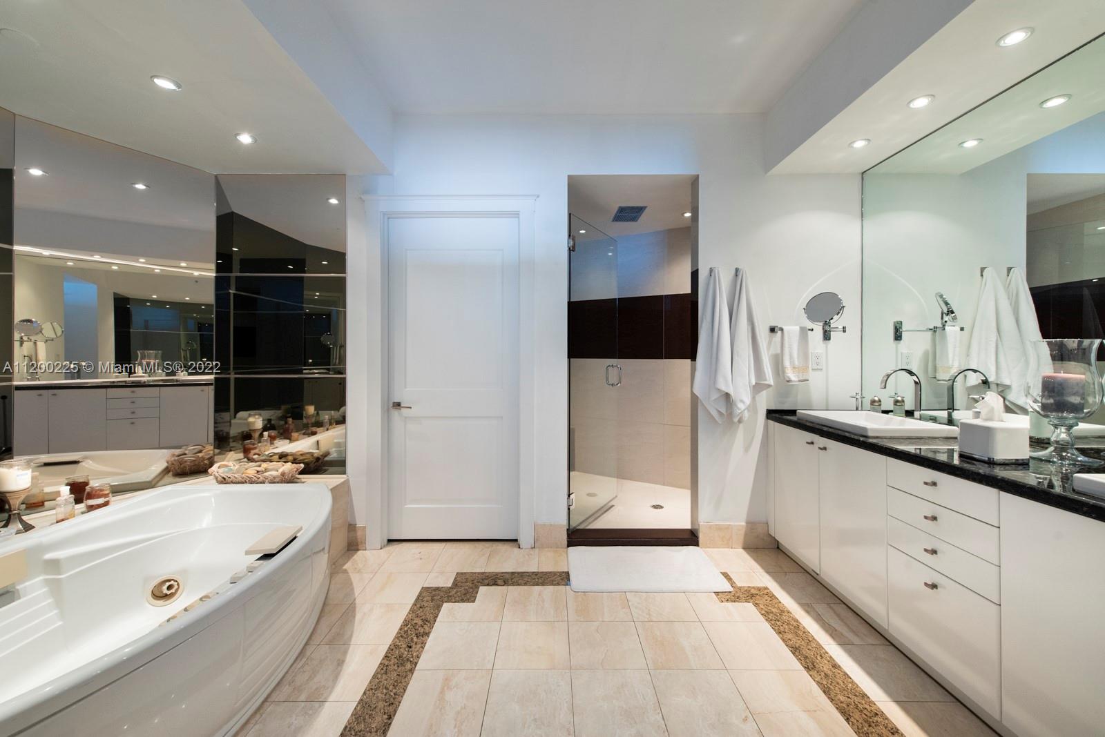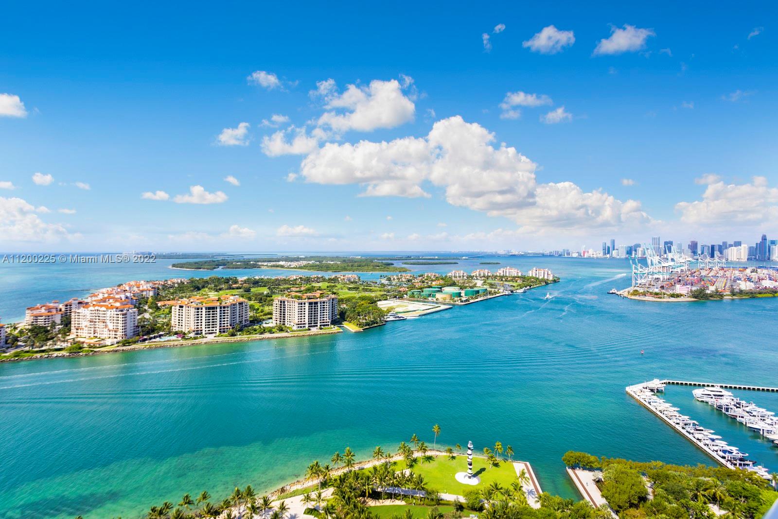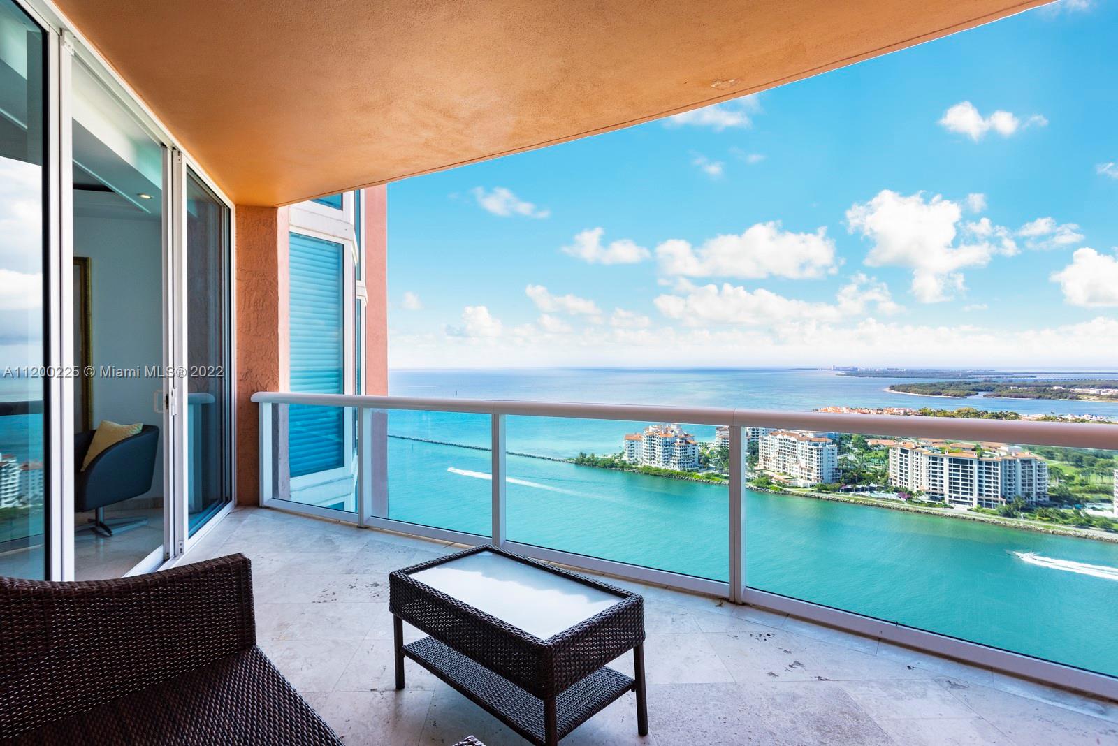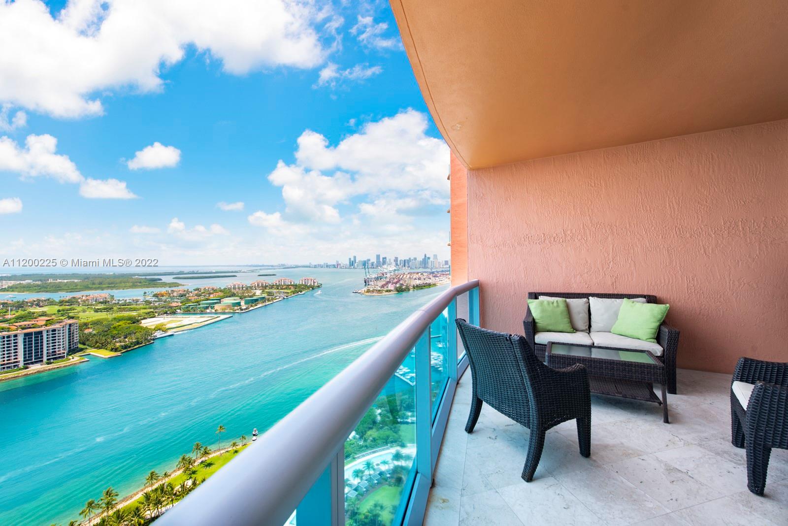 Beautiful Ocean, Bay, Fisher Island and downtown views from this high floor, two bedroom in South Beach. Offering a great layout and flow, with all usable space. Marble floors throughout living areas and wood floors in the bedrooms. Enjoy sunrise and sunset views from two large balconies with privacy wall. Portofino Tower is located in the South of Fifth area. South of Fifth is a luxury neighborhood in South Beach offering ultra-high-end condominiums, top rated restaurants, beautiful beaches, the Miami Beach Marina and South Pointe Park.