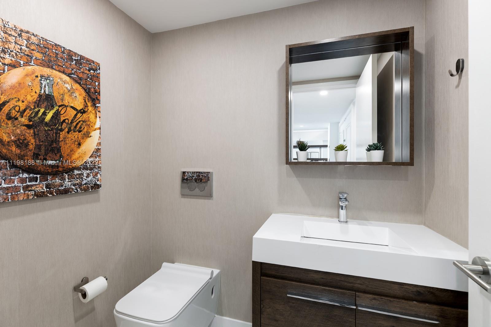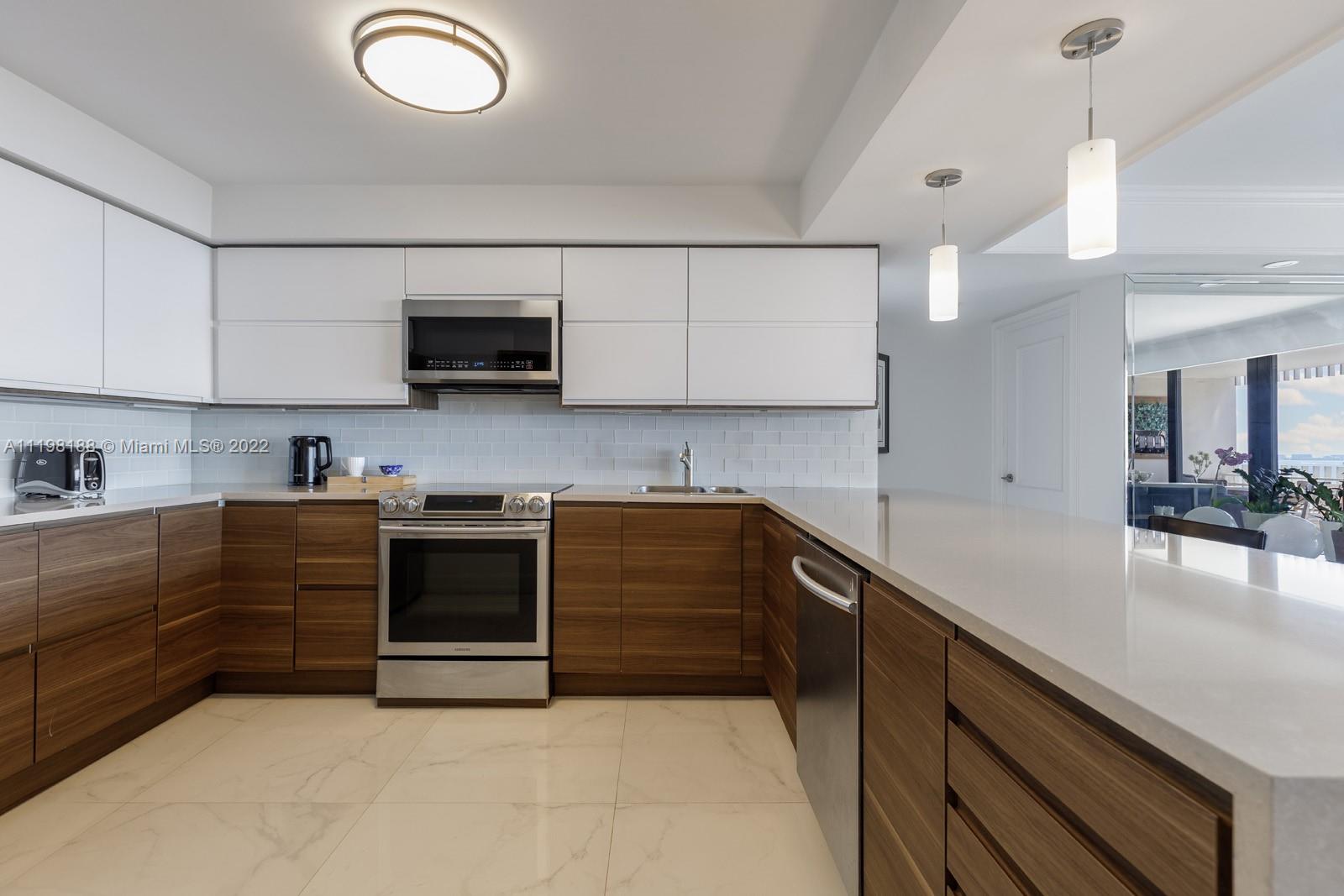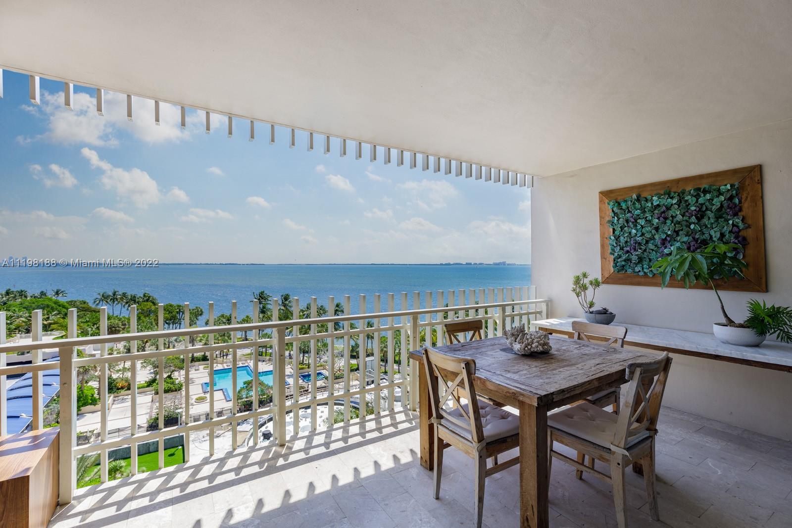 Welcome inside this sleek and sophisticated Coconut Grove residence that offers the essence of tropical modernism. Spanning 1,882 SF and including 2 beds and 2 baths plus 1 half bath, this stunning unit is the perfect destination to experience the Miami lifestyle, with views of Biscayne Bay encapsulating the home. Immediately upon entering the unit, the open floor plan living space offers residents a high-style, mid-century modern design aesthetic. It features a large gathering area, dining room, and contemporary eat-in kitchen fit with luxury finishes. In addition, residents have direct entry to a spacious wraparound balcony. Here, they can spend every season outdoors creating new memories underneath the sun-kissed rays.