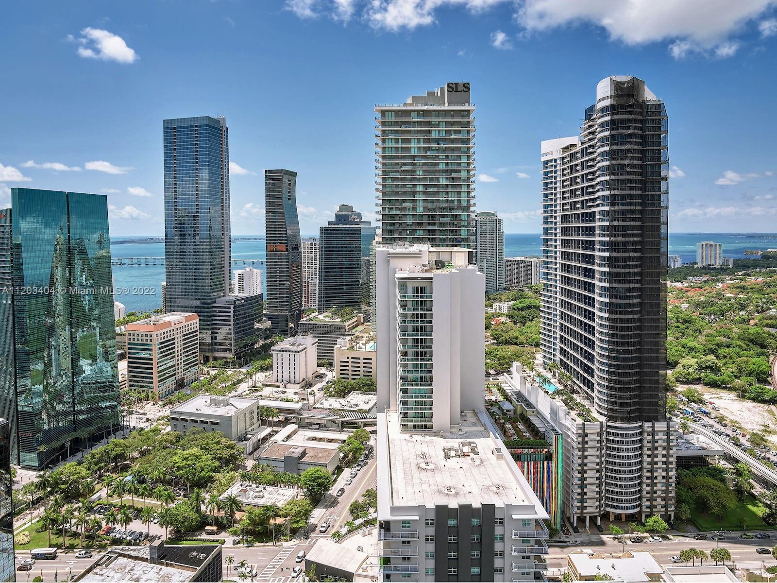 Enjoy beautiful views from the 40th floor from this south facing residence. Featuring 1 bedroom + den 1.5 baths, 877 sf / 81 m² of interior space, the large den has walled closet that is perfect for a media room/ guest bedroom. The building has great amenities such fitness room, yoga, movie theatre, entertainment room with chef kitchen, pool table, library and 2 pools one on the 9th floor and a second on at the building's rooftop.