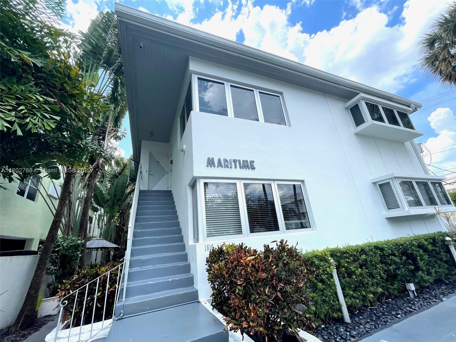 Turnkey ready to live in, this second floor 712 sq. ft street facing apartment is the most desirable unit in the MARITIME condo. Fully renovated and furnished large one bedroom located less than 1/2 block from Lincoln Road on a dead end street with very limited car traffic and convenient adjacent parking, 10 min walking distance from the beach. Can be rented twice a year. Washer/dryer in the unit. Street parking. A second bed permit can be asked to the city.