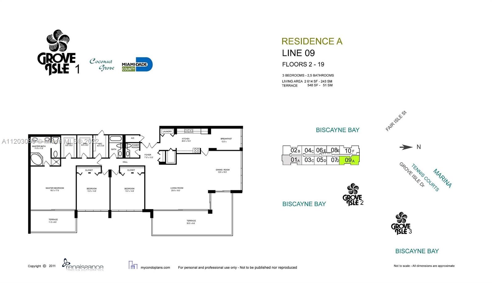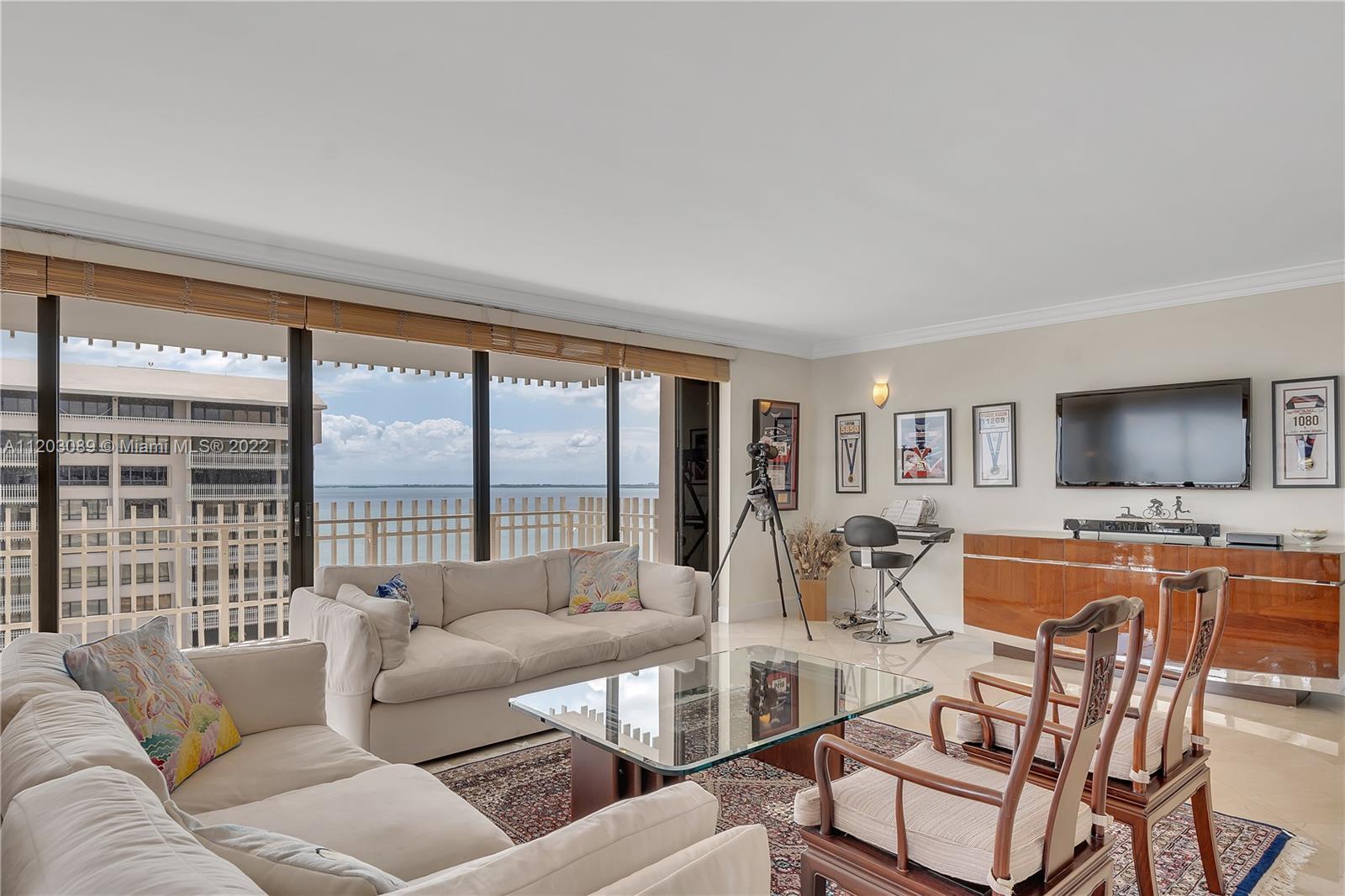 1709 is special: The only 2614 sq. ft. high floor, 3 bed corner unit available on exclusive Grove Isle. Rarely on market 09 line, Building 1. BEST OF ALL VIEWS: awake to sweeping wide-bay, sailboats and sunrise and spend evenings on expansive terrace enjoying magnificent sunsets, twinkling lights of yachts in the marina and spectacular city skyline. Open floor plan living-dining, three bedrooms plus additional office/den. Large master suite with renovated bathroom, two walk-in closets and private terrace. Grove Isle is a guard-gated, 20 acre private island in the heart of Miami’s Coconut Grove, with balmy breezes, marina, beach, dog park, children’s playground and jogging path. Minutes to Brickell, Downtown, restaurants, bayfront parks and Miami’s best schools.