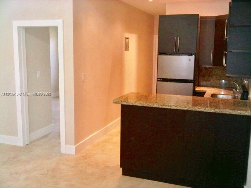 Very Boutique and cozy 1bed/1bath apartment in a quiet condominium on the water. Best unit in the building completely remodeled in 2019. New granite flooring, new Kitchen, new appliances, new bathroom and new A/C units. Gated community W/LAUNDRY facility on site. STREET PARKING, special assessment to install impact doors will be paid by seller.