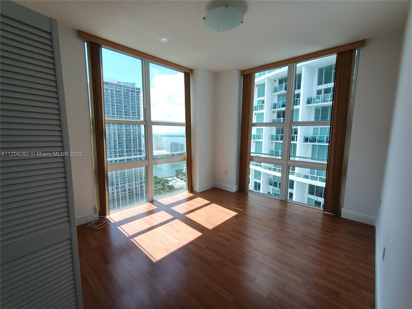 Experience this vibrant urban life style in an unbeatable location with this absolutely captivating and spacious two balconies corner residence in the sky 3 Beds-2.5 Baths. Amazing and pleasant East views. Natural and luminous light all over, floor to high ceiling windows, open concept kitchen S.S. appliances, laminated wood floors throughout. Assigned parking space conveniently located in 2nd. level. Magnificent amenities featuring 2 pools- Jacuzzi. BBQ area. Multilevel state of the art gym, spa, sauna, steam room. Business Center and more. Association allows 90 days minimum lease as up to 4 times per year. Right to Metro mover, Brickell City Centre, Mary Brickell Village, etc. Easy access to main highways. Do not miss this great opportunity.