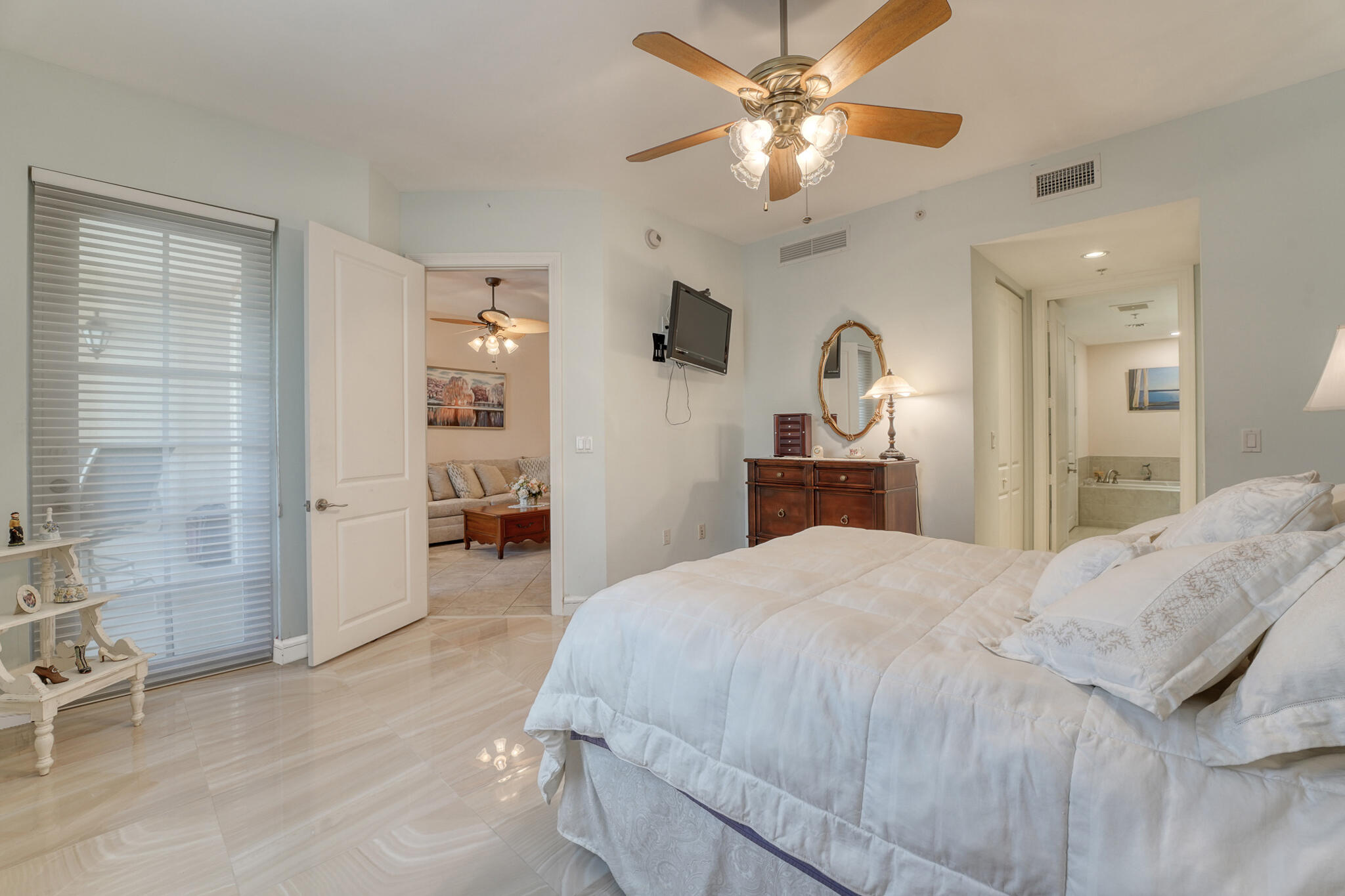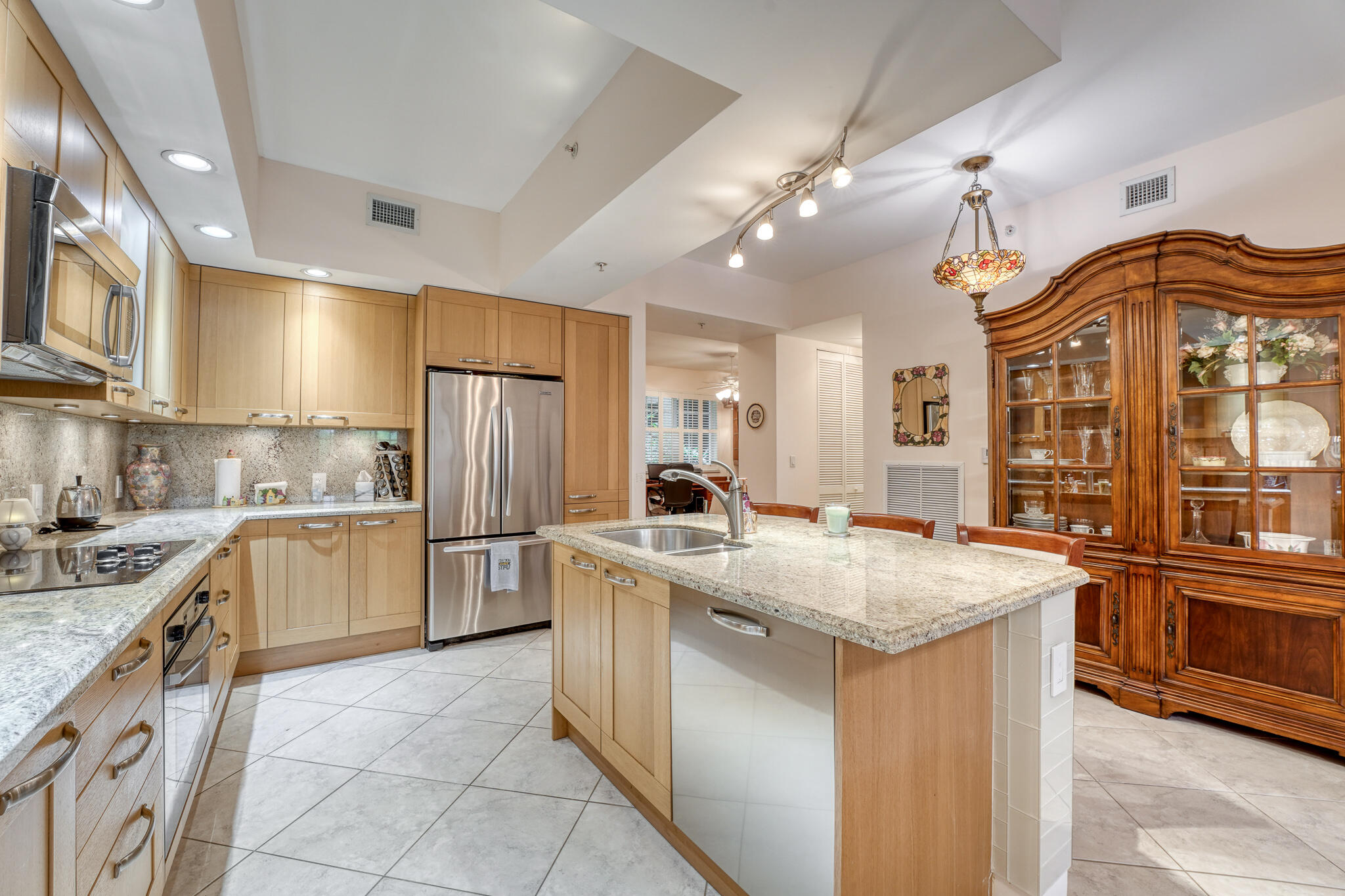 Welcome home to this bright and spacious 2 bed / 2.1 bath condo, updated throughout. Custom kitchen w/ Granite countertops and backsplash has breakfast bar. SS appliances. Master suite has porcelain tiles, updated bath, and Spacious floor to ceiling walk-in master closet with custom built organizers. Impact windows. Open den has built in murphy bed. Large patio with ocean view. In-unit full size washer and dryer. 2 Primo Parking Spaces in Garage and Additional Storage Locker in Climate-Controlled area. Pet Friendly up to 2 Any Size. Opportunity to rent right away! The Sea's Signature Street, El Mar Drive. Adjacent Beach Club has Cabanas alongside the Heated Pool, Kitchen Facilities, BBQ Area, Spa & Exercise Room with All New Cardio and Strength Training Equipment.