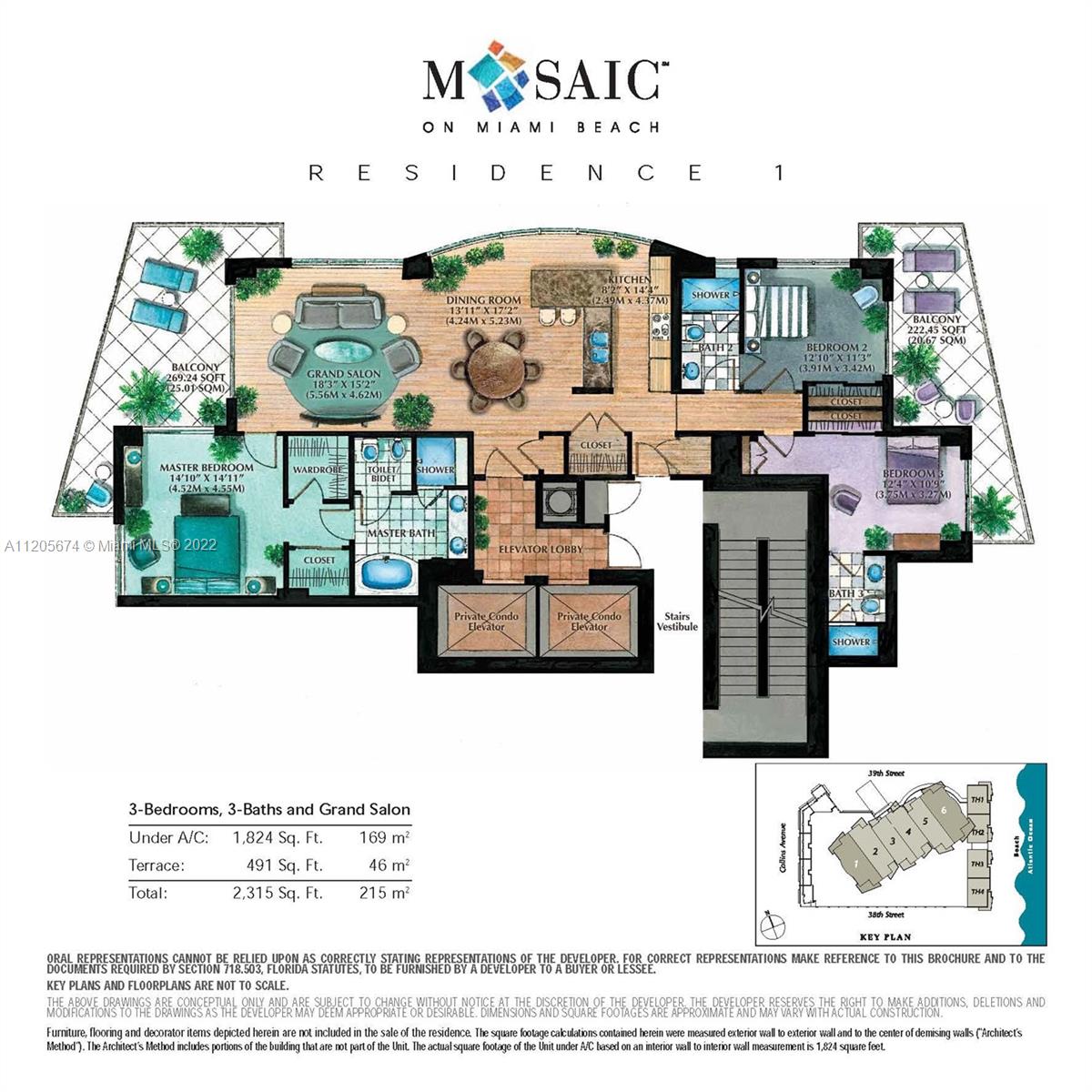 Welcome to this fantastic 3 BD 3 BA corner unit at the Mosaic . Enjoy ocean, city, and pool views from the 2 terraces. Floor-to-ceiling glass windows in the living & dining room offers incredible sunlight all day. This unit features an open concept layout and marble flooring throughout. Renovated European-style kitchen with custom wood cabinetry. Condo can be rented up to 4 times a year for a minimum of 3 months. 5 Star Amenities include European edge heated pool, Jacuzzi, BBQ area, world-class fitness center, social club room, theater, business center, 24-hour security, valet, beach service and more! Walk to SoHo House, Fontainbleau, and Faena.