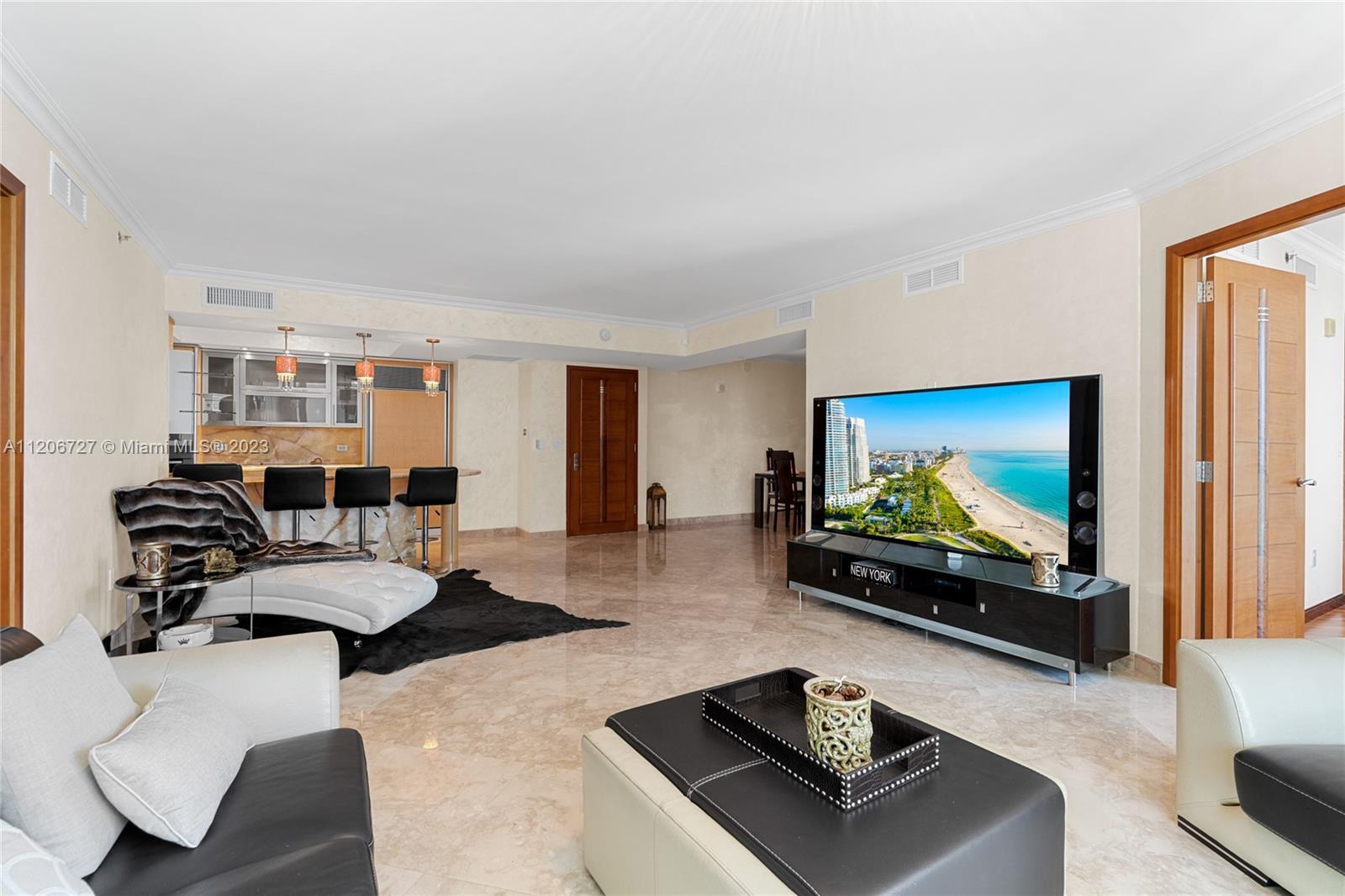 PARTIAL OCEAN VIEWS FROM ALL BEDROOMS, 2 BEDS, 2 FULL BATHS PLUS OPEN DEN, CALIFORNIA CLOSETS, ALL MARBLE AND GRANITE BATHROOMS, JACUZZI TUB, BIDET, ITALIAN STYLE KITCHEN WITH TILE BACK SPLASH, ALL MIELE APPLIANCES, SUB ZERO RE FRIGERATOR,WASHER/DRYER. FITNESS CENTER, FULL BEACH SERVICE, POOL, GYM, YOGA, PILATES. RESTAURANT ON THE BEACH, 24 HOURS DOORMAN, SECURITY AND VALET.