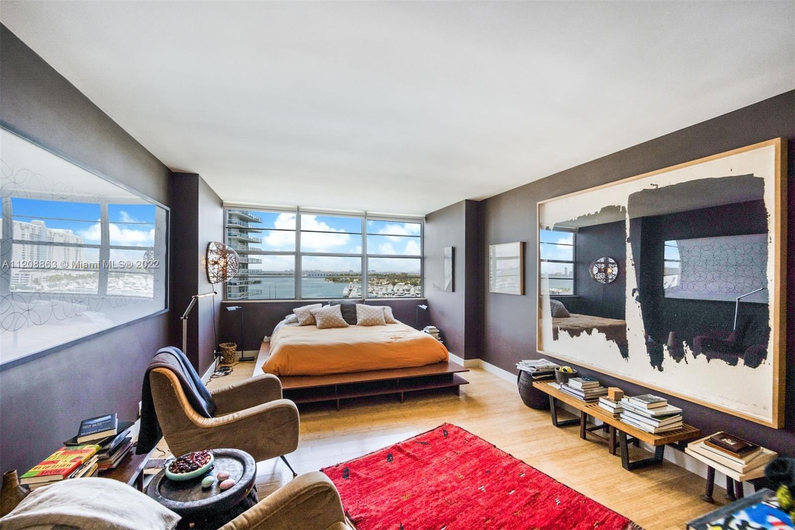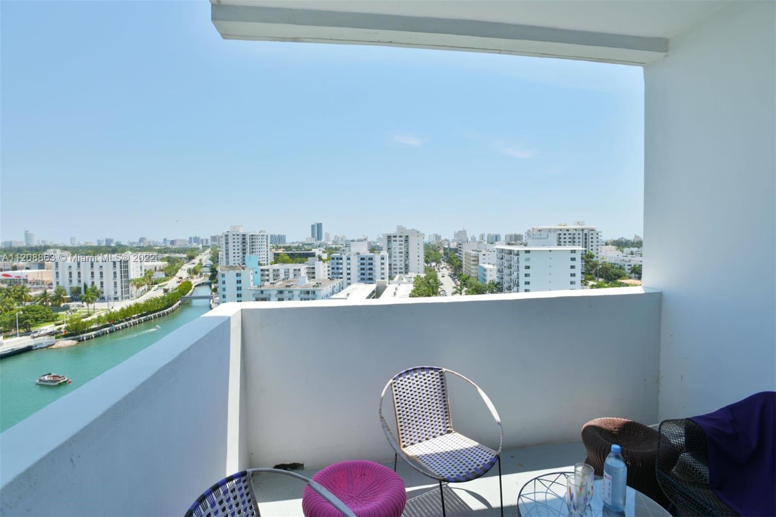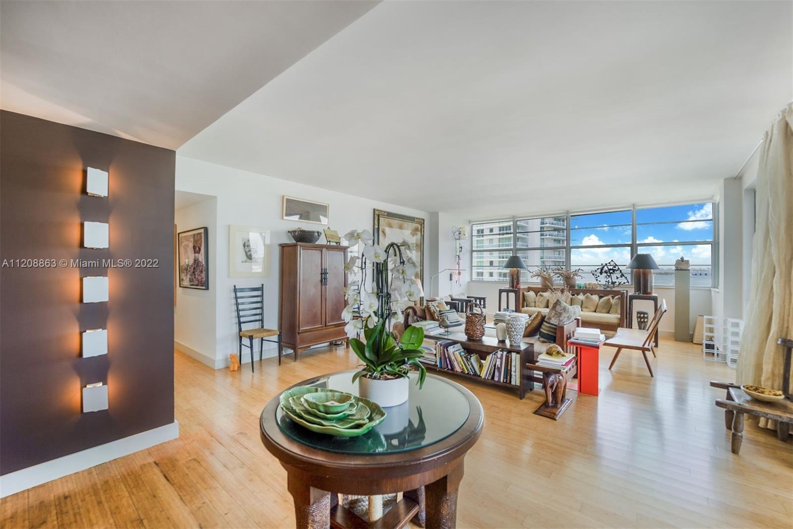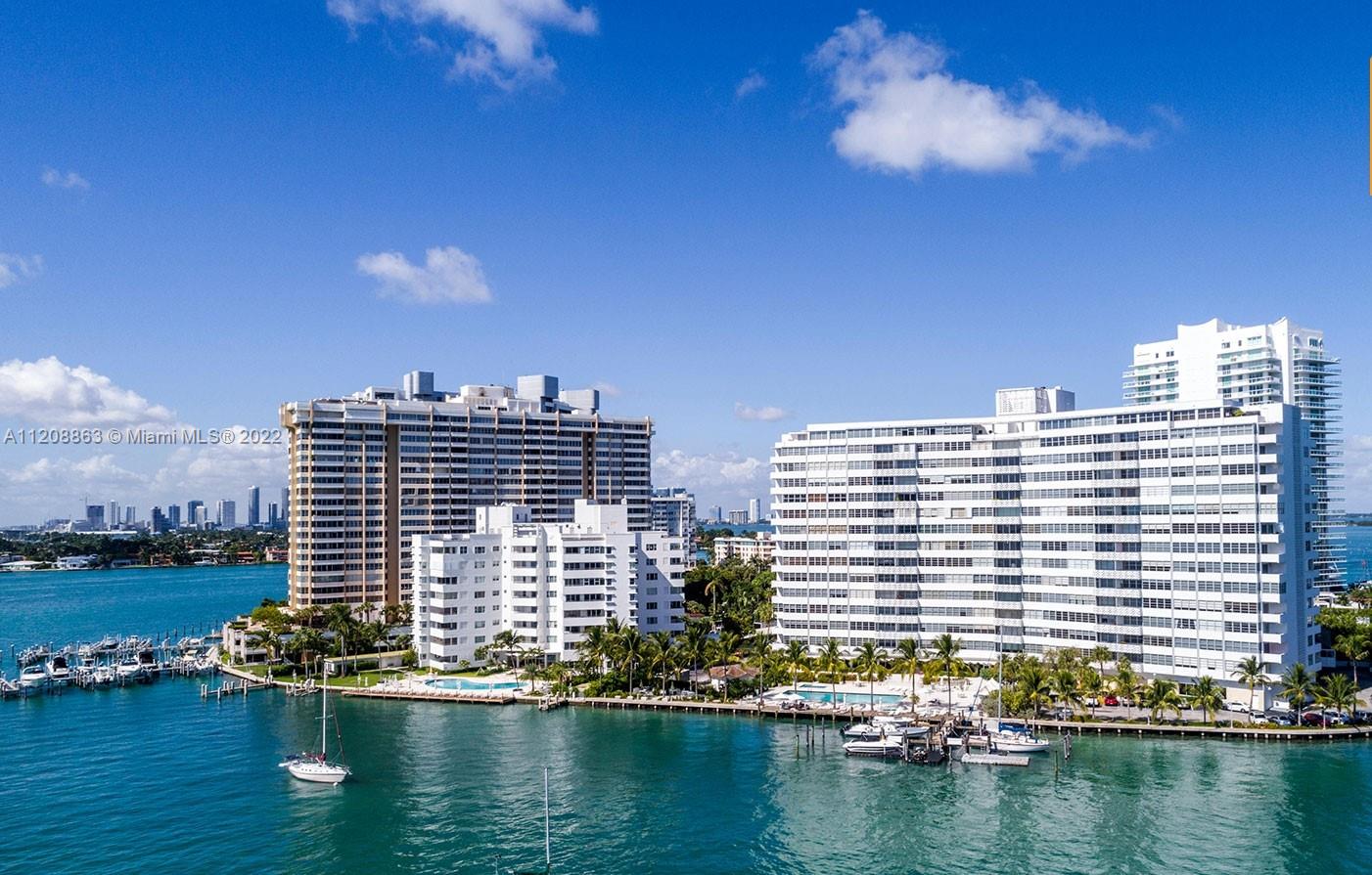 Revel in this highly desirable northeast corner apartment with striking bay and city views located on Belle Isle, the easternmost island of the coveted Venetian Islands. This private Belle Plaza unit affords 2 bedrooms, 2 bathrooms, bamboo floors, and gourmet kitchen with stainless steel appliances. Upgrades include high-impact, UV and fade protection windows, terrazzo walls and penny tile floors in both bathrooms. Built in 1962, Belle Plaza has been beautifully restored maintaining its Mid-century modern design while offering modern conveniences such as full-service amenities that include pool, hot tub, boat dock, BBQ areas, tennis court, gym, valet, and 24-hour front desk attendant. Just steps away from The Standard Spa, Sunset Harbour, and Lincoln Road.