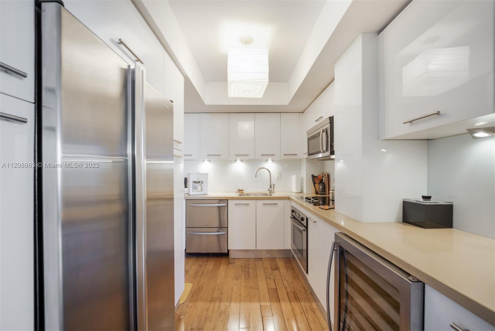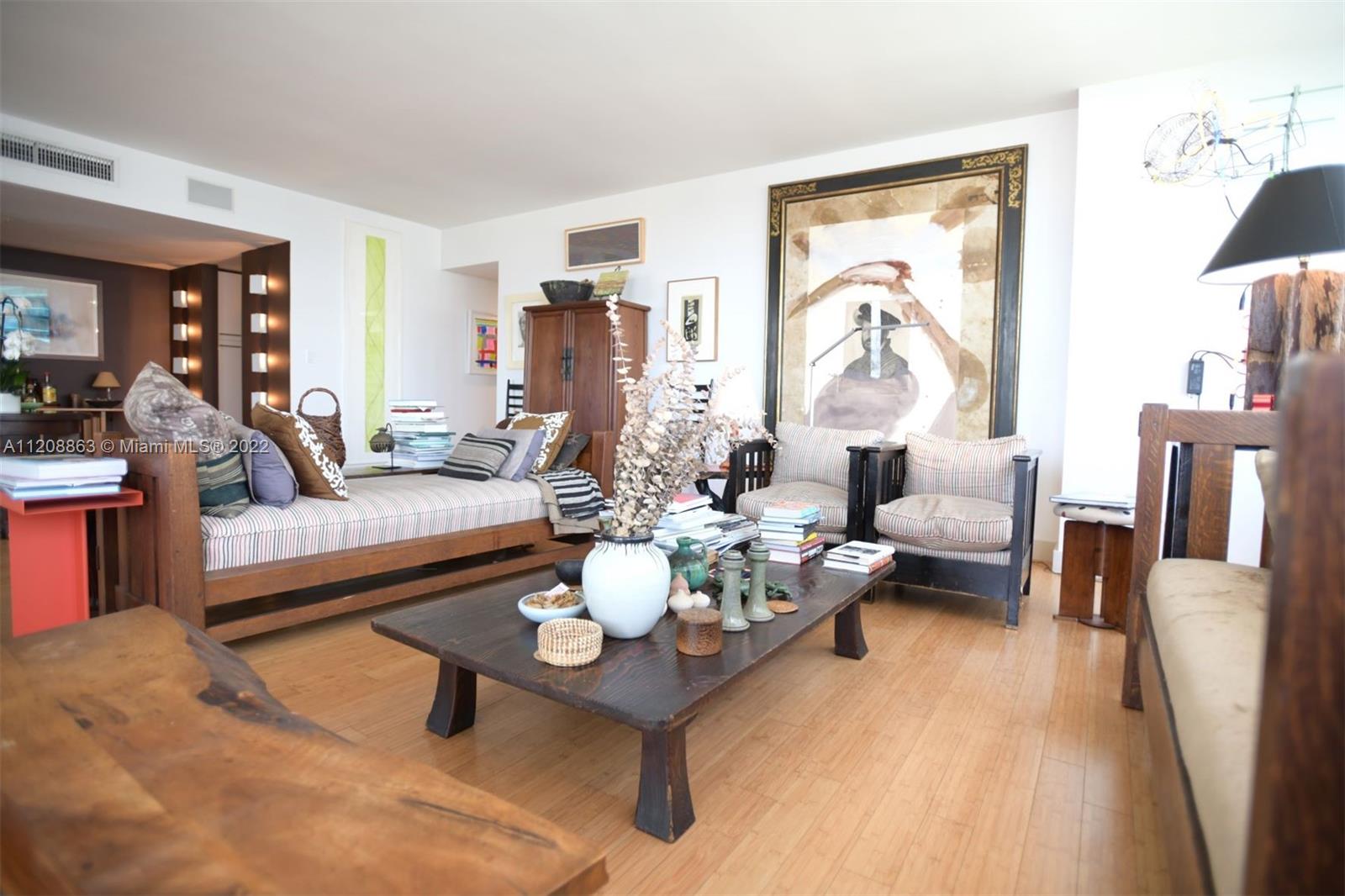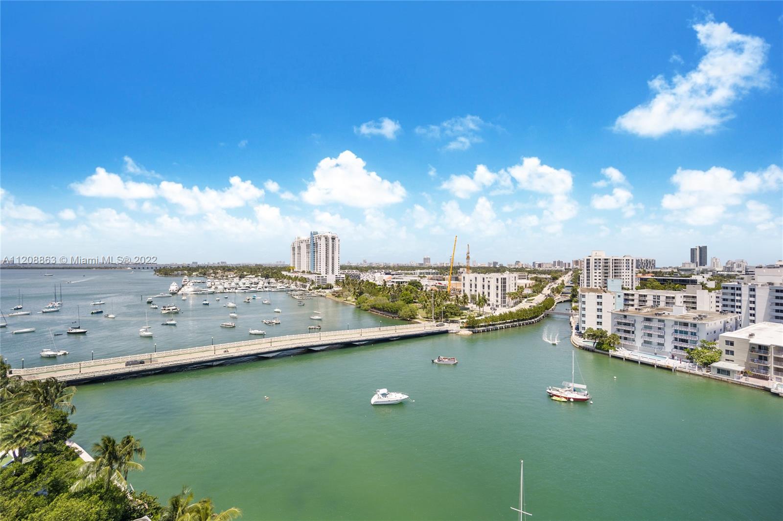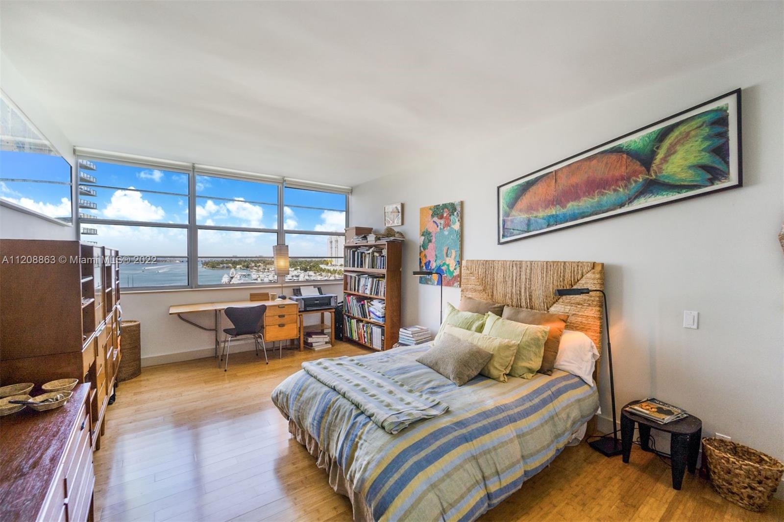 Revel in this highly desirable northeast corner apartment with striking bay and city views located on Belle Isle, the easternmost island of the coveted Venetian Islands. This private Belle Plaza unit affords 2 bedrooms, 2 bathrooms, bamboo floors, and gourmet kitchen with stainless steel appliances. Upgrades include high-impact, UV and fade protection windows, terrazzo walls and penny tile floors in both bathrooms. Built in 1962, Belle Plaza has been beautifully restored maintaining its Mid-century modern design while offering modern conveniences such as full-service amenities that include pool, hot tub, boat dock, BBQ areas, tennis court, gym, valet, and 24-hour front desk attendant. Just steps away from The Standard Spa, Sunset Harbour, and Lincoln Road.