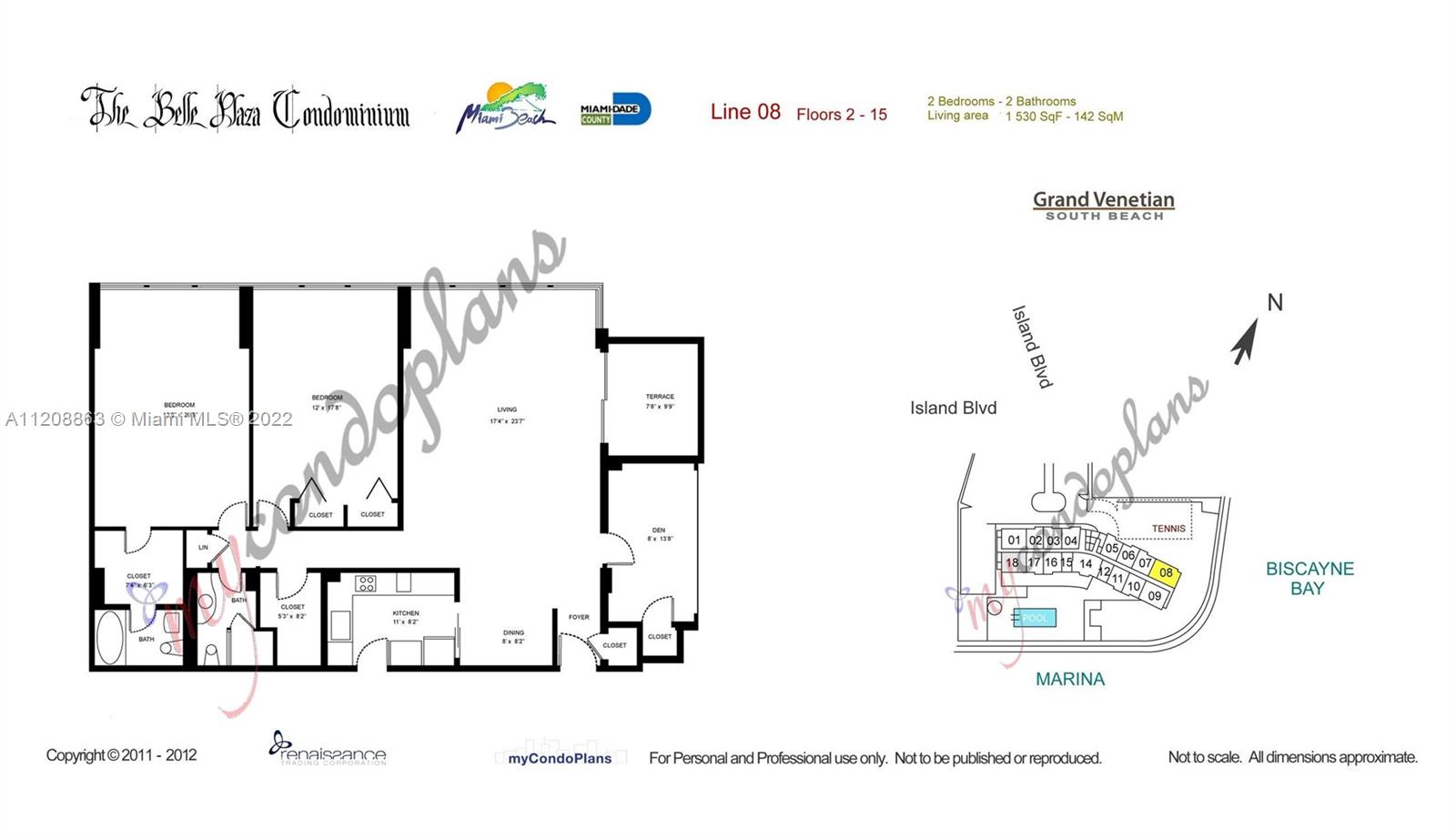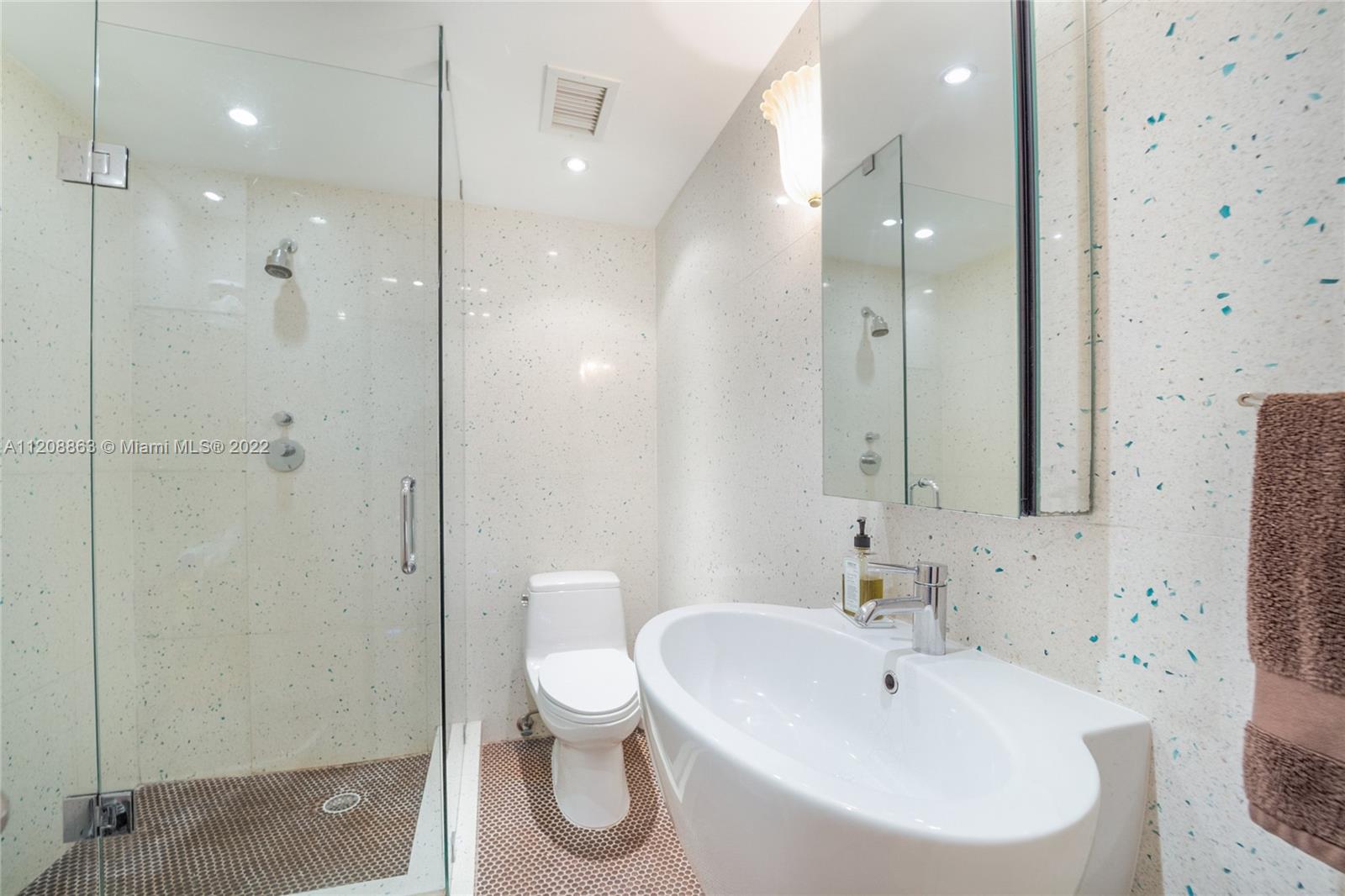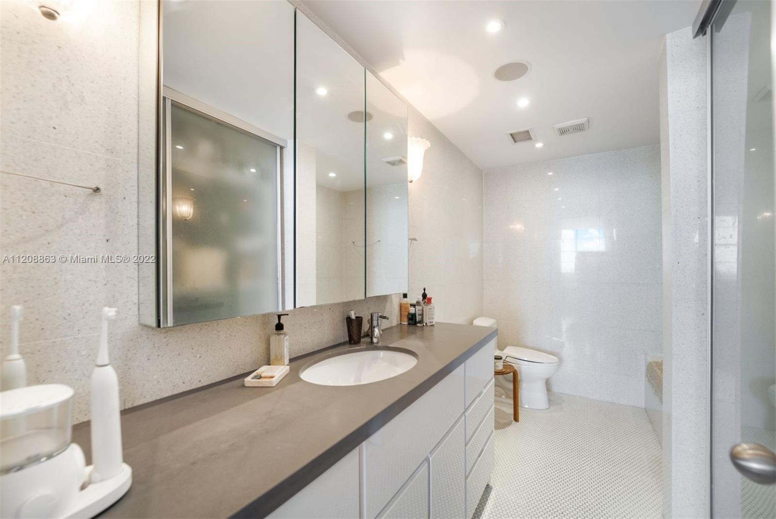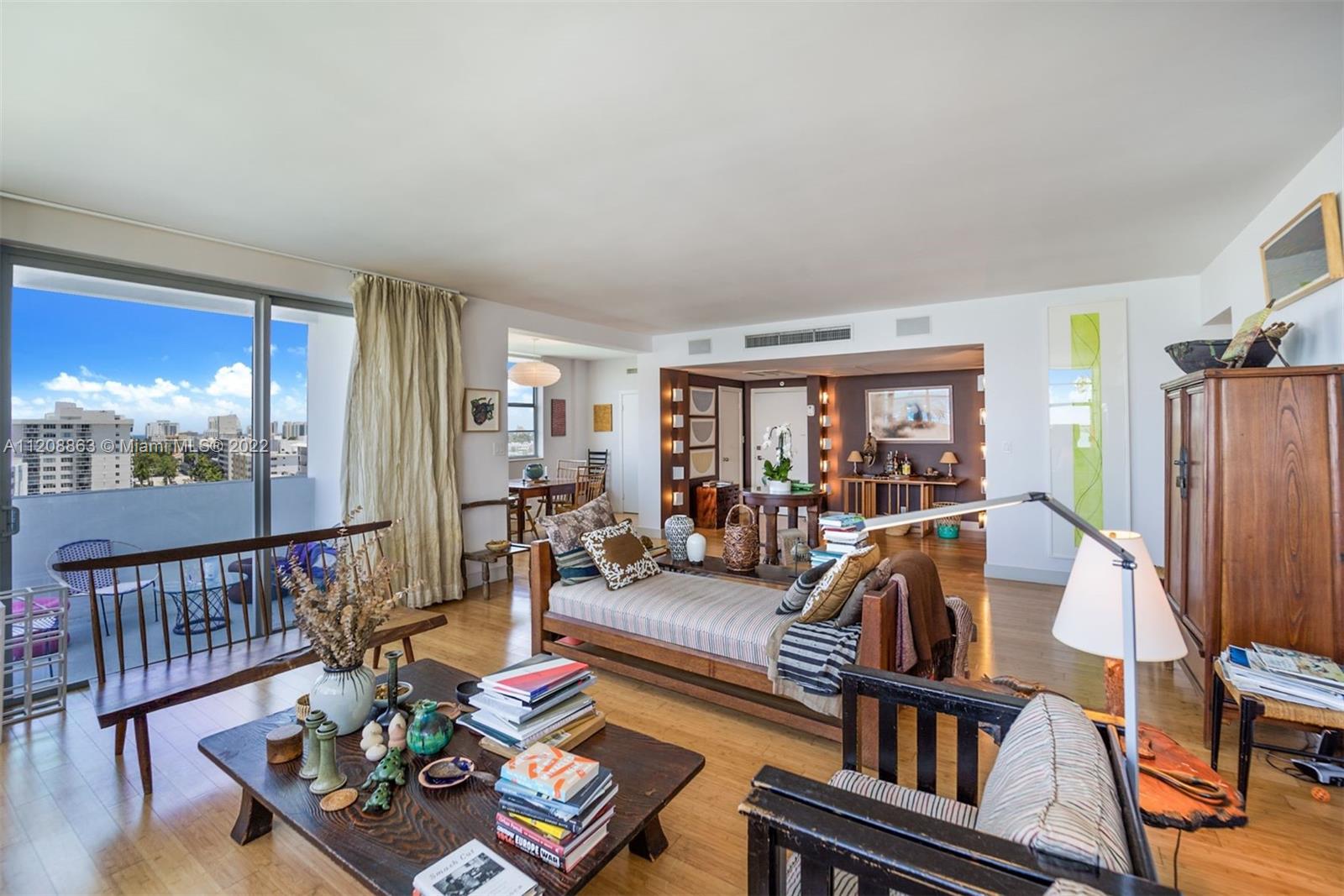 Revel in this highly desirable northeast corner apartment with striking bay and city views located on Belle Isle, the easternmost island of the coveted Venetian Islands. This private Belle Plaza unit affords 2 bedrooms, 2 bathrooms, bamboo floors, and gourmet kitchen with stainless steel appliances. Upgrades include high-impact, UV and fade protection windows, terrazzo walls and penny tile floors in both bathrooms. Built in 1962, Belle Plaza has been beautifully restored maintaining its Mid-century modern design while offering modern conveniences such as full-service amenities that include pool, hot tub, boat dock, BBQ areas, tennis court, gym, valet, and 24-hour front desk attendant. Just steps away from The Standard Spa, Sunset Harbour, and Lincoln Road.