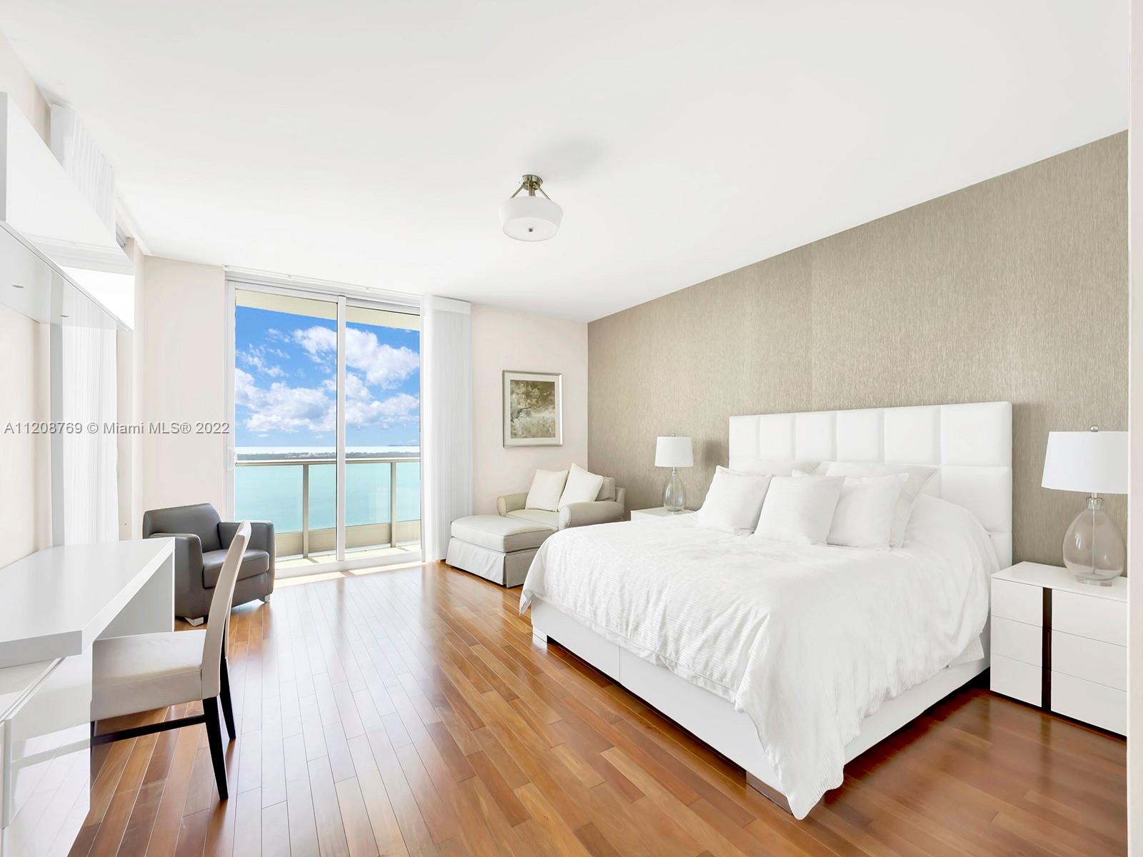 Fabulous flow through residence with expansive Biscayne Bay and ocean views to the east and Brickell skyline views to the north and west. Sunrise and sunset terraces. Master bedroom with sitting area and his/hers everything (walk-in closets, bathroom vanities, water closets). All other bedrooms with bathrooms ensuite. Private elevator opening to foyer entrance. Kitchen with breakfast area and family room beside. Living and dining surrounded by water views. Laundry room with substantial storage space plus extra storage unit under AC in building. Three parking spaces. A really comfortable residence to call your home!