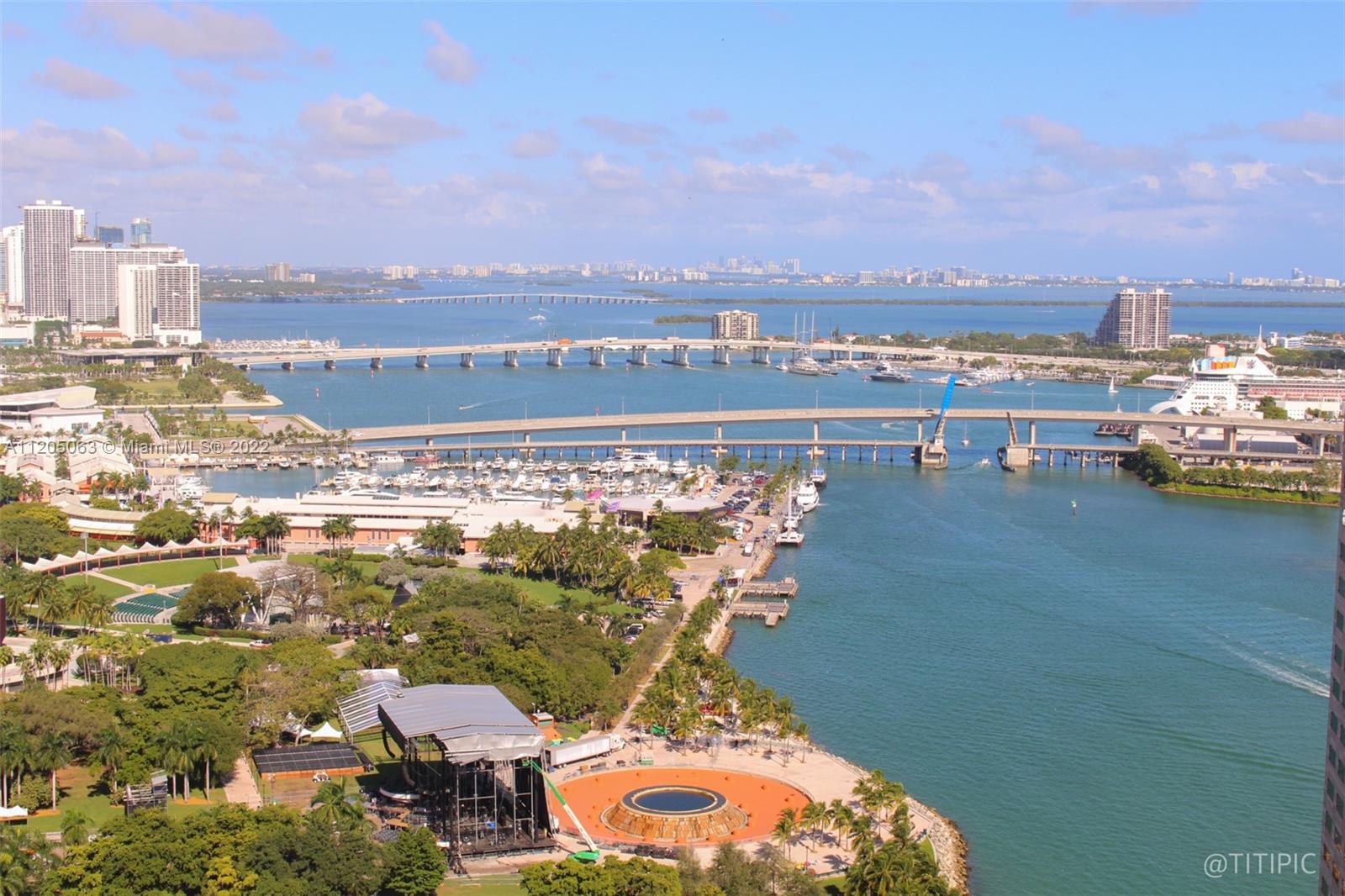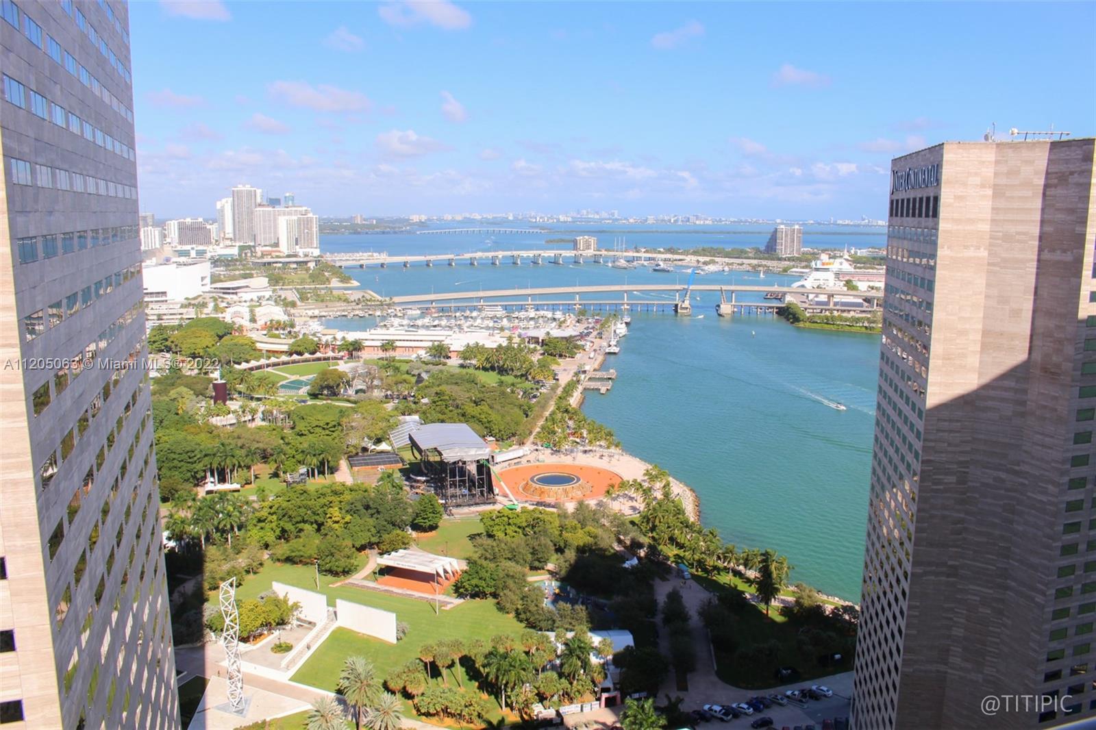2 bedroom, 2 bathroom corner unit with views of Biscayne Bay and Bayfront Park. Amenities includes gym, pool, restaurant, jacuzzi, spa, sundeck, convenience store, concierge, valet & party room. One parking spot included in attached garage, second car available for valet (for monthly fee). HOA includes water, high-speed internet, DIRECTV. UNIT IS SOLD AS IS. Showings by appointment. This property allows monthly rental. Vacant property