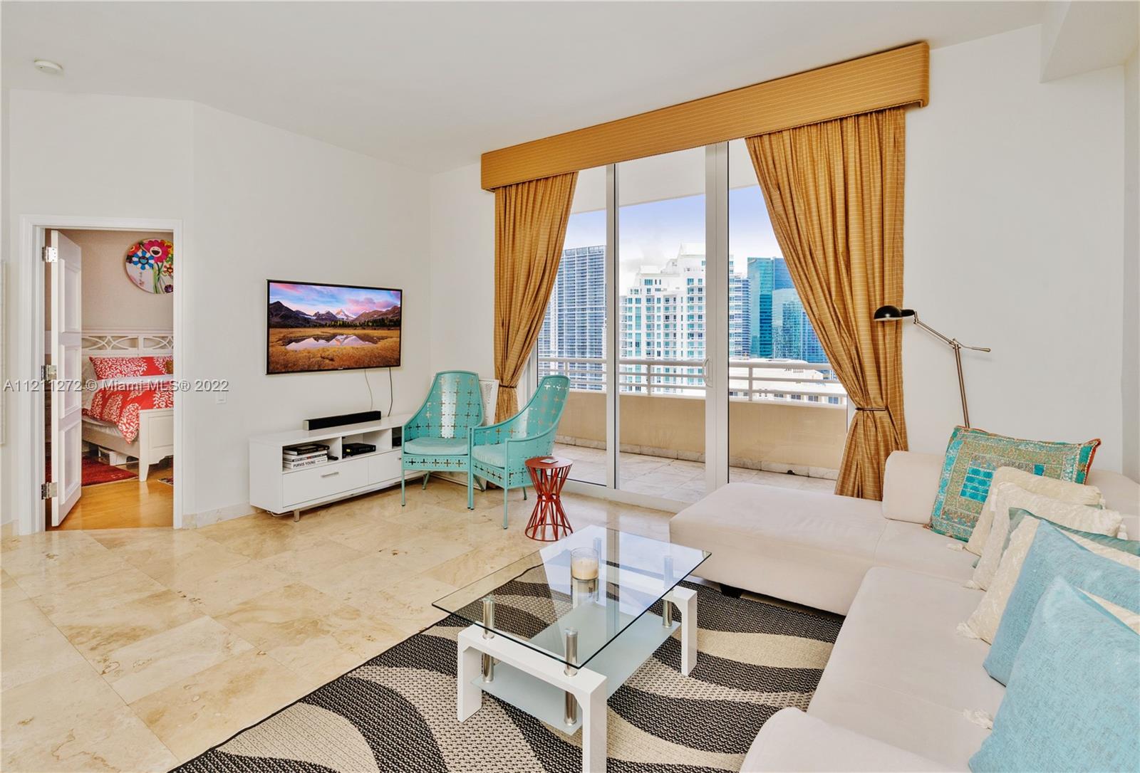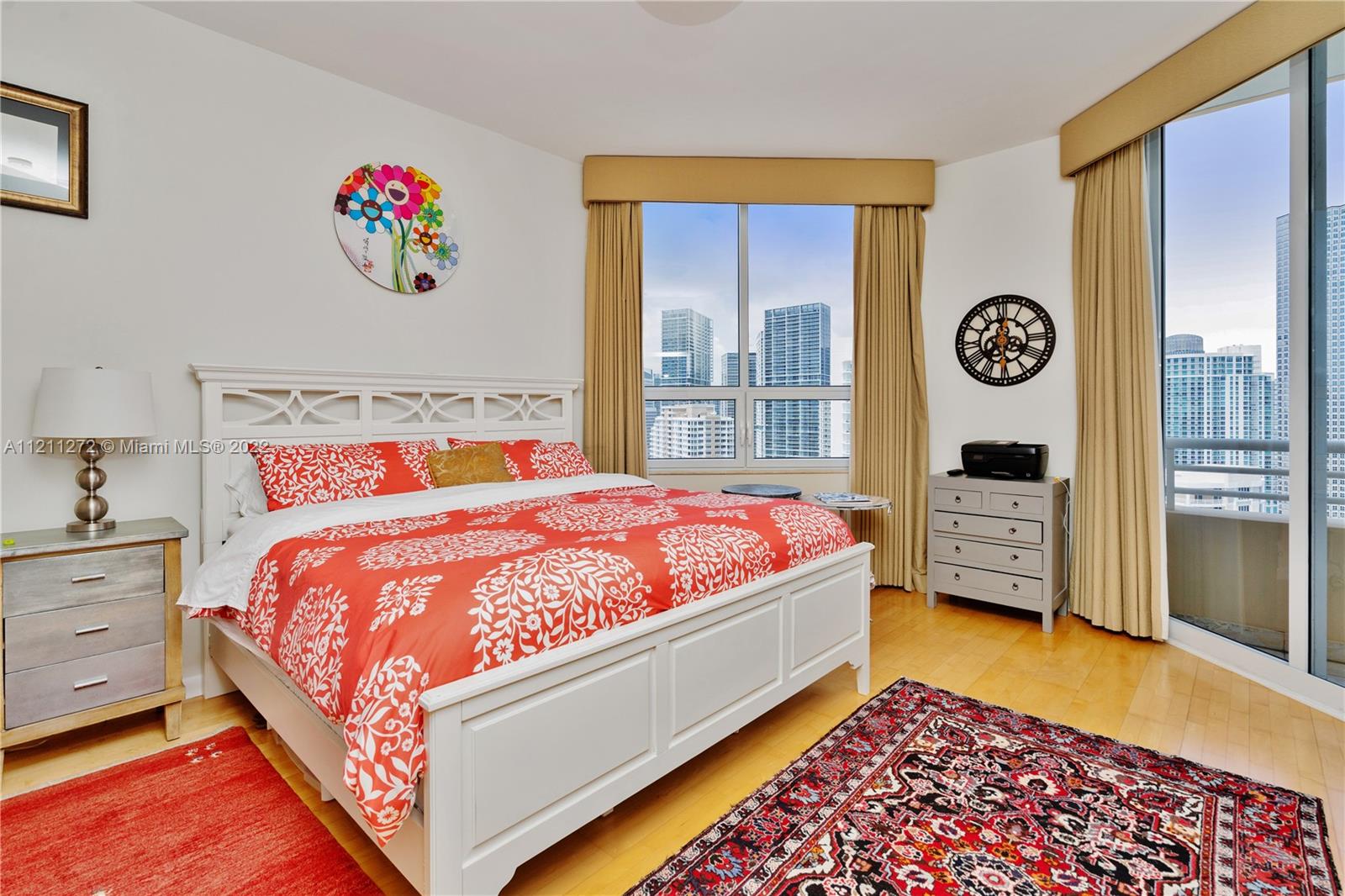 Come see this rare 35th floor 1 bedroom 1 & 1/2 bathroom 907 sq/ft. unit at Two Tequesta Point on the exclusive Brickell Key. The unit has extra high ceilings and stunning city/bay views. It comes with a Stainless Steel Fridge/dishwasher, marble/wood flooring throughout, an open kitchen, a nice sized balcony, plenty of storage, a walk-in closet, and a large master bedroom with beautiful views and balcony access. Two Tequesta is a luxury condo with a state of the art fitness center (w/ racquetball, basketball, cross-fit, massage & aerobics areas), an updated lobby, BBQ's/outdoor kitchen, a playroom, tennis, 2 conference rooms, free valet, 24/7 security, and a new clubroom for parties.