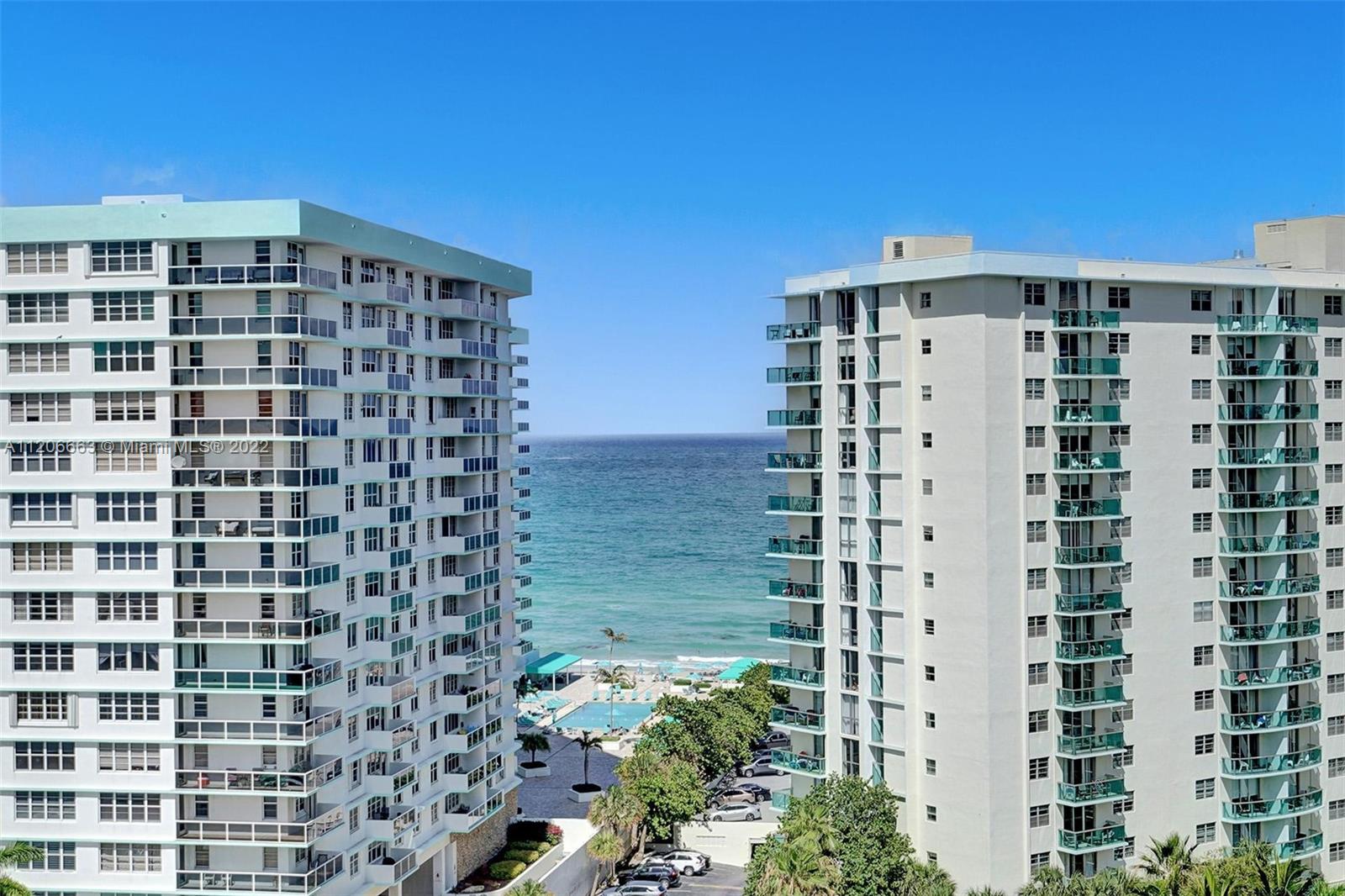 RARE OPPORTUNITY TO OWN IN THE HALLMARK HOLLYWOOD, ACROSS THE STREET FROM THE PRISTINE ATLANTIC OCEAN AND BEAUTIFUL HOLLYWOOD BEACH. CONDO 2 BEDROOM 2 BATHS WITH DIRECT OCEAN VIEW, UPDATED KITCHEN, AND BATHROOMS, CERAMIC FLOORING THROUGHOUT, IMPACT WINDOWS AND SLIDING DOOR, SHUTTERS, GLASS BALCONY, 1 PARKING IN THE GARAGE. THE 2ND BEDROOM IS CURRENTLY USED AS A DEN/FAMILY ROOM AND OPENS TO THE LIVING ROOM. SOLD FURNISHED AS-IS.