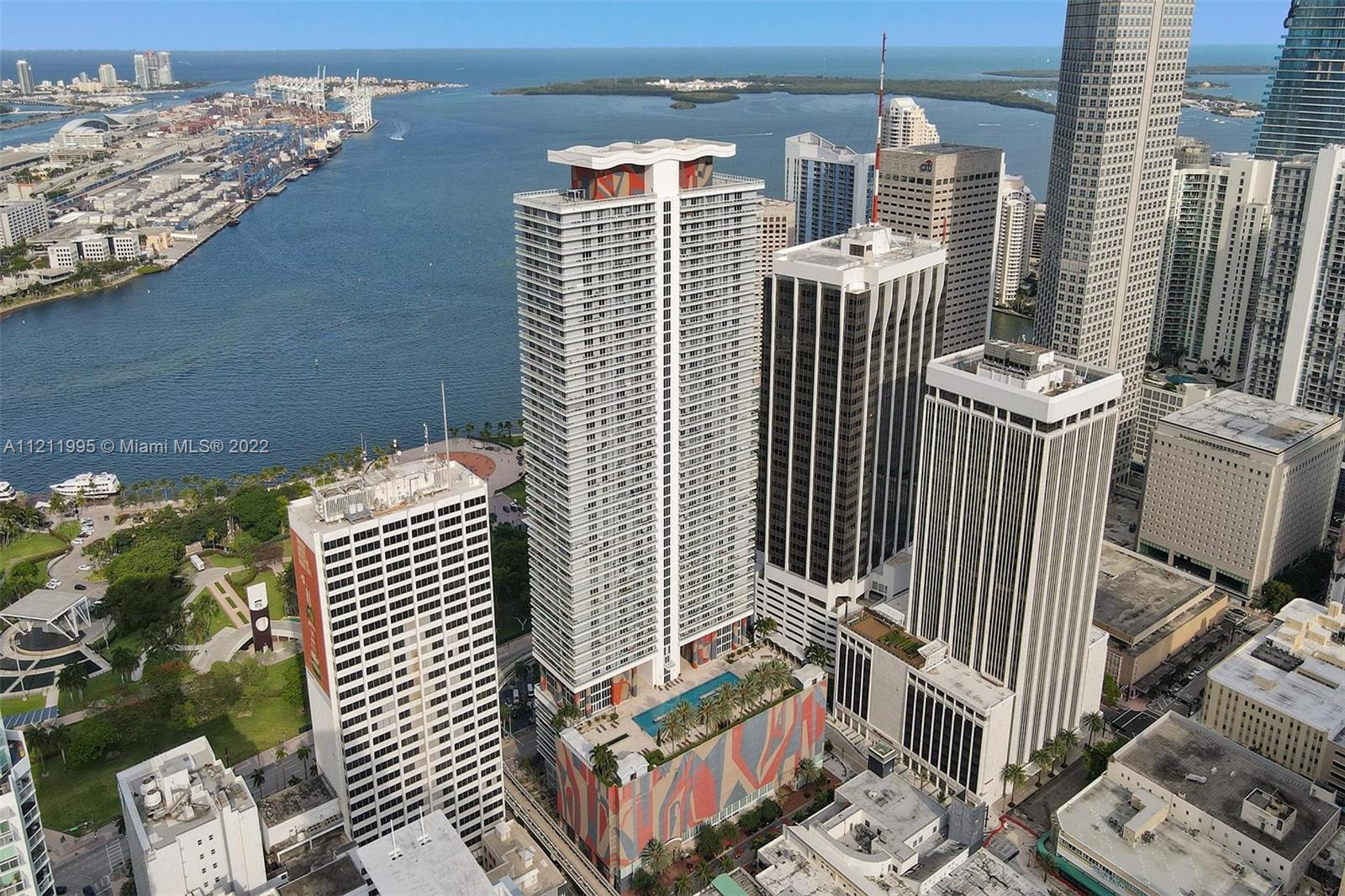Priced to sell fast! Spacious studio located on the 46th floor of 50 Biscayne with the most beautiful sunset views and Miami Skyline from this modern building. Private balcony with floor to ceiling impact resistant windows. Located in the heart of Downtown Miami just steps away from the best restaurants in town, walking distance to Brickell Avenue, office buildings and shops. Full service building, with all the nice amenities, great pool area with cabanas, complete gym, sauna, steam room and much more. Tenant Occupied until July 31st, easy to remove carpet floors and ready to install new floors.