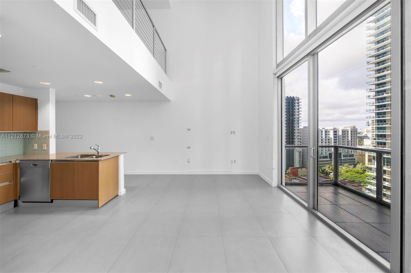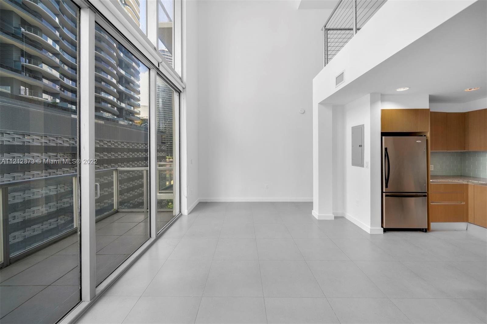 This spacious open concept 1 bedroom/1.5 bathroom two-level loft boasts 1128 sqft, modern gray porcelain throughout the unit, soaring high ceilings and floor to ceiling glass windows that offer a beautiful view of the Miami sunset. The kitchen is modern and stylish, with stainless steel appliances, Italian style custom designed cabinetry, granite countertops, turquoise subway tile backsplash and a very charming and functional layout. Ideally located within walking distance to Mary Brickell Village, the Metrorail station and just minutes to Coconut Grove, South Beach, the Miami International Airport and the I95.