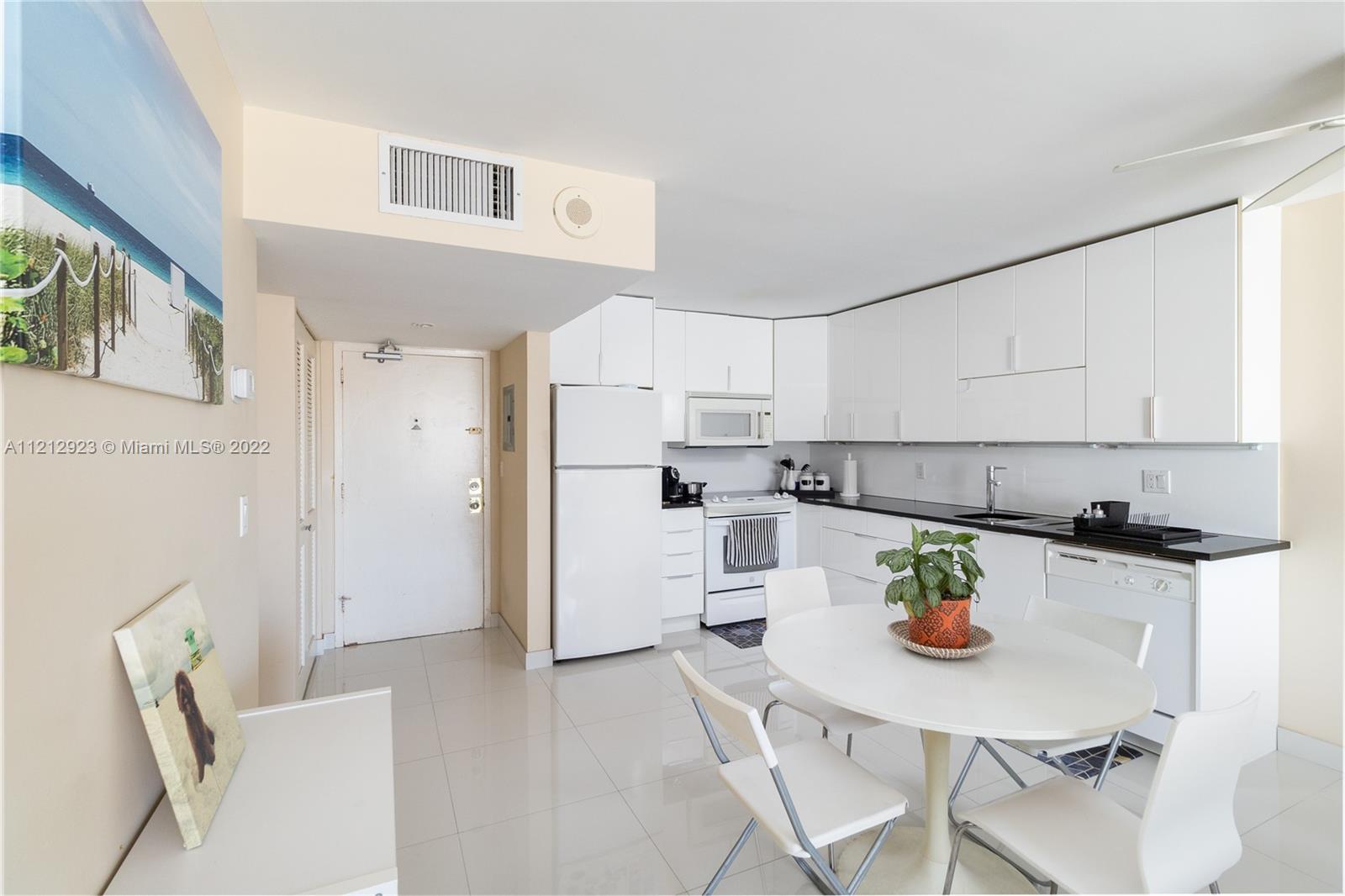 Beautiful ocean views from this attractively renovated 1 bedroom 1 bathroom condo with oversized balcony in oceanfront South of Fifth Street location on the sand. Great quality and design- your perfect beach home: Modern white porcelain floors throughout, bright open kitchen with white cabinetry and granite countertops, redesigned bathroom w/large shower w/glass doors, impact windows, smoothed ceilings and more. All in the best south beach location on the ocean with heated pool and low monthly fees that include cable, internet, 24 hr security, oceanfront community room etc. Perfect home or investment. Available with or without great long-term tenant. (The unit next door is currently for sale- an opportunity to purchase units side by side and combine).