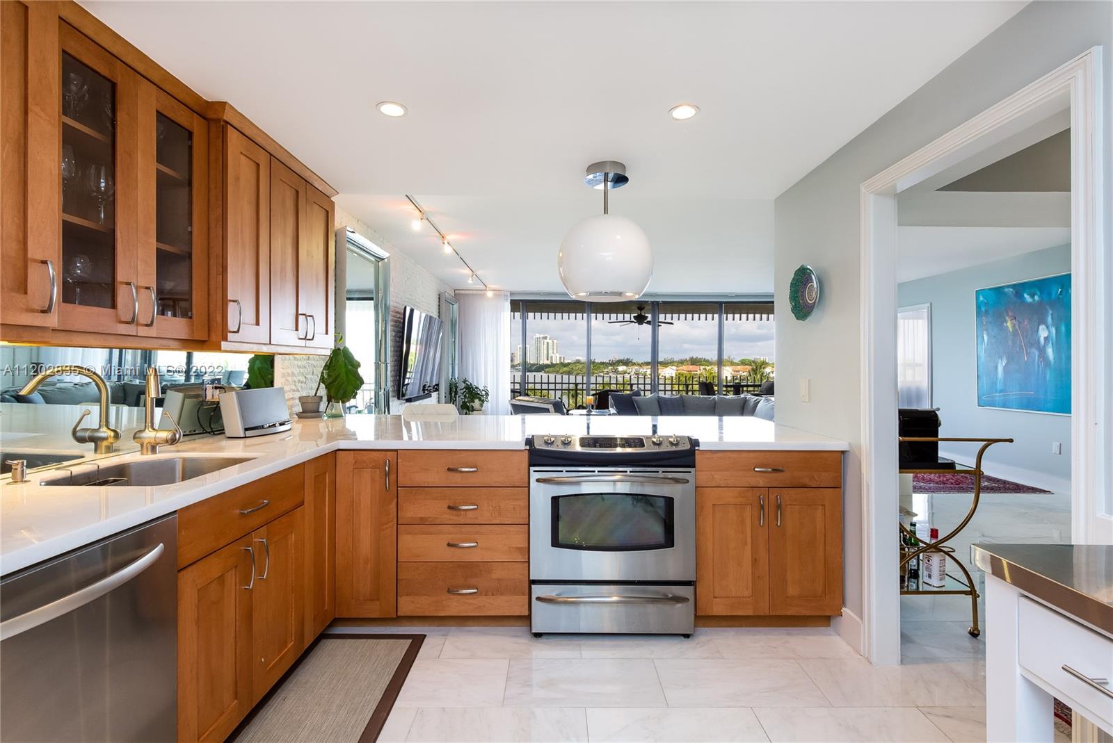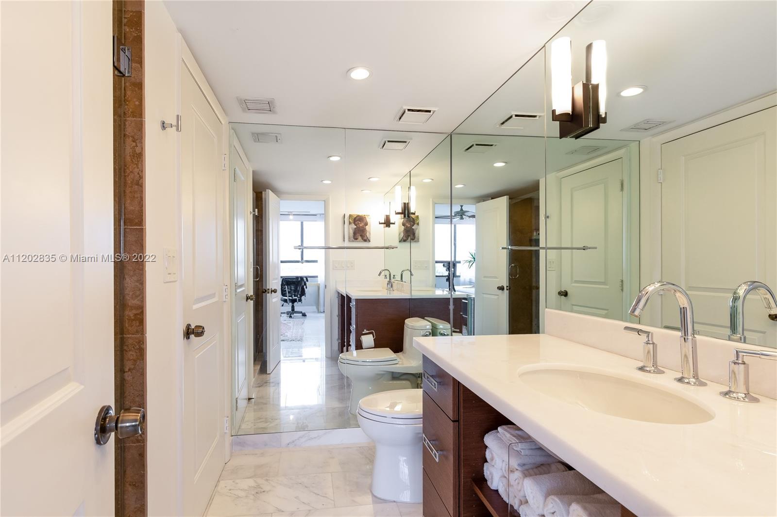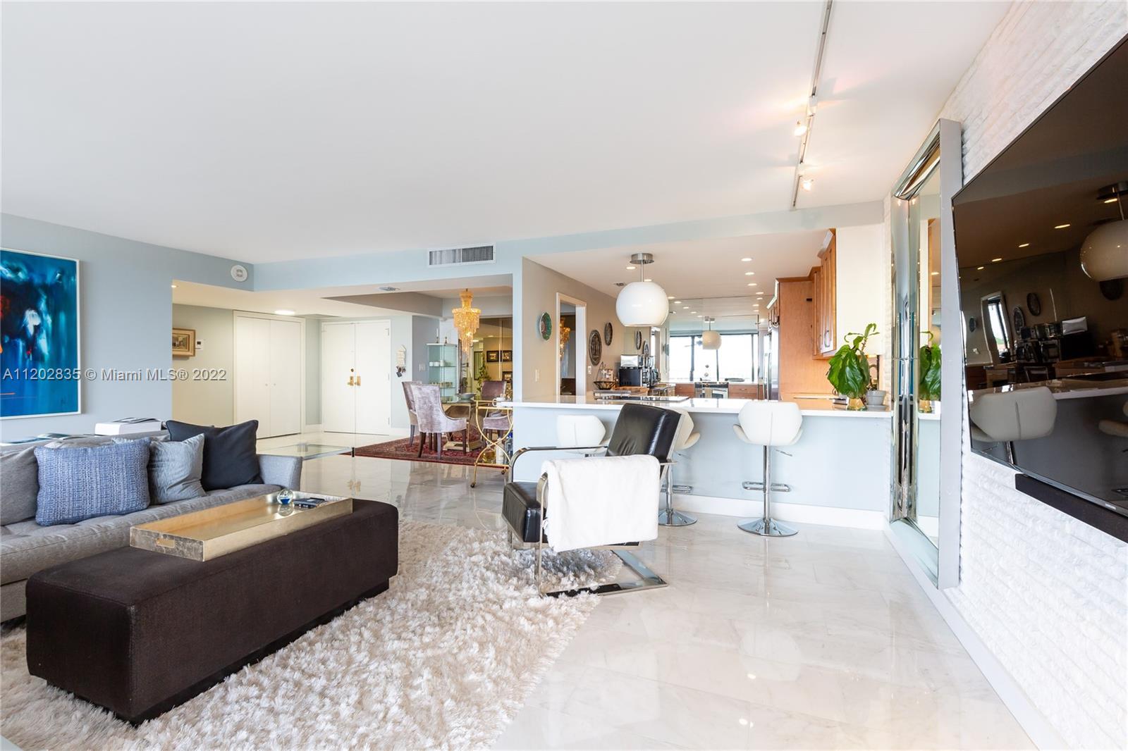 Step through the double front doors to this spacious and naturally lit condo in the exclusive and desirable Grove Isle community. The first thing you see is the serene view of the bay and Coconut Grove as you look beyond the spacious balcony. Details of the home include new marble flooring throughout, open layout kitchen with quartz counter tops, track lighting, electric blackout blinds + sheer decorative curtains, built out walk-in closets and updated bathrooms with white quartz counter-tops. Grove Isle's amenities include: walking/jogging path surrounding the island, multiple pools, beach to relax or launch your paddle board, dog park, playground, tennis court, boat marina + more! Come escape to this resort lifestyle!