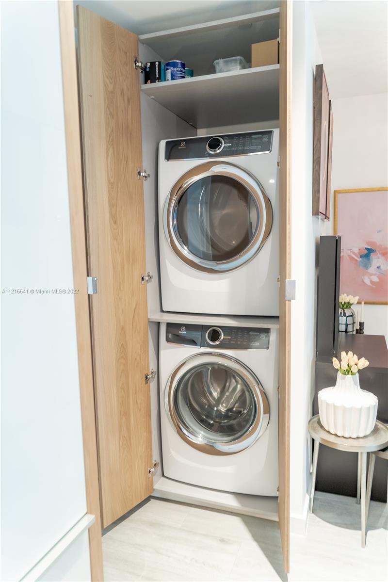 1 bedroom plus den, 1 full bath unit located in the lavish Club Residences at Park Grove. This unit is equipped with a European inspired kitchen entailing Sub-Zero and Wolf appliances, Italkraft cabinetry, gas cooktop, marble countertop with mirrored backsplash, double bathroom vanity with backlit mirror, walk-in shower, Italian porcelain flooring throughout, blackout shades, and a private terrace with glass walls overlooking lush greenery. One reserved, garaged parking space. Experience five-star amenities; rooftop pool deck, cabanas, BBQ pavilions, movie theater, fitness centers, spa, on-site restaurant, business center, children’s play area, and more. 24-hour concierge, valet, and security.