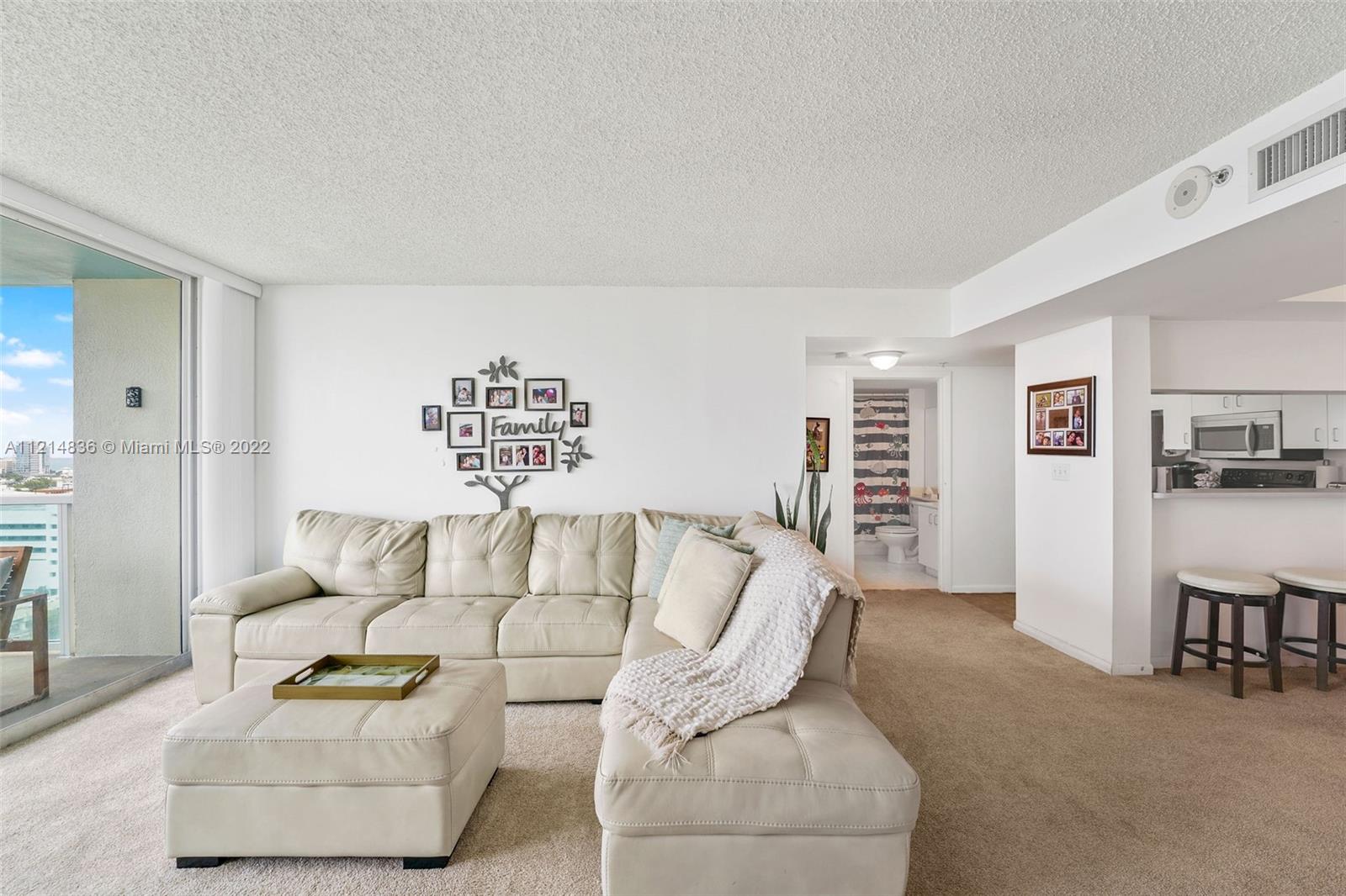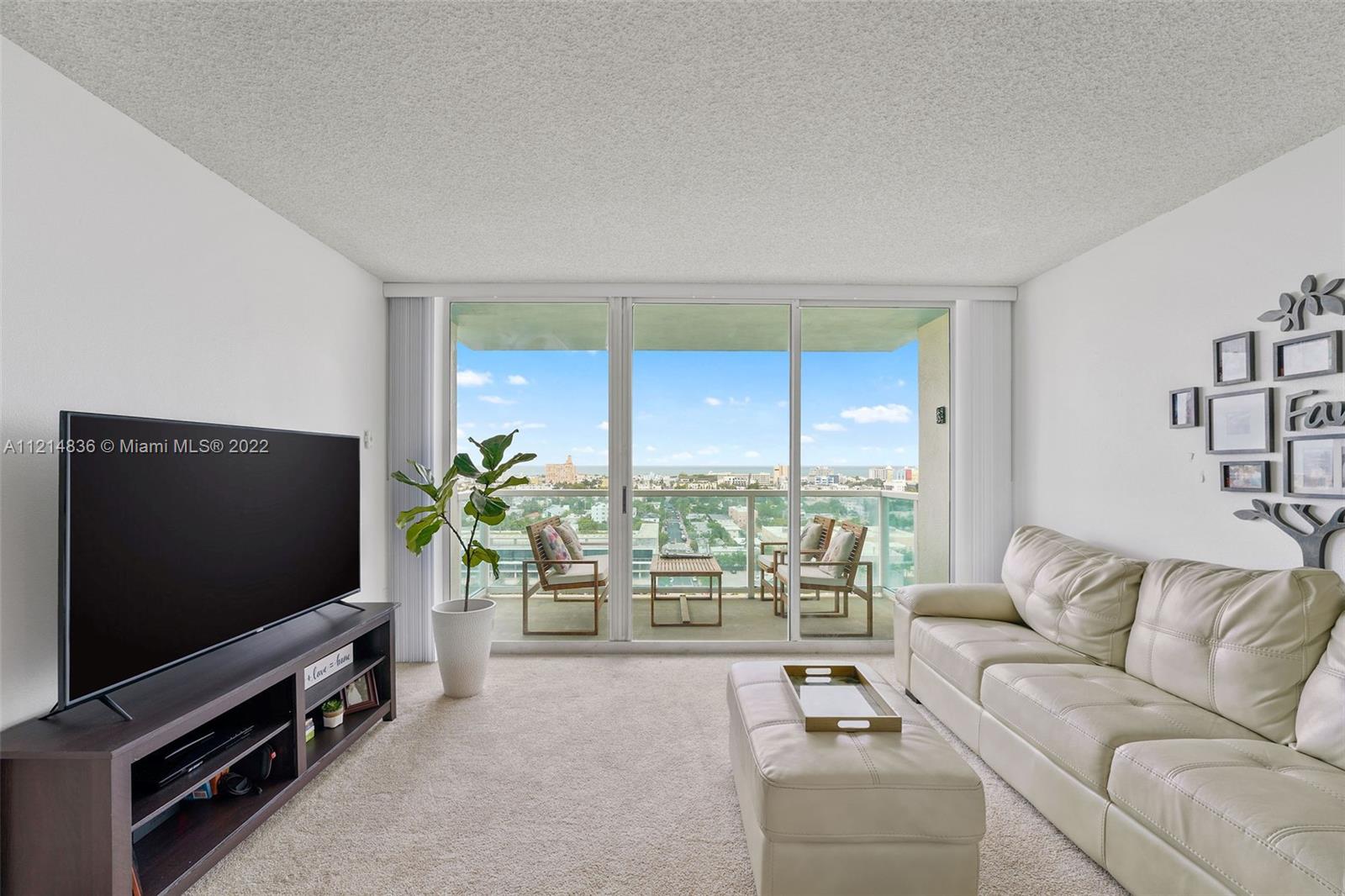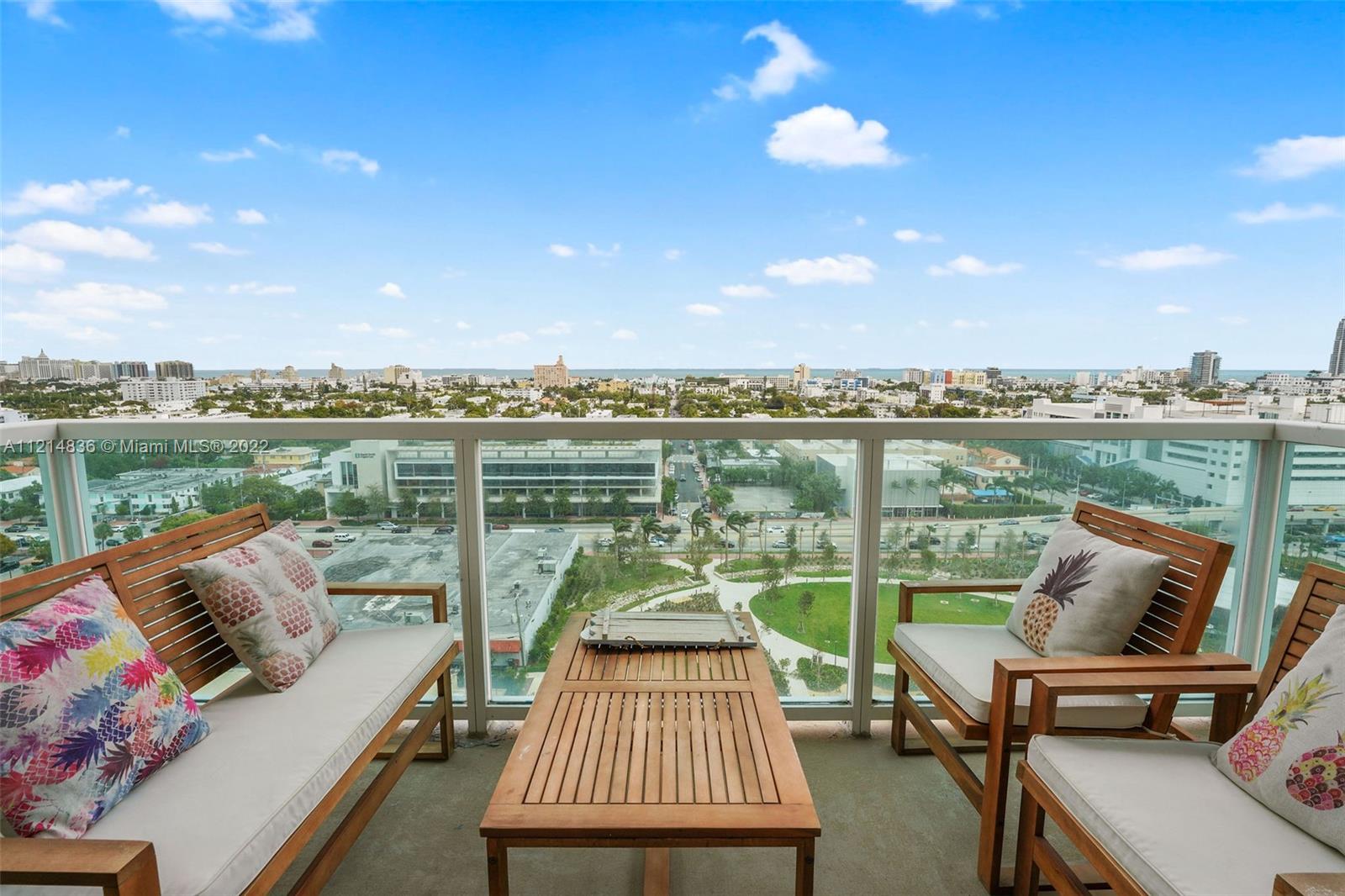 Bayfront in South Beach. Great opportunity at The Floridian to purchase a 2 bedroom, 2 bathroom. 1,225 SqFt. Delight in beautiful views of the sunrise, Ocean, South Beach and Canopy Park (the new park of West Ave). Unit is in original condition and features a split floor plan, balcony, kitchen bar, separate dining space, living area, ample closet space, abundant lot, in unit washer and dryer and an assigned spot in the garage. The Floridian is a well managed and full service building with 5 star amenities.