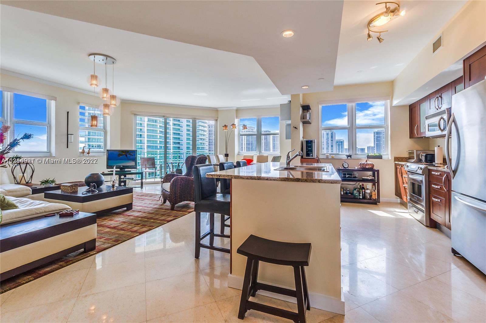 Exceptional location E. Country Club Dr, on famous Turnberry Isles Golf course with breathtaking views to the Ocean and Marina. This spacious 3-bedrooms flat comes with Marble & laminated Wood floors, SS appliances, Granite & Marble counter tops with solid wood cabinetry, built-ins closets, 2 side-by-side parking spaces plus storage unit. The building offers superb resident services like Valet, 24/7 Front Desk, Fitness Center with Sauna, Yoga & Cycling studio, Business Center, Club house with Pool tables, Catering kitchen and a Formal large dining room area, BBQ area, Pool with spacious Sun deck, Kids & Teen playground. A short ride to the Beach, bike or walk to all conveniences, City Parks, house of worships, restaurants, A+ Charter School, Aventura Mall Shopping. Live, Play & Work!