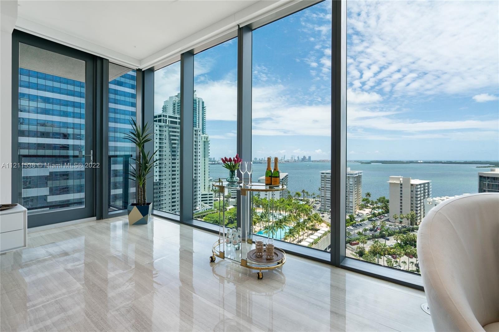 Welcome home to Brickell’s most exclusive resort style building. Walk inside this immaculate and pristine coveted 01 line corner unit with open bay and city views. This 2 bedroom/2.5 bathroom unit is turnkey (furniture negotiable) with upgrades such as electric blinds throughout, built-in closets, LED ceiling lighting with dimmers, Haiku Smart ceiling fans, alarm system, and Wolf/Subzero appliances. Enjoy serene and stunning sunrises and sunsets from their beautiful expansive pool deck with infinity Edge pool, BBQ, State of the art gym and 24hr concierge, security and valet and extensive services from the ease of your Echo app. Brickell’s hottest boutique gem!