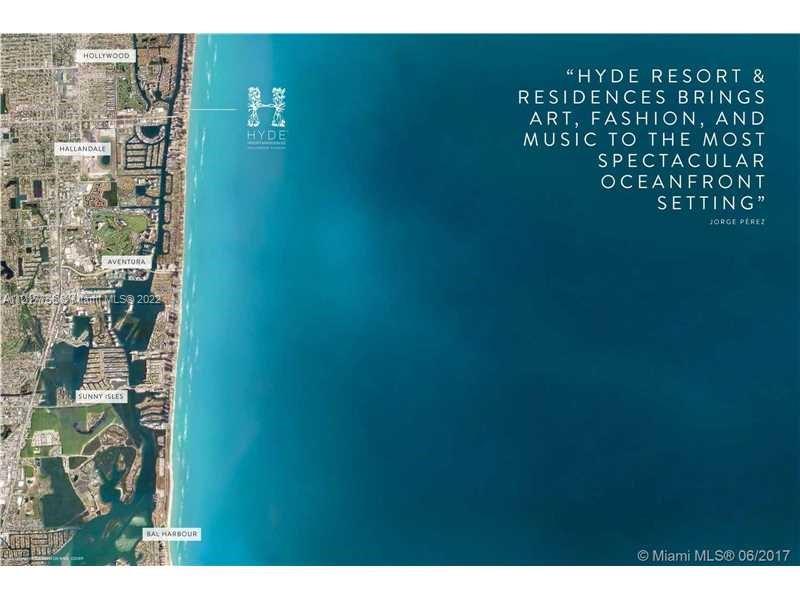 Stunning fully finished and furnished 1 Bedroom/ 1 Bath corner unit with direct ocean view. Wraparound balcony overlooking the Hyde Club House. 11 Ft ceilings, top of the line appliances and finishes. Unit can be rented daily, weekly, and monthly for a maximum of 150 days/year. Amenities will include an infinity-edge ocean view pool, room service to all units, a state-of-the-art fitness center and cardio theater overlooking the ocean and a beach club with pool, spa services and oceanfront restaurant.