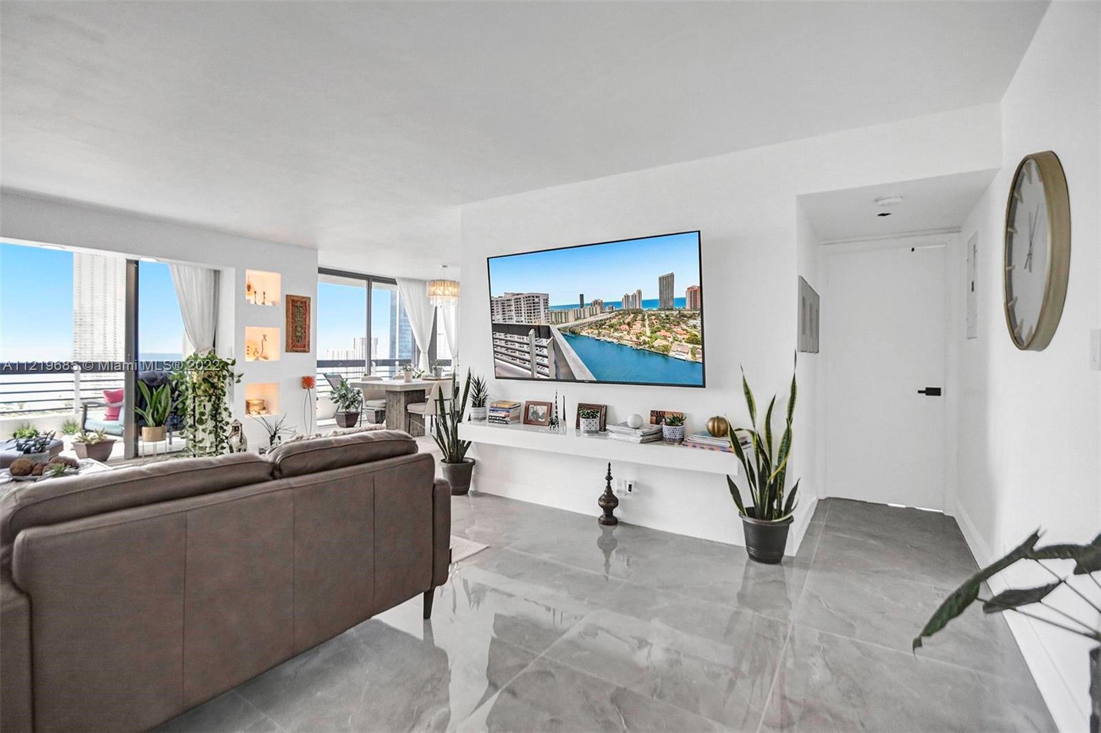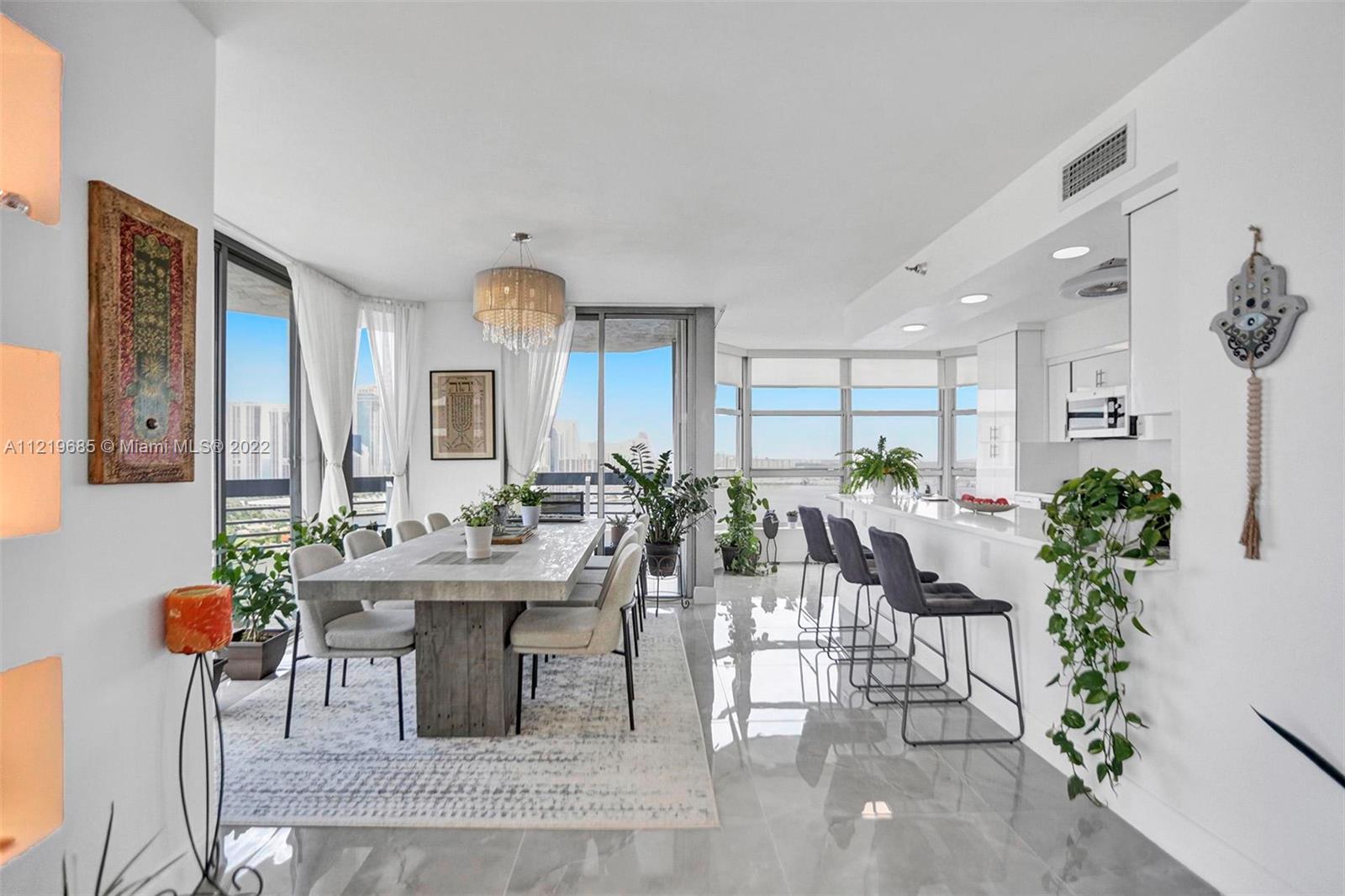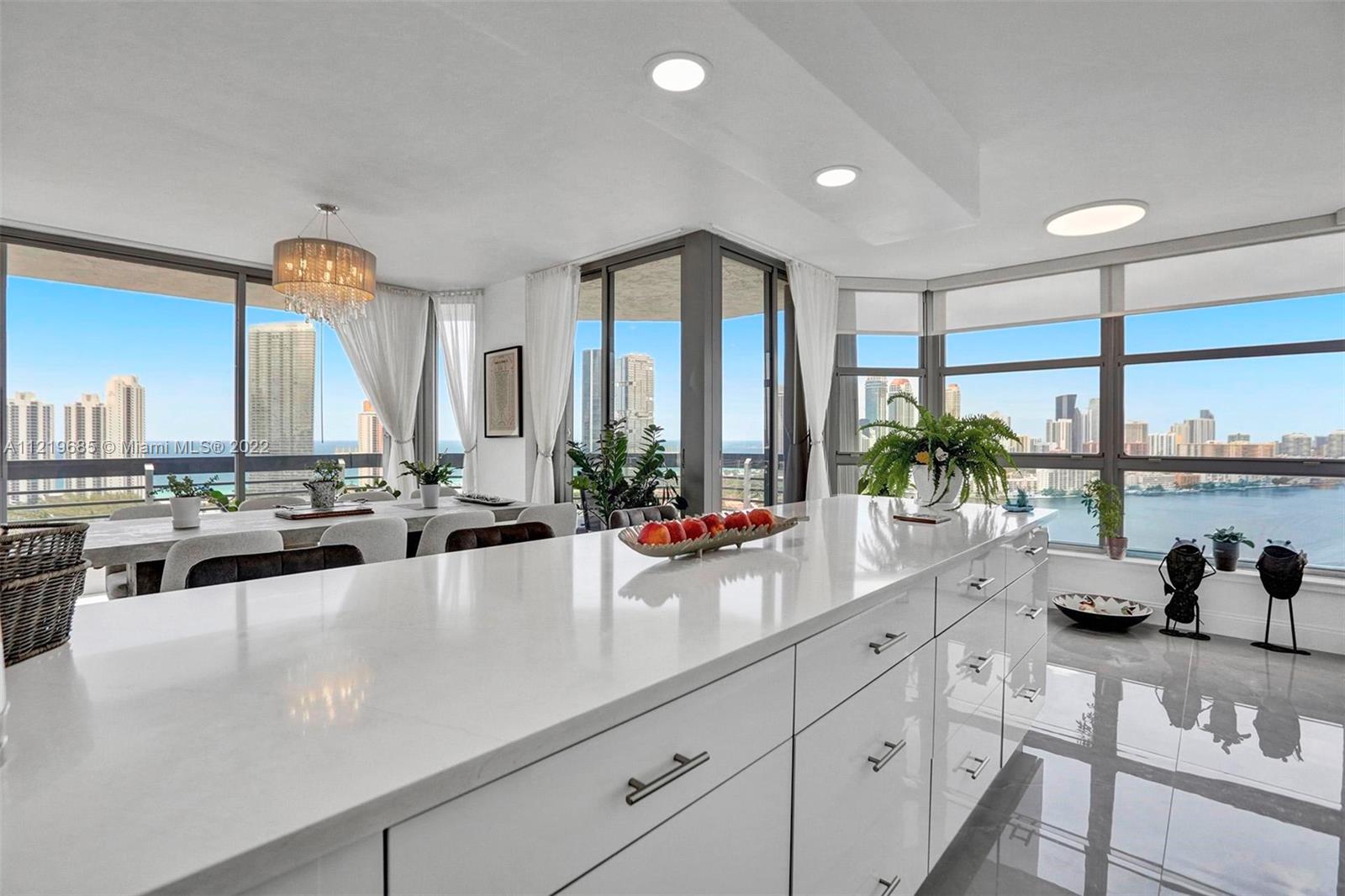 South Florida living at its finest! Located in Mystic Pointe’s premier Tower 200. 28th-floor corner unit with breathtaking ocean and bay views. Spacious 3 bedroom, 3 full bathroom apartment with wraparound balcony. Renovated from top to bottom in 2021. Large-format porcelain-tile floors throughout. Split floor plan with a large living room and a separate dining area. Open kitchen with large island, custom wood cabinets, and quartz countertops. The apartment comes with 1 covered parking space (additional spaces available from HOA with a very low monthly payment). Mystic Pointe is a private and secure gated community, and the building features a full-time concierge, an outdoor pool/hot tub, a fitness center, and much more!