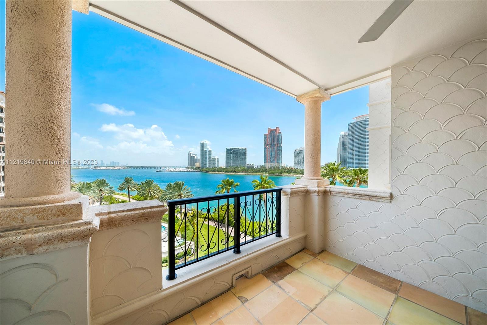Experience Fisher Island living in this stunning oceanside unit located in Villa del Mare! Features include expansive wrap around terraces with unobstructed 180 degrees of beautiful views of the ocean, Miami Beach and Government Cut from a 5th floor. This pristine 3 Bedroom, 3.5 Bath residence encompasses 3,140 sq ft interior, marble floors throughout, custom bar, top of the line appliances, private terrace in the master bedroom and guest bedroom and many more features. Easy to show!