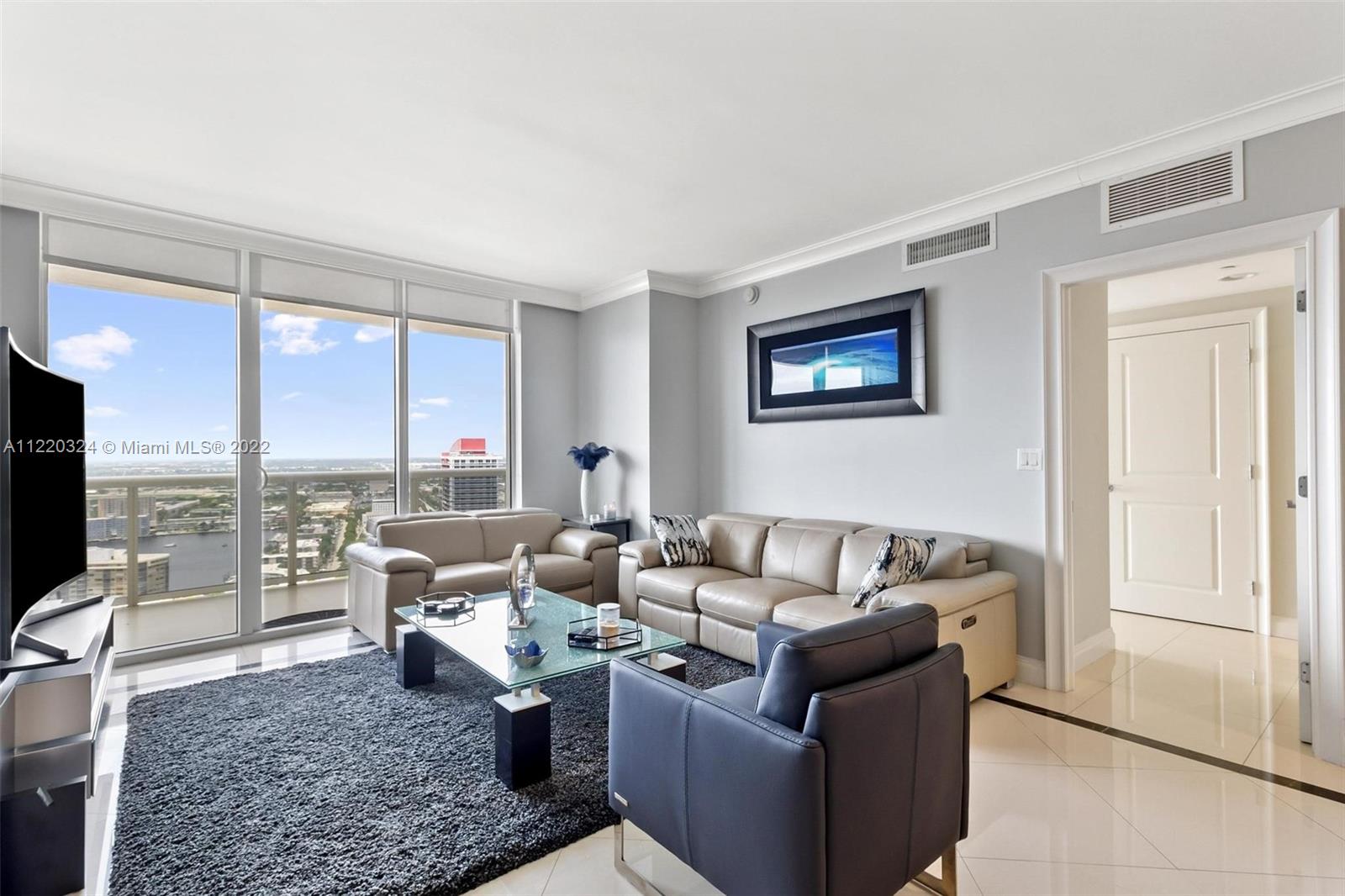 Breathtaking intracoastal and city views awaits you from this 2 Bed + Den/3 Baths, turnkey unit 1,571 Sq. Ft unit with a 177 Sq. Ft. Balcony. Italian Kitchen with KitchenAid appliances and granite counter-tops, jacuzzi in master bath. Marble floors throughout and built-in closets. Located directly on the ocean, building features a 50,000 sq. ft. full service spa & fitness center, restaurant, bar with pool service. 24 hr. valet parking and security. It includes a 9-acre site with over 800 ft. of ocean frontage.