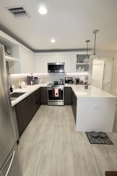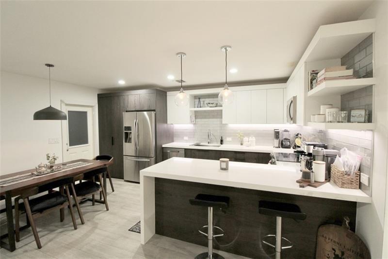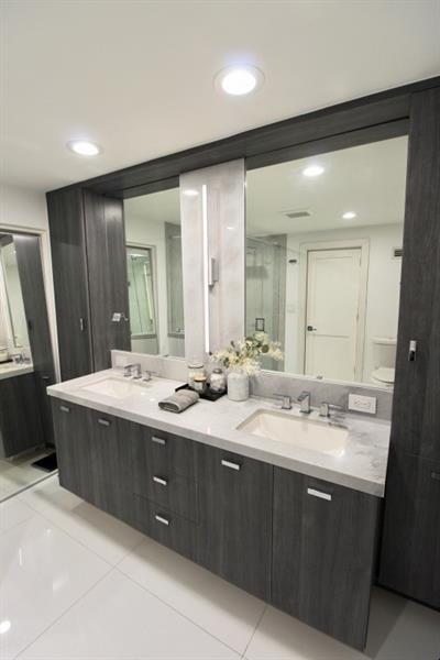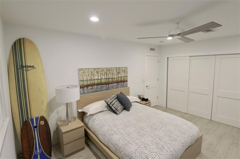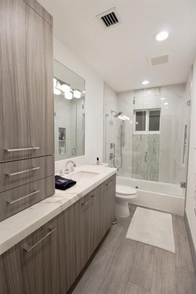 2/2 bright condo with high-end design details. Amazing location, east of US1, in residential neighborhood of Coral Ridge. Fully remodeled unit.All new hurricane windows and doors, porcelain plank floors, solid core doors and high-end door hardware. Large open kitchen w/ soft closed drawers, large single bowl sink, quartz countertops, peninsula with waterfall and glass backsplash. Quiet dishwasher, electric range and convection-micro hood that works as a second small oven. Built-in cabinet with washer and vented dryer.Guest bath with marble countertops and tub with glass shower enclosure. En-suite master bedroom with large master bathroom with double sinks and double hampers, walk-in shower with rainhead and personal handheld and full shower glass enclosure. Custom made built-in closets.